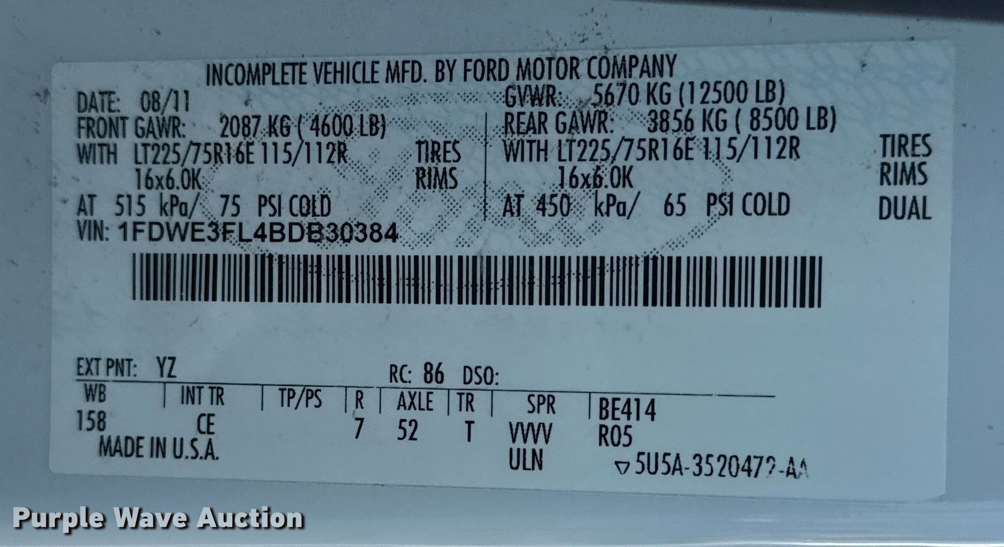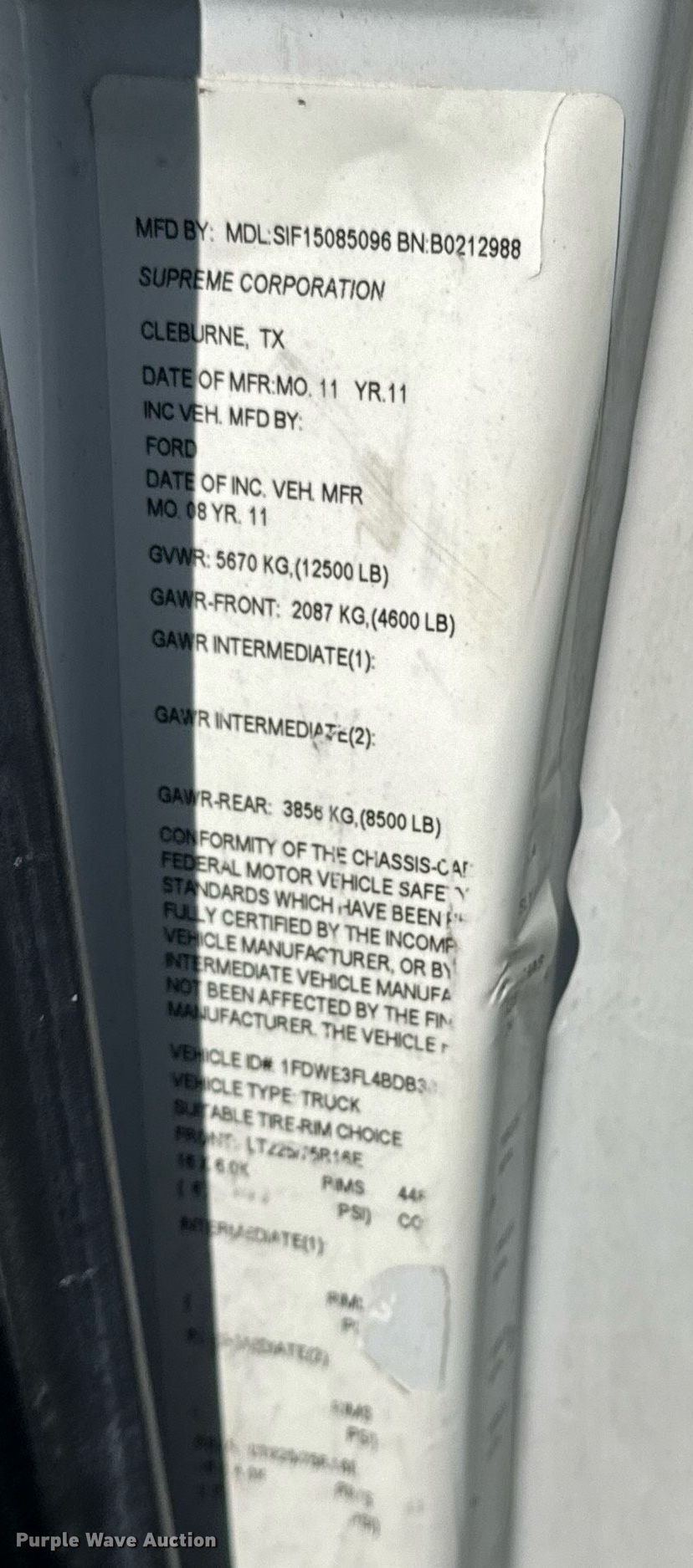 2011 Ford E350 Super Duty box truck. Miles: 169,301 on odometer, VIN: 1FDWE3FL4BDB30384. Engine Displacement: 5.4L, Cylinders: 8, Fuel type: Gas. Transmission Automatic. Chassis Axles: Single, Suspension: Spring, Brakes: Hydraulic, GVWR: 12,500 lbs, Wheelbase: 158". Interior AC, Heat, Cruise control. Features Box bed Supreme Corp 80212988, 15' L x 96" W x 90" H, Floor: Wood, Slider ramp Width: 24".. Tires Size: LT256/75R16. Notes Climate control blower issues, Non-operational cruise control buttons, Interior damaged. Oklahoma title. Seller is an Oklahoma licensed motor vehicle dealer. Title will be assigned and distributed by the dealer. Please contact the seller for distribution questions. Title distribution may be delayed up to 14 days from verification of funds. Metro Auto Wholesale. Tulsa, OK 74145