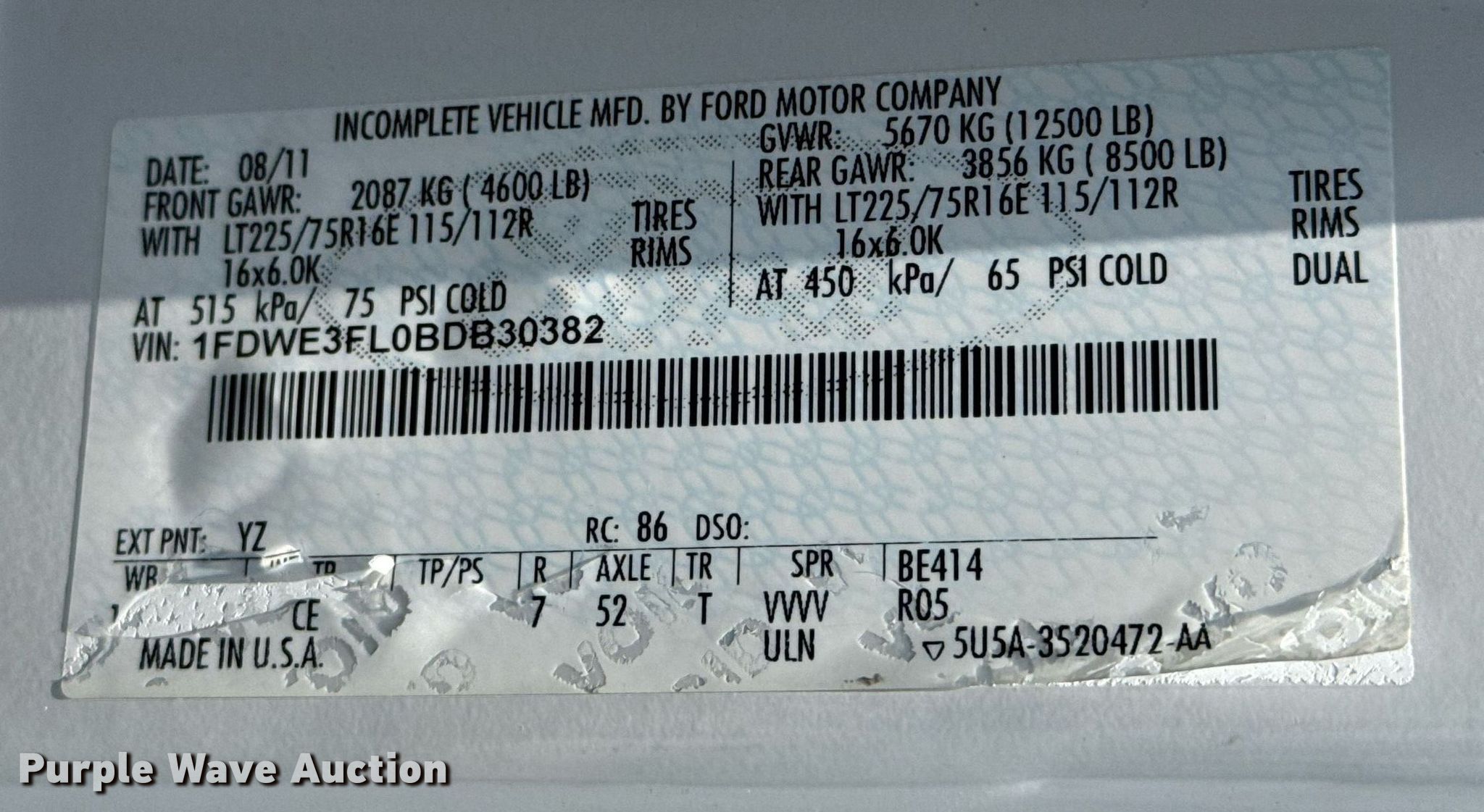 - VIN: 1FDWE3FL0BDB30382