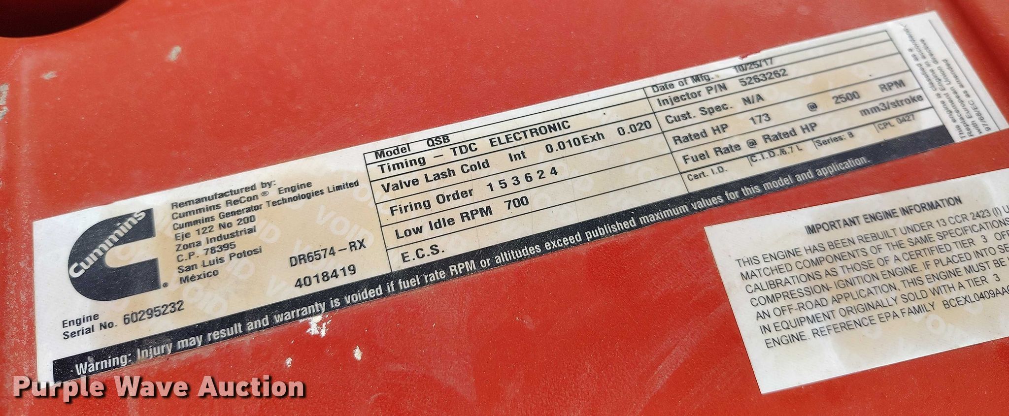 Cummins power unit. Hours: 3,538 on meter. Engine Cummins QSB, Displacement: 6.7L, Cylinders: 6, Fuel type: Diesel, HP: 173. Features Radiator, Self-contained fuel tank, Skid mounted. Soil Rejuvination. Longmont, CO 80504