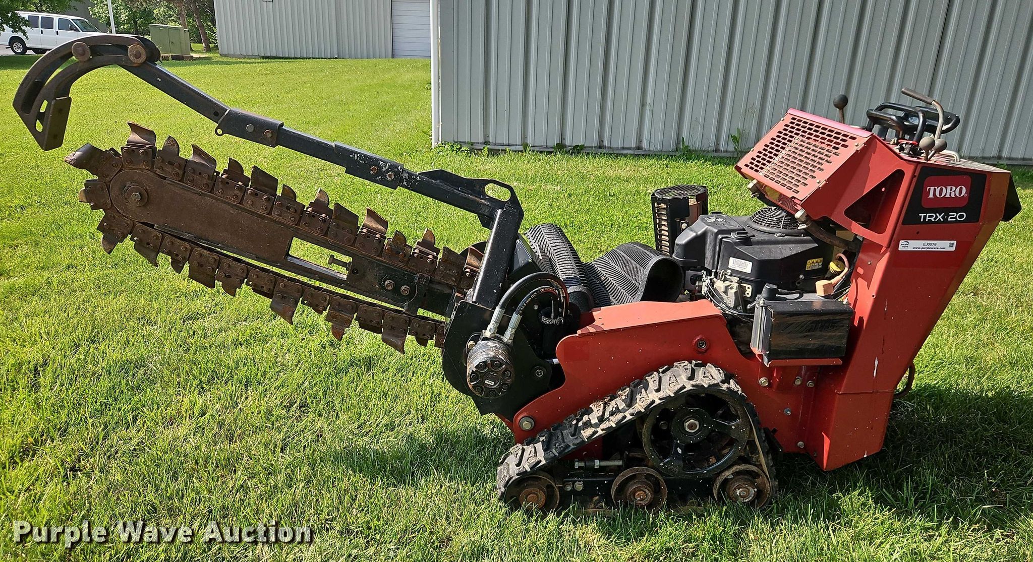 Purple Wave is selling a used Trencher or Rock Saw in Kansas. This item is a Toro TRX-20 trencher with the following: Hours: 347 on meter, Serial: 316000380