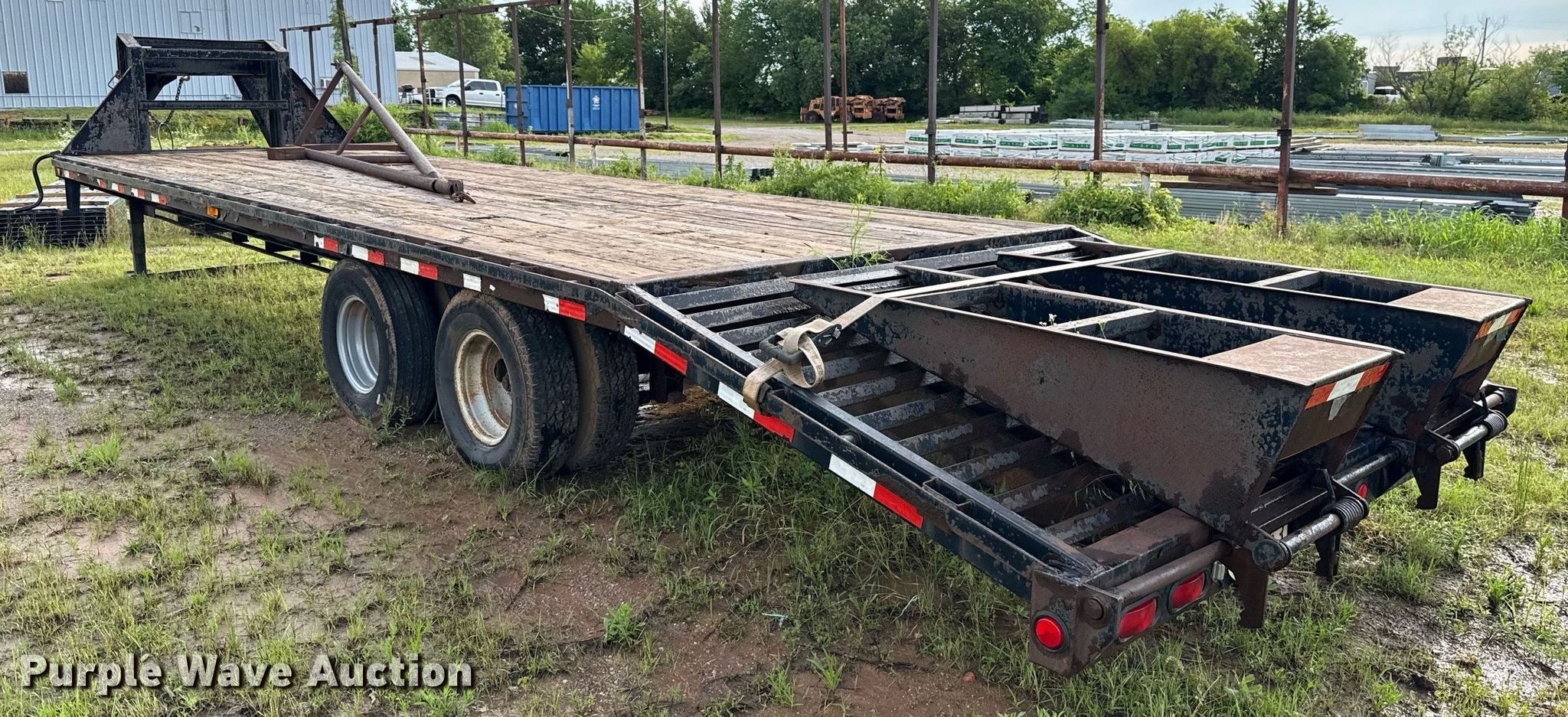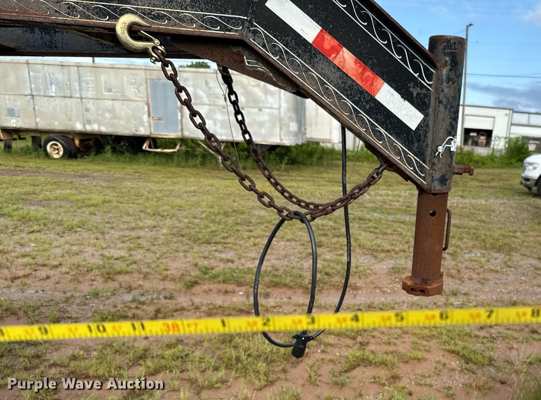 2007 PJ equipment trailer. VIN: 4P5FD302671095269. Dimensions Overall: 38' 6" L x 101" W, Deck: 24' 8" L x 97" W, Tail length: 66", Ramps: Manual Length: 5'. Features Deck type: Wood. Chassis Hitch: Gooseneck, Landing gear: Dual, Suspension: Spring, Brakes: Electric, Axles: Tandem. Tires Steel wheels, Size: ST235/85R16. Kansas title. Title distribution may be delayed up to 30 days from verification of funds. Midwest Drywall Company. Oklahoma City, OK 73129