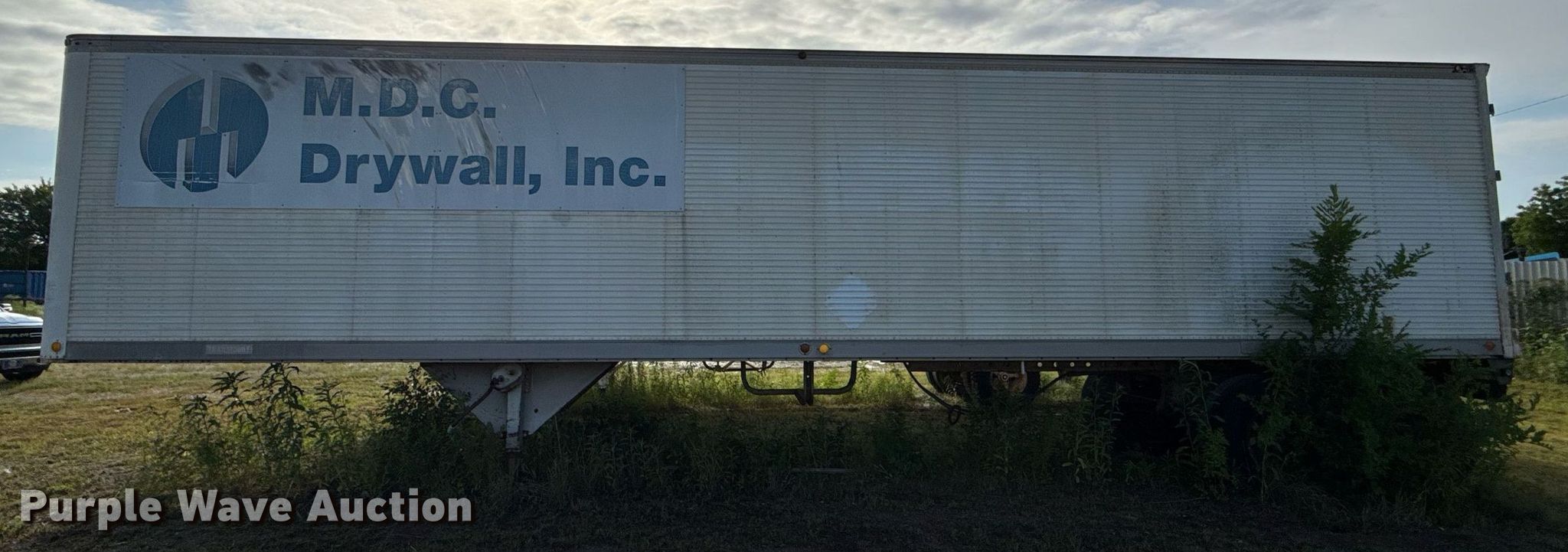 1977 Trail Mobile dry van trailer. VIN: P64030. Dimensions Overall: 40' L x 96" W, Rear door / ramp Width: 93". Features Deck type: Wood. Chassis Landing gear: Dual, Suspension: Spring, Brakes: Air, Axles: Tandem, GVWR: 63,000 lbs, GAWR: 22,200 lbs. Tires Steel wheels, Size: 10.00-22. Notes Contents on pallets not included. Kansas title. Title distribution may be delayed up to 30 days from verification of funds. Midwest Drywall Company. Oklahoma City, OK 73129