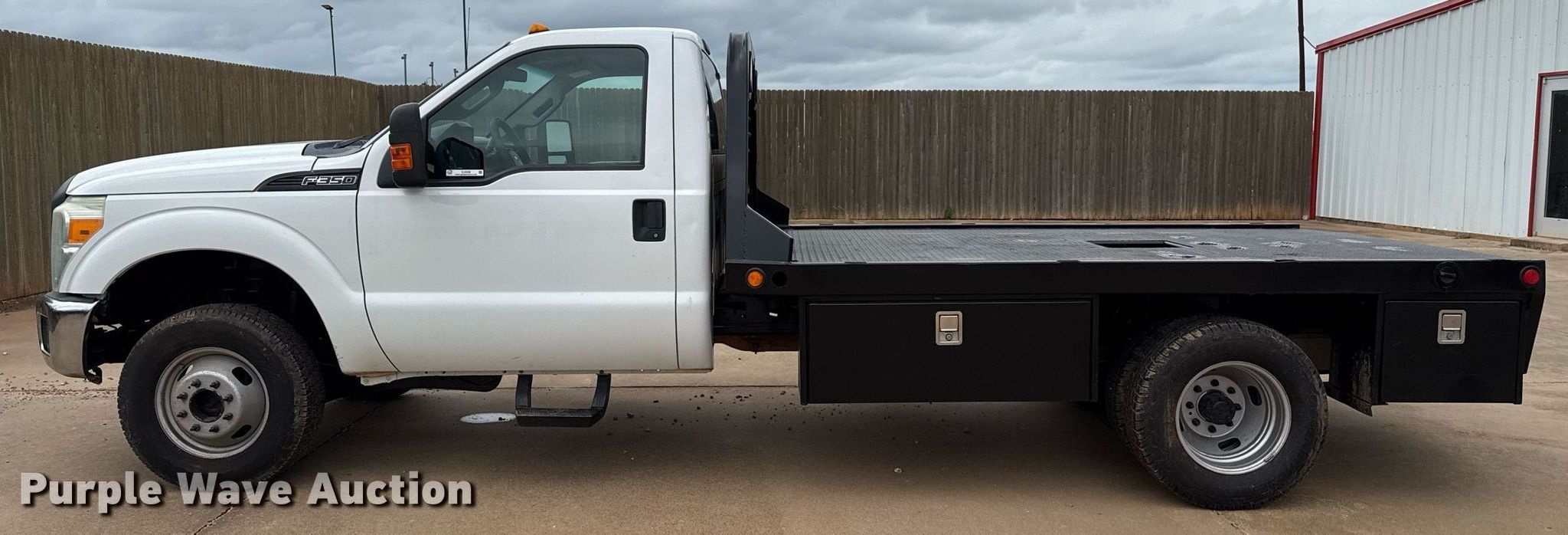 This 2015 Ford F350 Super Duty flatbed pickup truck will sell to the highest bidder regardless of price.