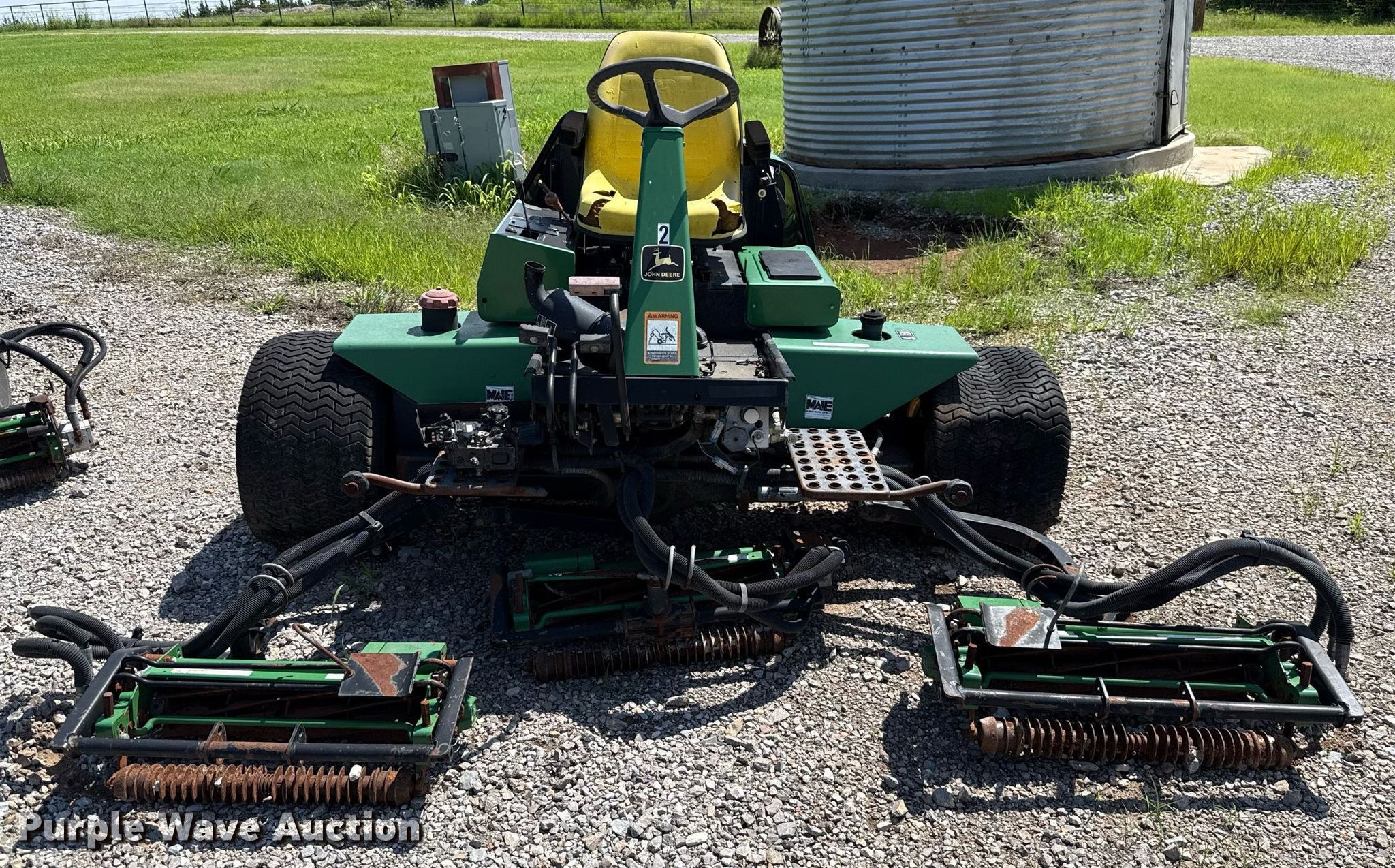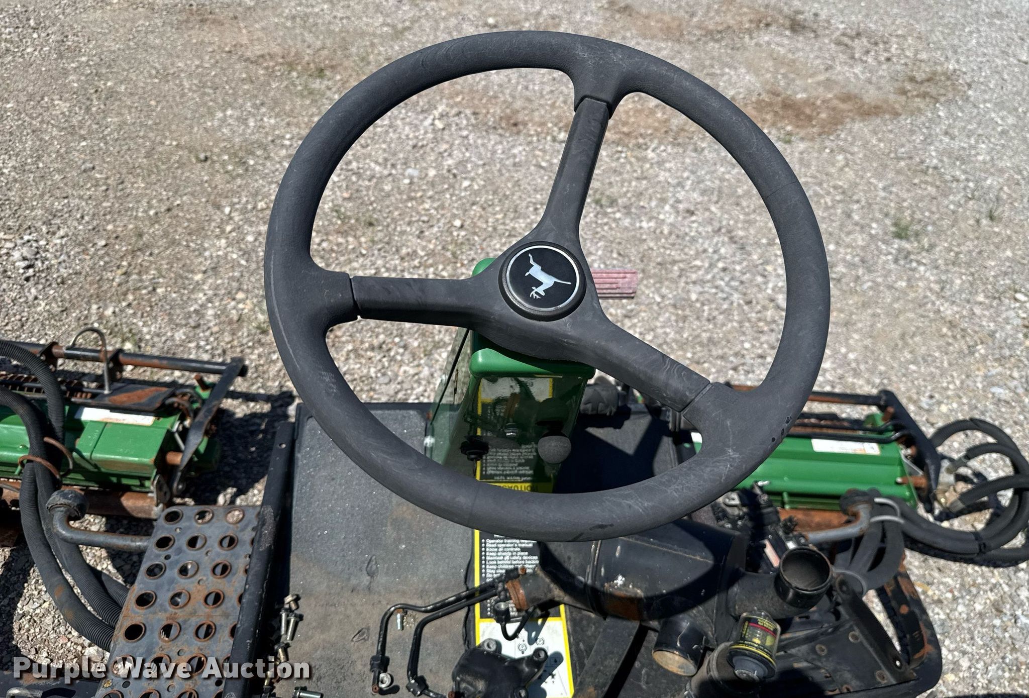 Purple Wave is selling a used Lawn Mower in Oklahoma. This item is a John Deere 3215A reel mower with the following: Hours: 3,986 on meter, Cutting width: 96", Serial: M03215A030203