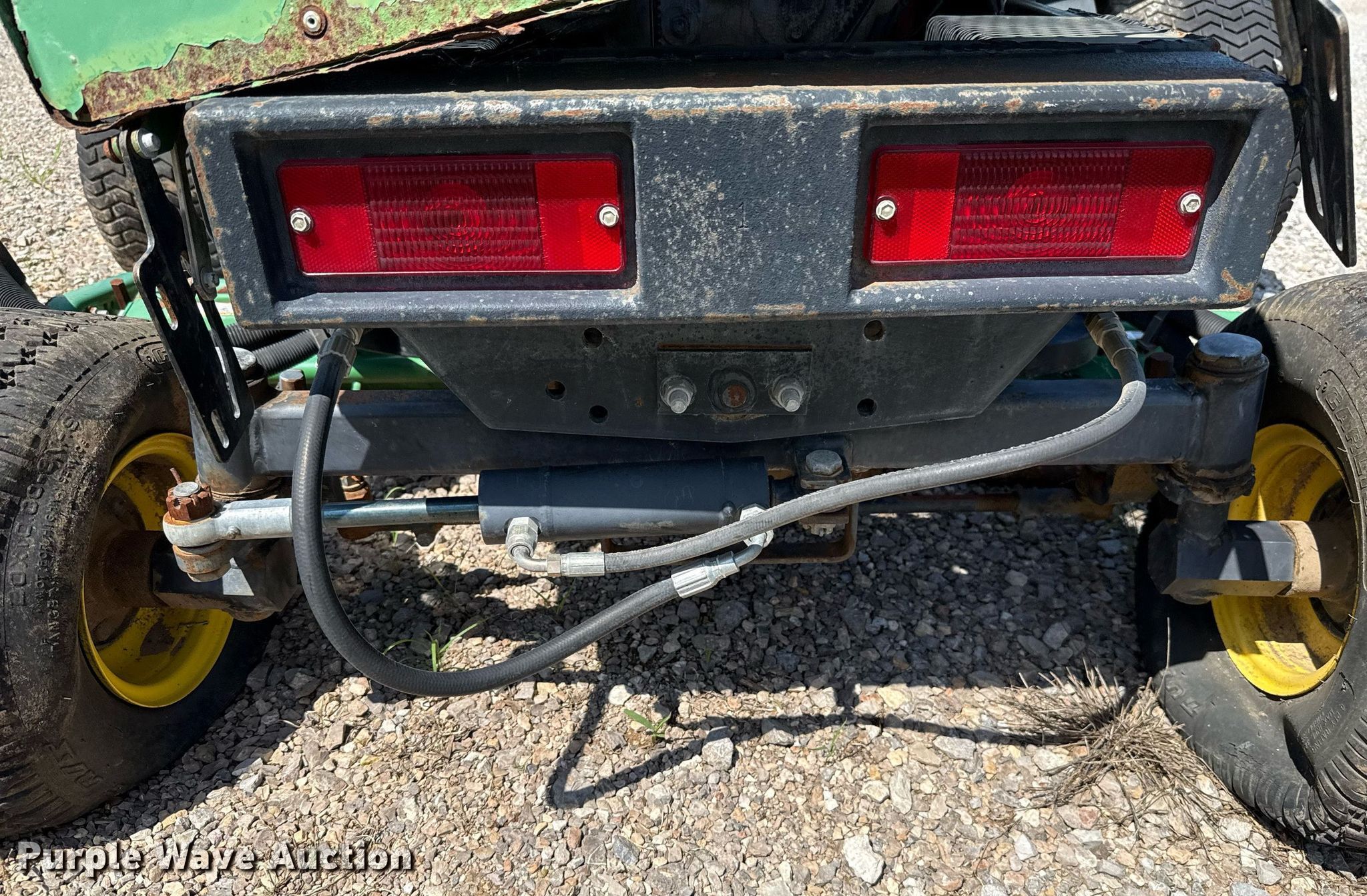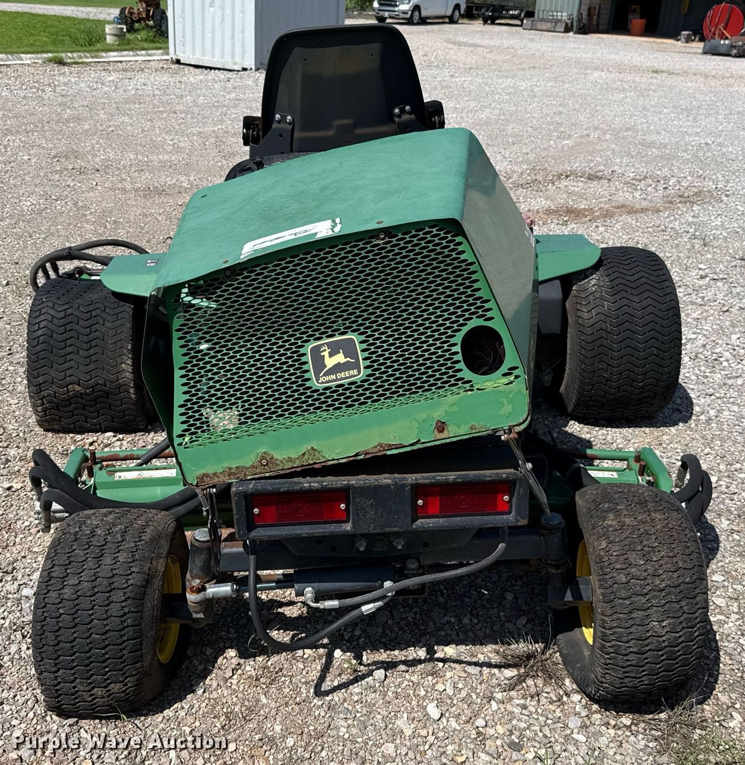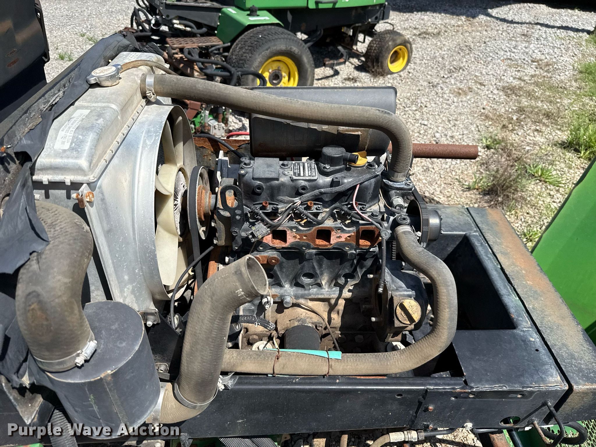 John Deere 3215A reel mower. Hours: 3,986 on meter, Cutting width: 96", Serial: M03215A030203. Engine John Deere 3TNE78A-JF, Serial: CH3044D002865, Cylinders: 3, Fuel type: Diesel. Transmission Hydrostatic. Features Hydraulic front deck lift. Tires Front: 26.5X14.00-12, Rear: 20X10.00-9. Notes Flat tires, Non-operational engine , Non-operational unit. Norman, OK 73026