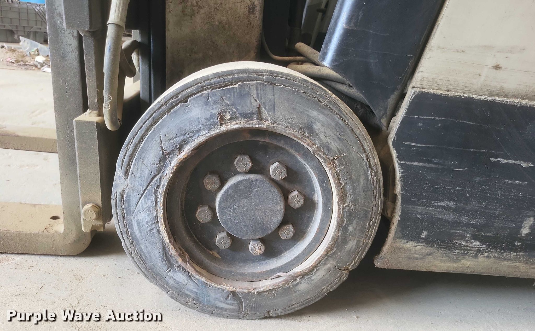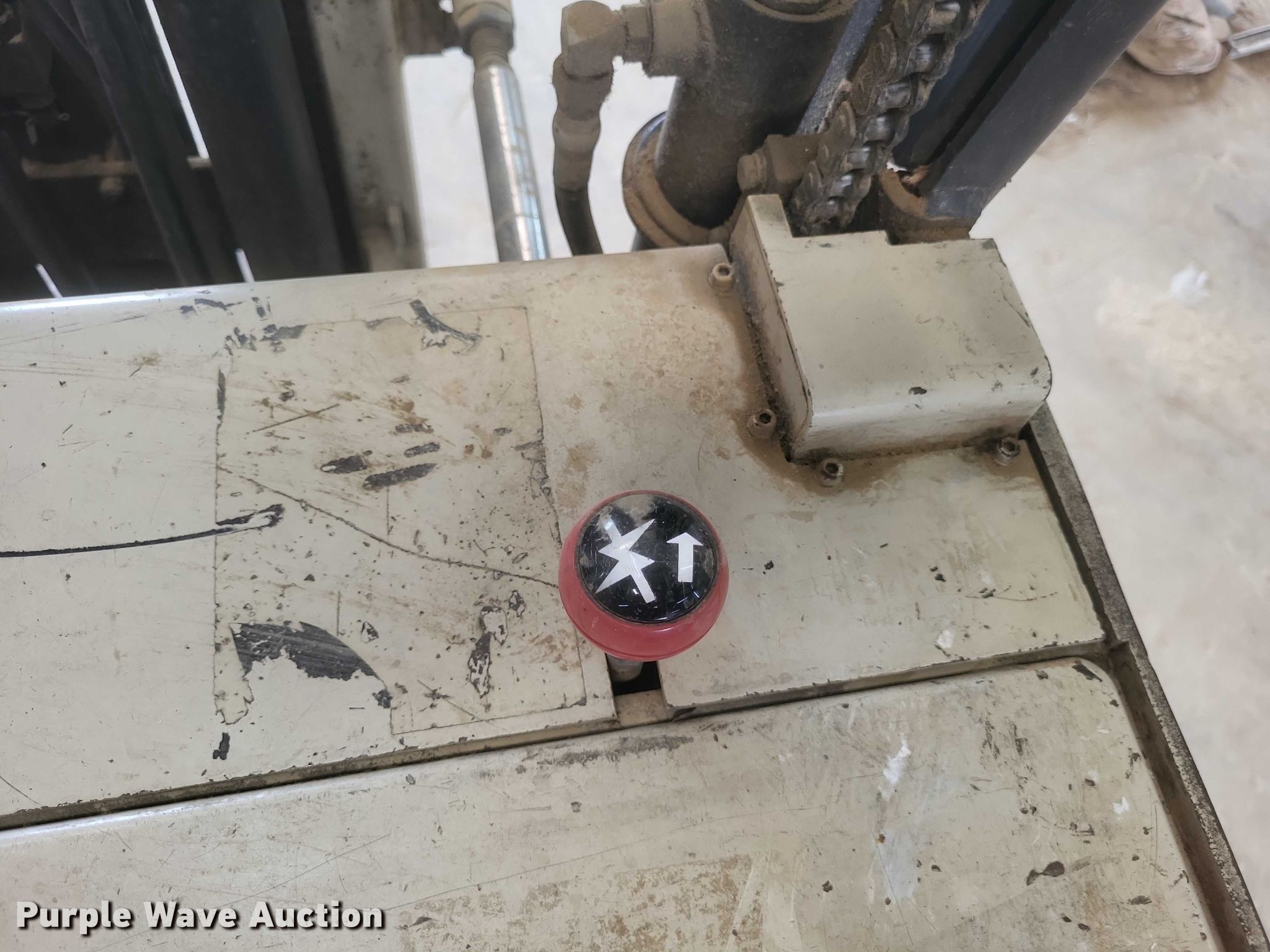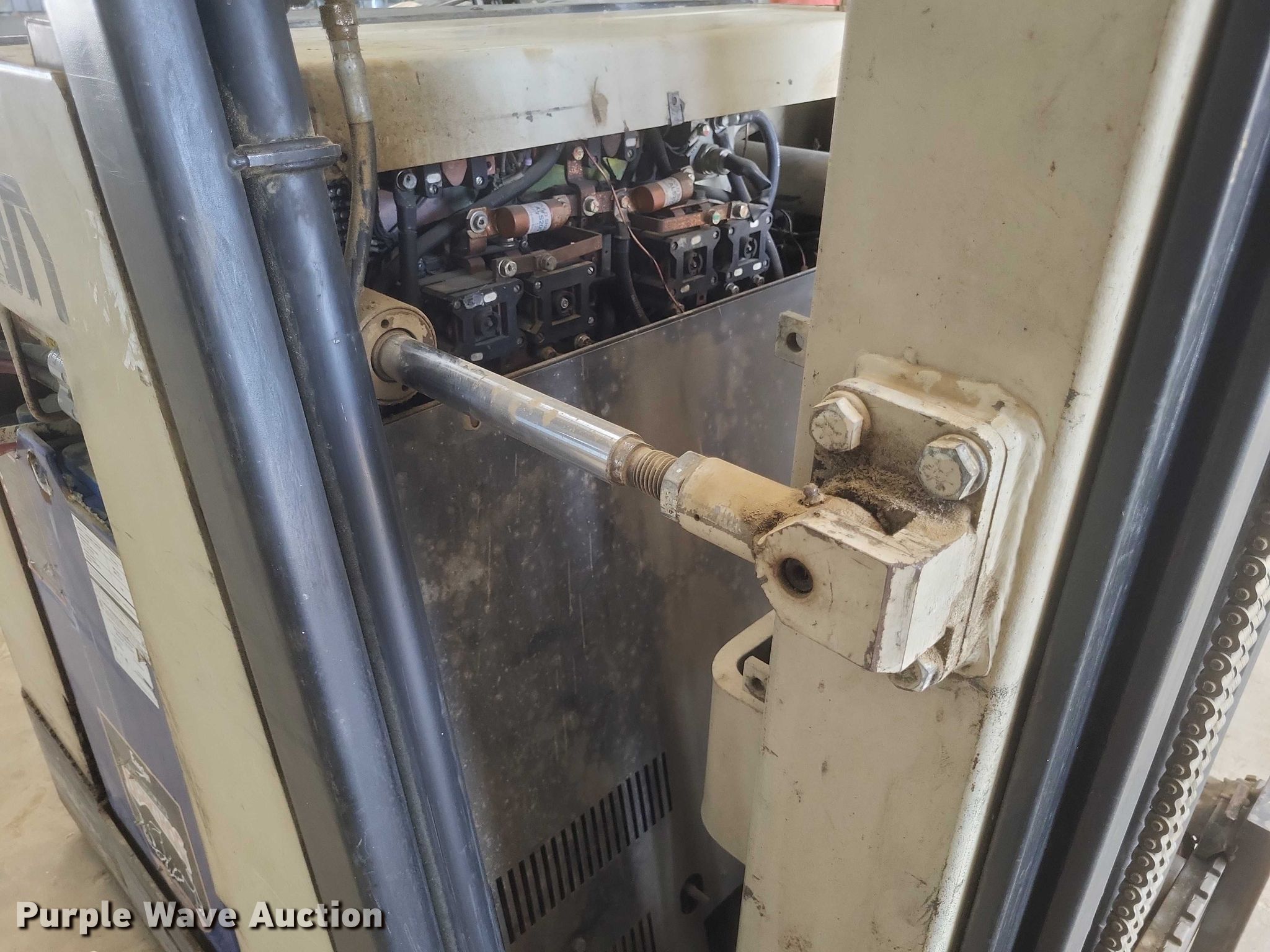 Crown 30RCTT order picker. Hours: 9,501 on meter, Serial: W-87430, Unit #: 10. Electric Motor Volts: 36. Transmission Hydrostatic. Operators station Canopy. Features Maximum lift capacity: 3,000 lbs, Maximum lift height: 190", Mast stages: 2, Mast tilt, Fork length: 42". Tires Solid. Notes Non-operational mast tilt. Tenn-Scrap. Alamo, TN 38001
