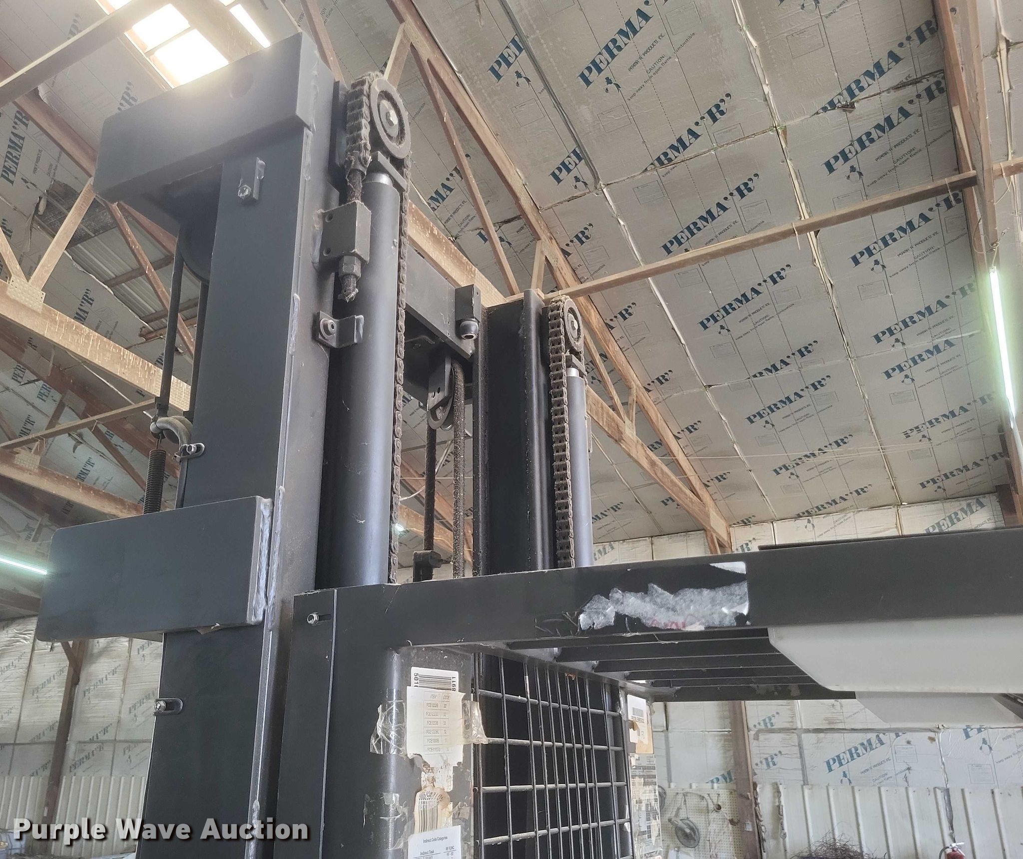 Raymond EASI-OPC30TT order picker. Lift hours: 802 on meter, Deadman hours: 457 on meter, Unit #: 58. Electric Motor Volts: 24, Charger: Three phase. Transmission Hydrostatic. Operators station Canopy. Features Maximum lift capacity: 3,000 lbs, Maximum lift height: 273", Mast stages: 2, Fork length: 42". Tenn-Scrap. Alamo, TN 38001