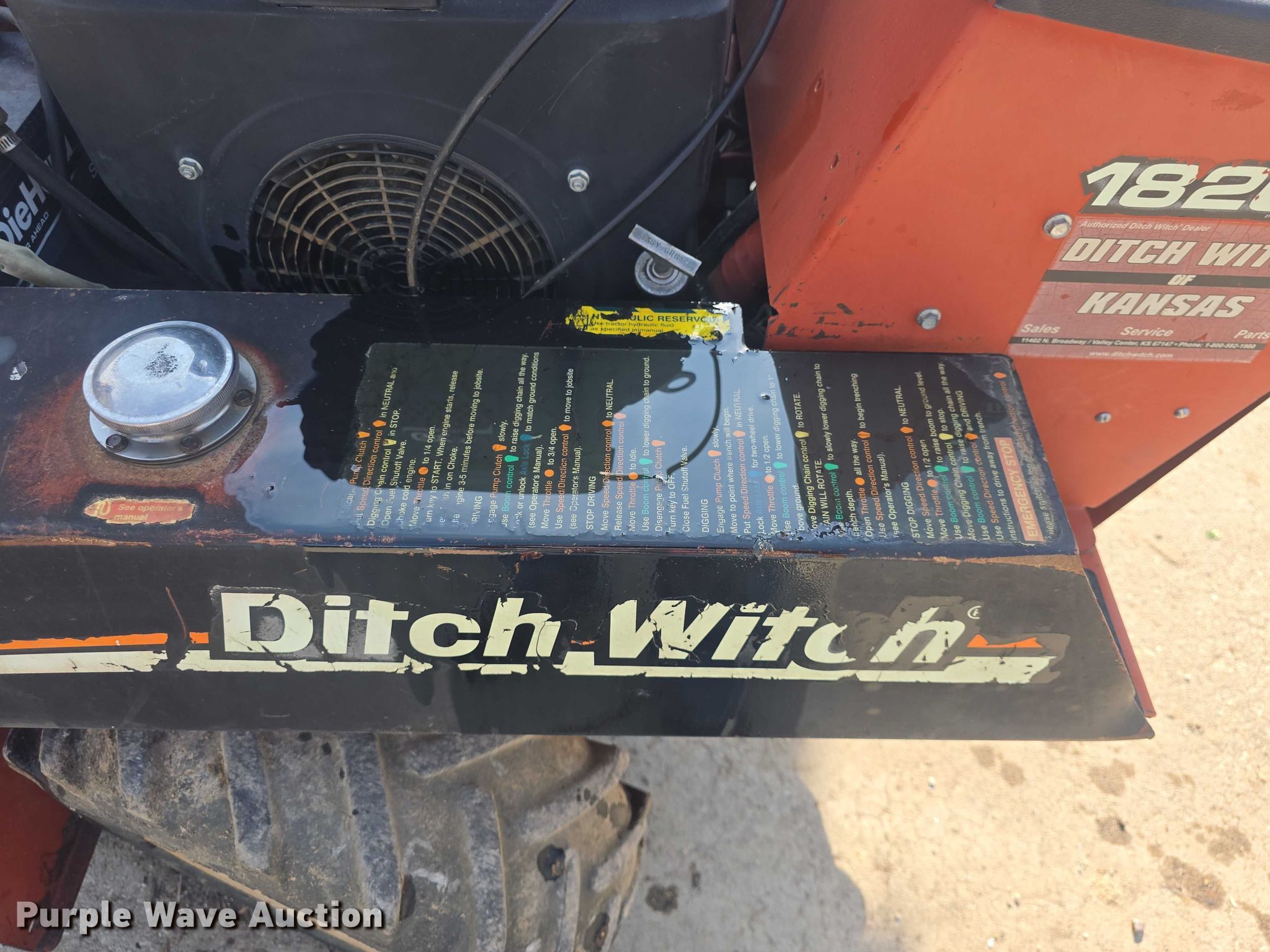 2008 Ditch Witch 1820 trencher. Hours: 142 on meter, Serial: CMW182HEG80001306. Engine Honda GX610, Cylinders: 2, Fuel type: Gas. Transmission Hydrostatic. Features Trencher Estimated dig depth: 48", Cutting width: 4", Teeth: Rock, Dirt, Crumber, Manual crumber. Tires Front: 15x6.50-8, Rear: 23x8.50-12, Brand: Carlisle. Manhattan, KS 66502