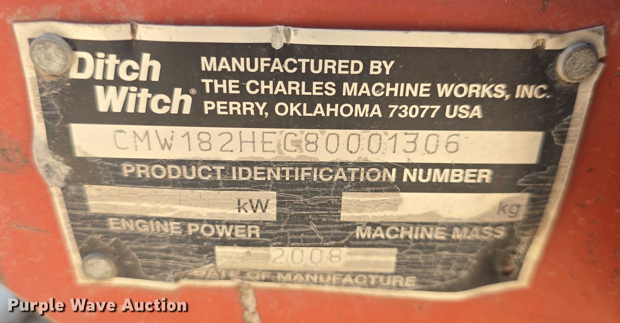 Purple Wave is selling a used Trencher or Rock Saw in Kansas. This item is a 2008 Ditch Witch 1820 trencher with the following: Hours: 142 on meter, Serial: CMW182HEG80001306