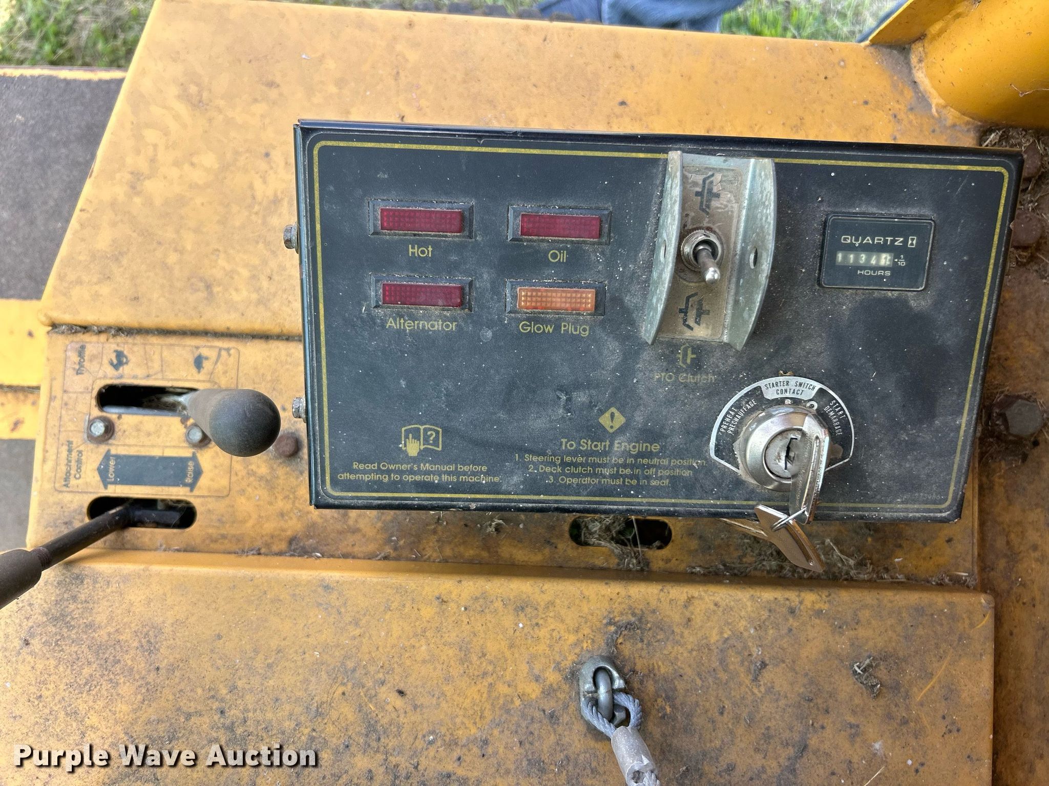 Hustler 3400 ZTR lawn mower. Hours: 1,134 on meter, Cutting width: 70". Engine Kubota, Displacement: 1.5L, Cylinders: 3, Fuel type: Diesel. Transmission Hydrostatic. Operators station Enclosed cab. Features Hydraulic front deck lift. Tires Front: 23x10.50-12, Rear: 18x8.50-8, Deck tires: 13x5.00-6. Notes Doors included. Bridgeton, MO 63044