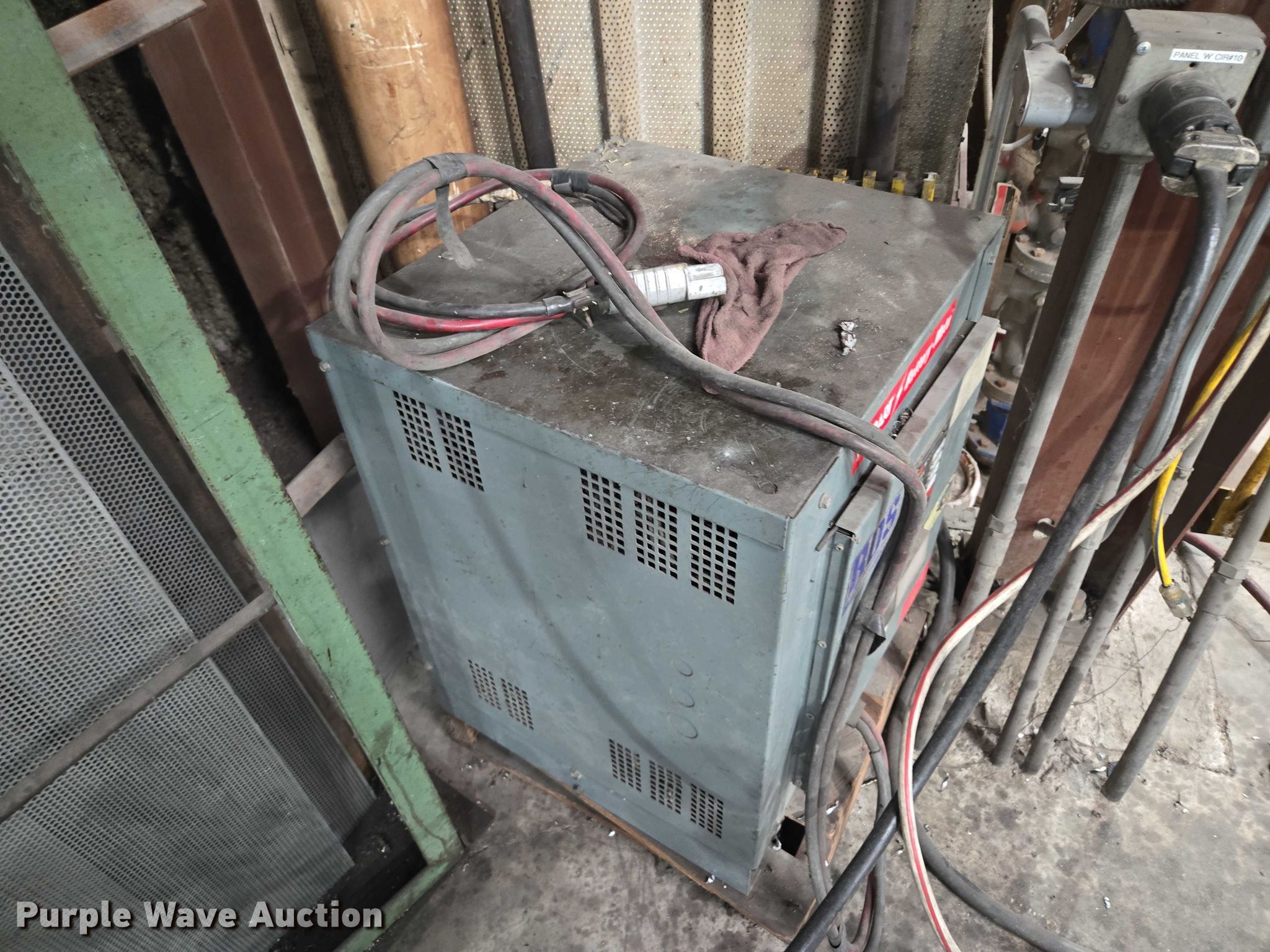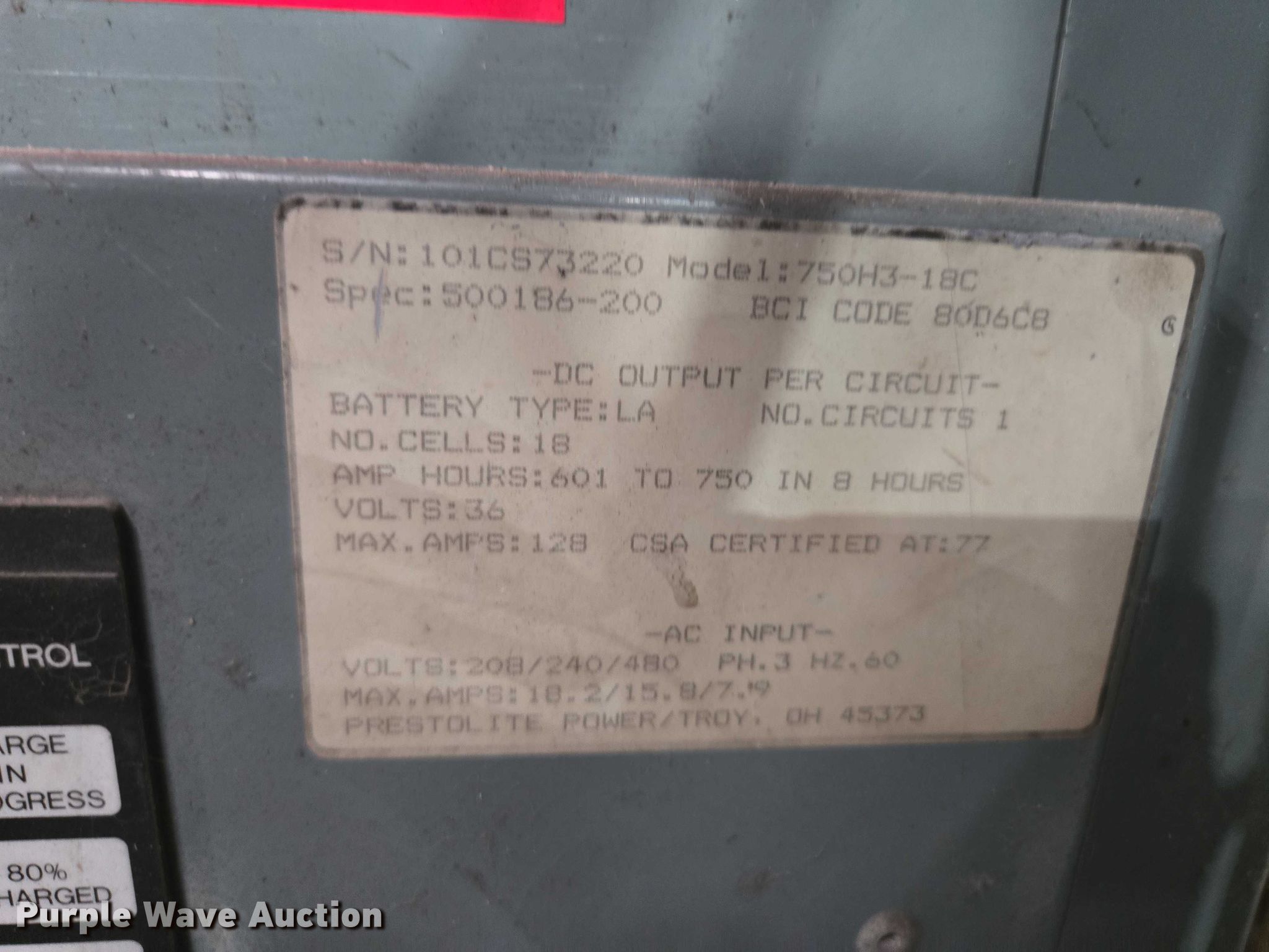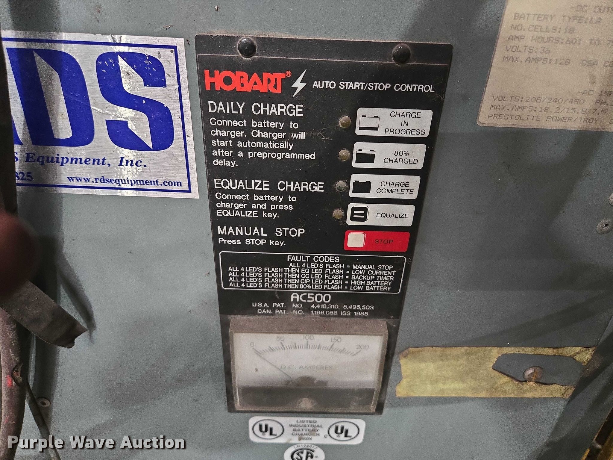 Komatsu FR18S-2A reach truck. Serial: FRS3020762002. Electric Motor Volts: 36. Transmission Electric drive. Operators station OROPS. Features Maximum lift capacity: 3,500 lbs, Maximum lift height: 240", Mast stages: 3, Mast tilt, Fork length: 42", Hobart Battery Mate Model: 750H3-18C, Serial: 101CS73220. Tires Solid. Notes Charger included, Battery issues, Non-operational unit. Standard Sheet Metal. Kansas City, MO 64120