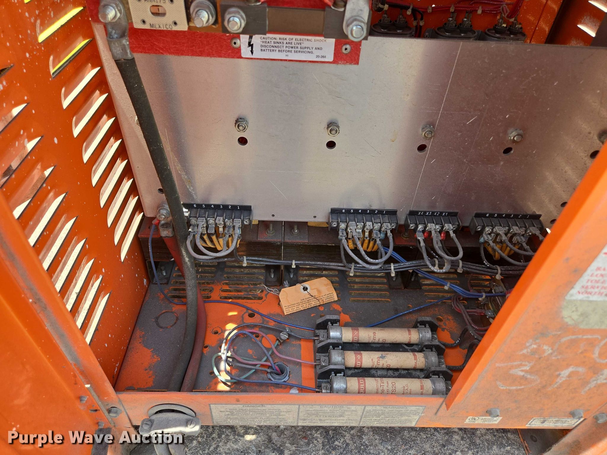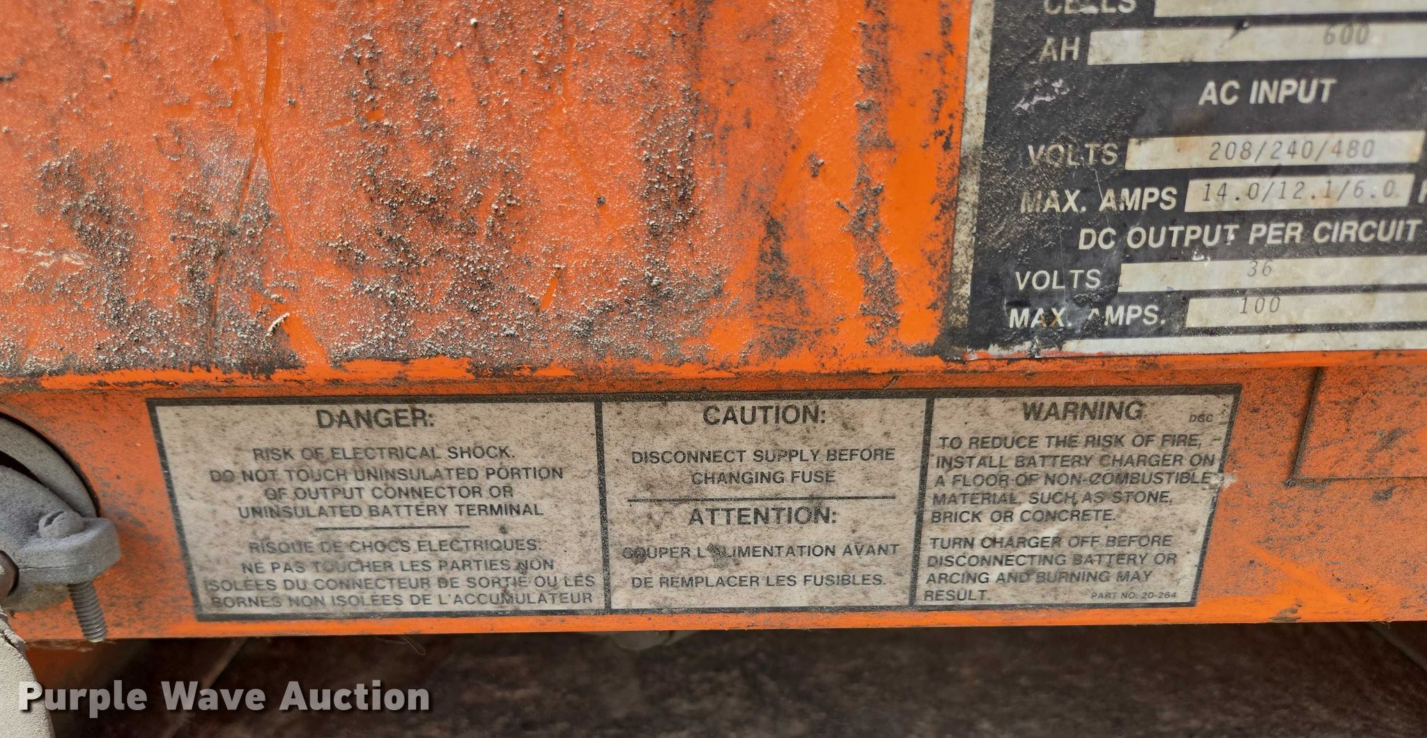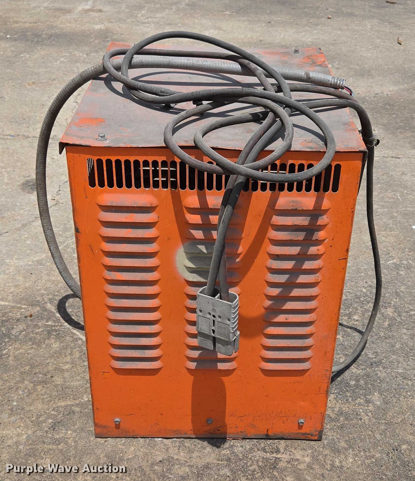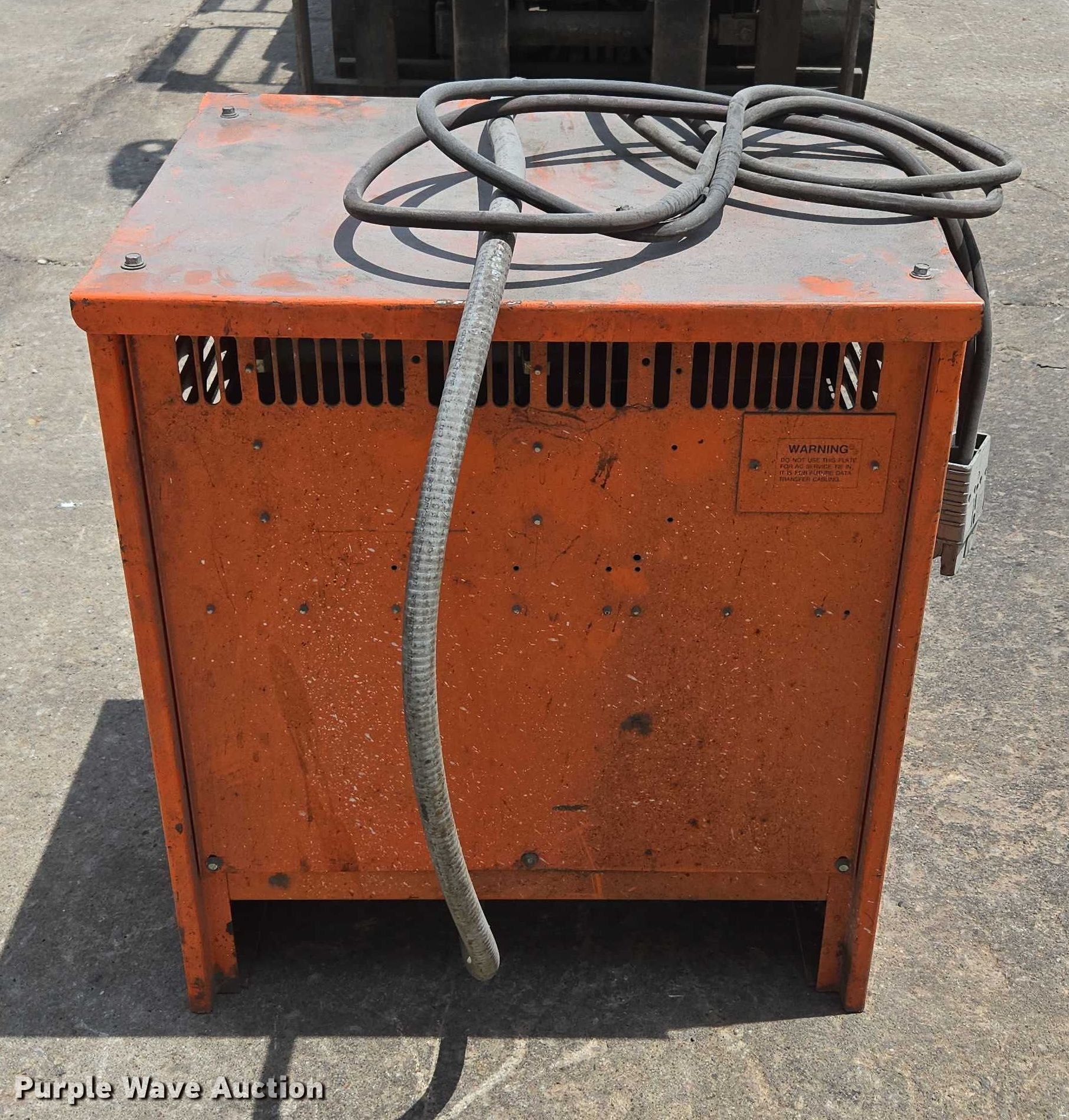 Yale ERC050ZAN48SE083 forklift. Hours: Unknown, Serial: K550674, Unit #: 54. Electric Motor Volts: 48, Charger: Three phase. Transmission Powershift. Operators station Canopy. Features Maximum lift capacity: 5,000 lbs, Collapsed mast height: 82", Mast stages: 3, Side shift, Mast tilt, Fork length: 48", GNB Ferrocharger charger Phase: 3, Volts: 208/240/480. Tires Front: 18x8x121/8, Rear: 16x6x101/2, Solid. Notes Non-operational hour meter, Non-operational GNB Ferrocharger charger, Dead battery, Unknown operating condition. Truck Component Services/Larson Group. Strafford, MO 65757