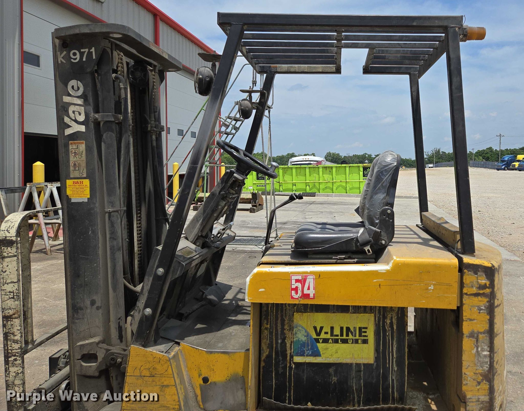 Purple Wave is selling a used Warehouse Forklift in Missouri. This item is a Yale ERC050ZAN48SE083 forklift with the following: Hours: Unknown, Serial: K550674, Unit #: 54