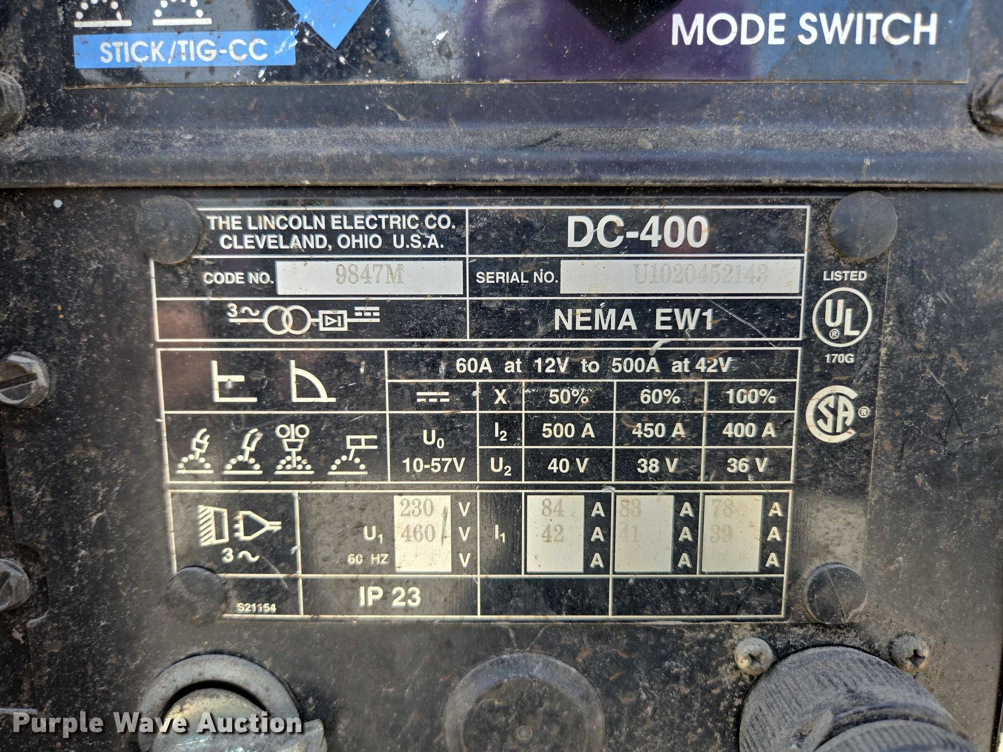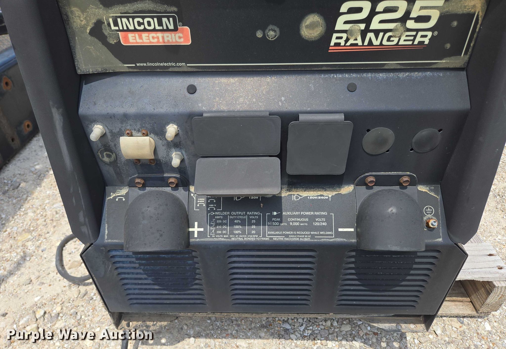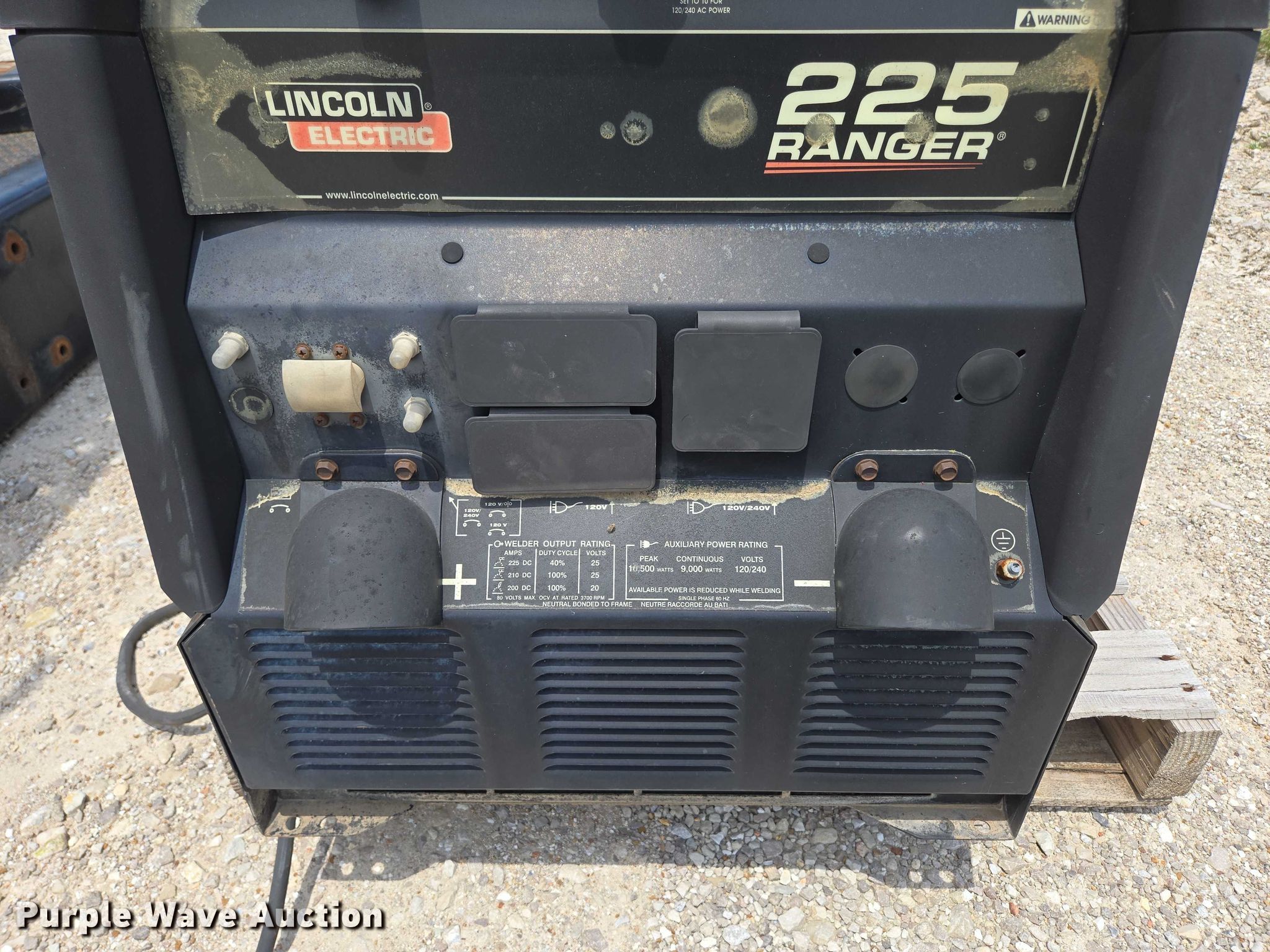(5) welders. Miller Syncrowave 180 SD welder. Serial: LE400511. Features Capabilities: Stick/Tig, CC, AC/DC Squarewave power source, Tig Lead, Ground Lead, Volts: 230. Notes Unknown operating condition. Miller Delta-Fab welder CV Welding Power Source, Miller 24 A 24V Wire Feeder, Wire feed lead and gun, Ground Lead. Notes Unknown operating condition. Lincoln Electric DC-400 welder Serial: U1020452143. Features Capabilities: Stick, Tig/Wire, Feed/Sub Arc, Lincoln Electric LN-7 wire feed, Wire feed lead and gun, Ground Lead, Volts: 230/460, Phase: Three. Notes Unknown operating condition. Lincoln Electric Ranger 250 welder/generator Serial: 10954, Hours: 1416. Engine Kohler CH205, Serial: 3311205631, Displacement: 624 cc, Cylinder: 2, Fuel type: Gas. Features Welder Capabilities: Stick, Stinger lead, Generator Peak watts: 9,000, Phase: Single, 240V outlets: 1, 120V outlet: 4. Notes Dead battery, Unknown operating condition. Lincoln Electric 225 Ranger welder/generator Hours: Unknown, Serial: 11,597. Engine Kohler CH23S, Serial: 4010905011, Displacement: 674 cc, Cylinders: 2, Fuel type: Gas. Features Welder Capabilities: Stick/Wire, Feed/Tig, Stinger Lead, Ground Lead, Generator Peak watts: 10,550, Phase: Single, 120/240V outlet: 1, 120V outlet: 4. Notes Dead battery, Unknown operating condition. Truck Component Services/Larson Group. Strafford, MO 65757