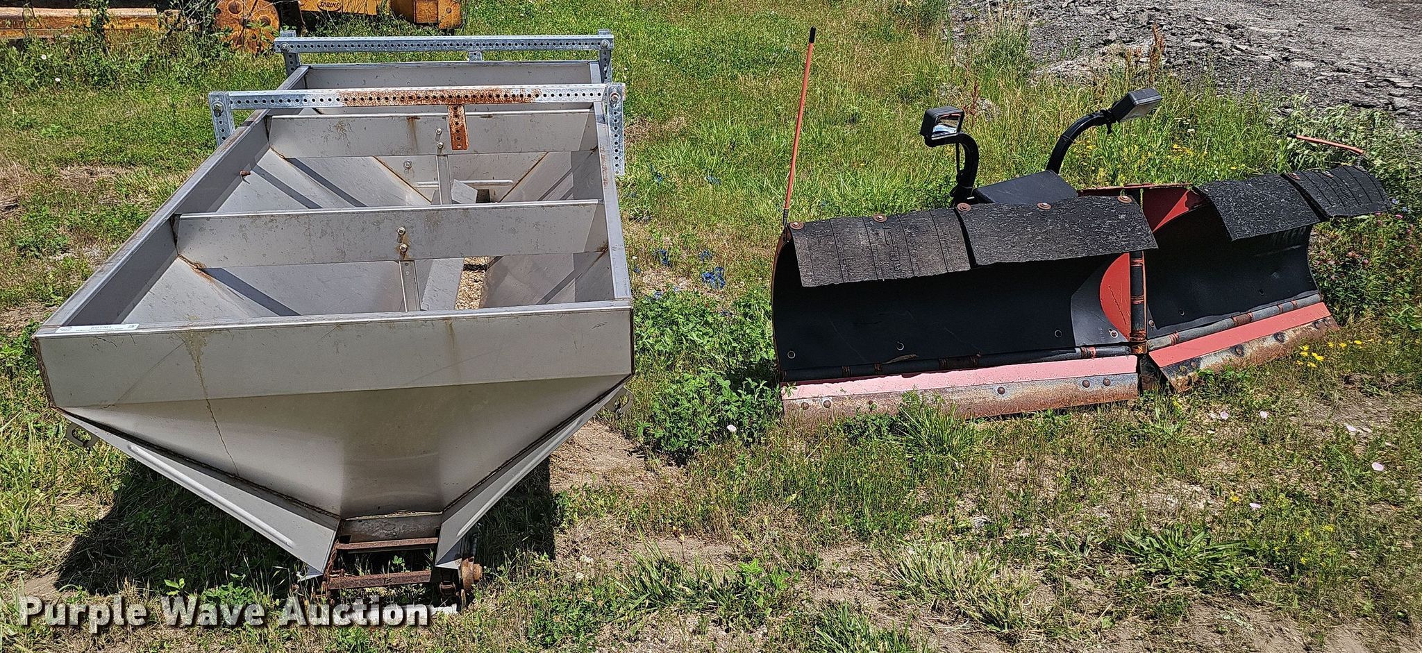 Purple Wave is selling a used Truck Part and Attach. in Kansas. This item is a Truck attachments with the following: HPSLx8xBRIGGSxSS spreader, Serial: HPSL-14912, 8' L x 47" W x 36" H, Hiniker plow, Width: 96"