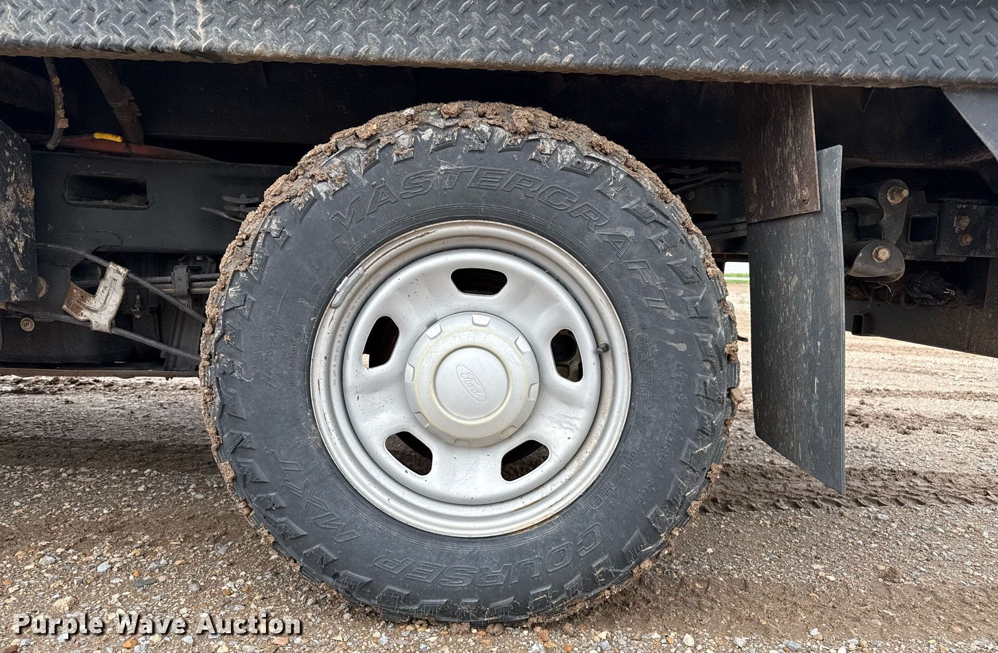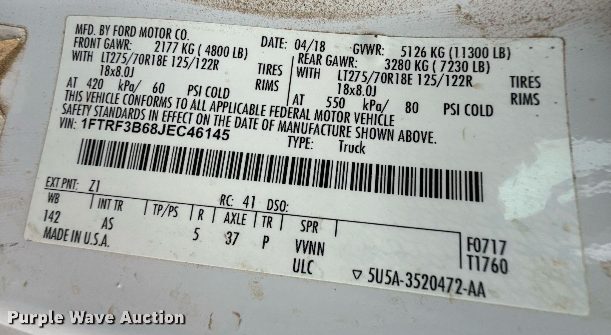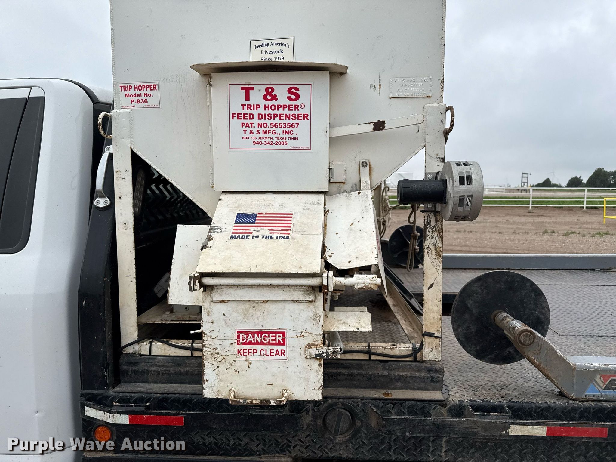 2018 Ford F350 Super Duty XL bale bed pickup truck. Miles: 76,742 on odometer, VIN: 1FTRF3B68JEC46145. Engine Displacement: 6.2L V8 OHV, Cylinders: 8, Fuel type: Gas. Transmission Automatic, Four wheel drive. Interior AC, Heat, Heated mirrors, Power windows, Power locks, Cruise control, Brake controller. Features Hydraulic bale bed Besler 3125, 9' 4" L x 80" W, Bale arm, Hitch: Gooseneck, Cake feeder. Tires Size: LT275/70R18. Notes Dash warning indicator: Check engine, TPMS, Fuel light, Windshield chipped or cracked. Kansas title. Deseret Cattle Feeders. Satanta, KS 67870