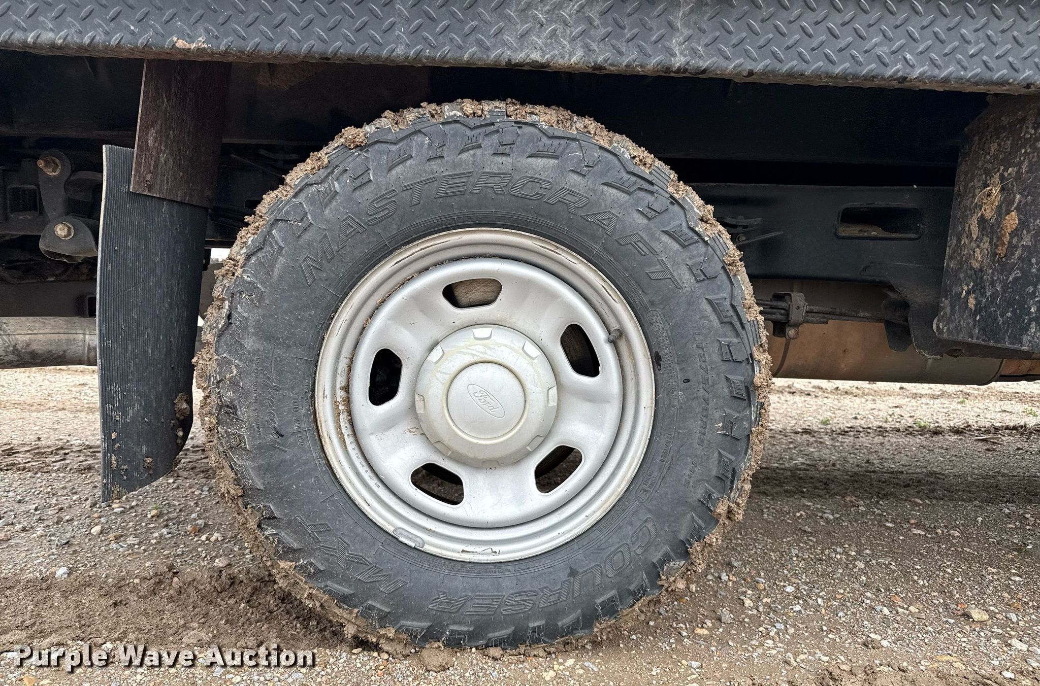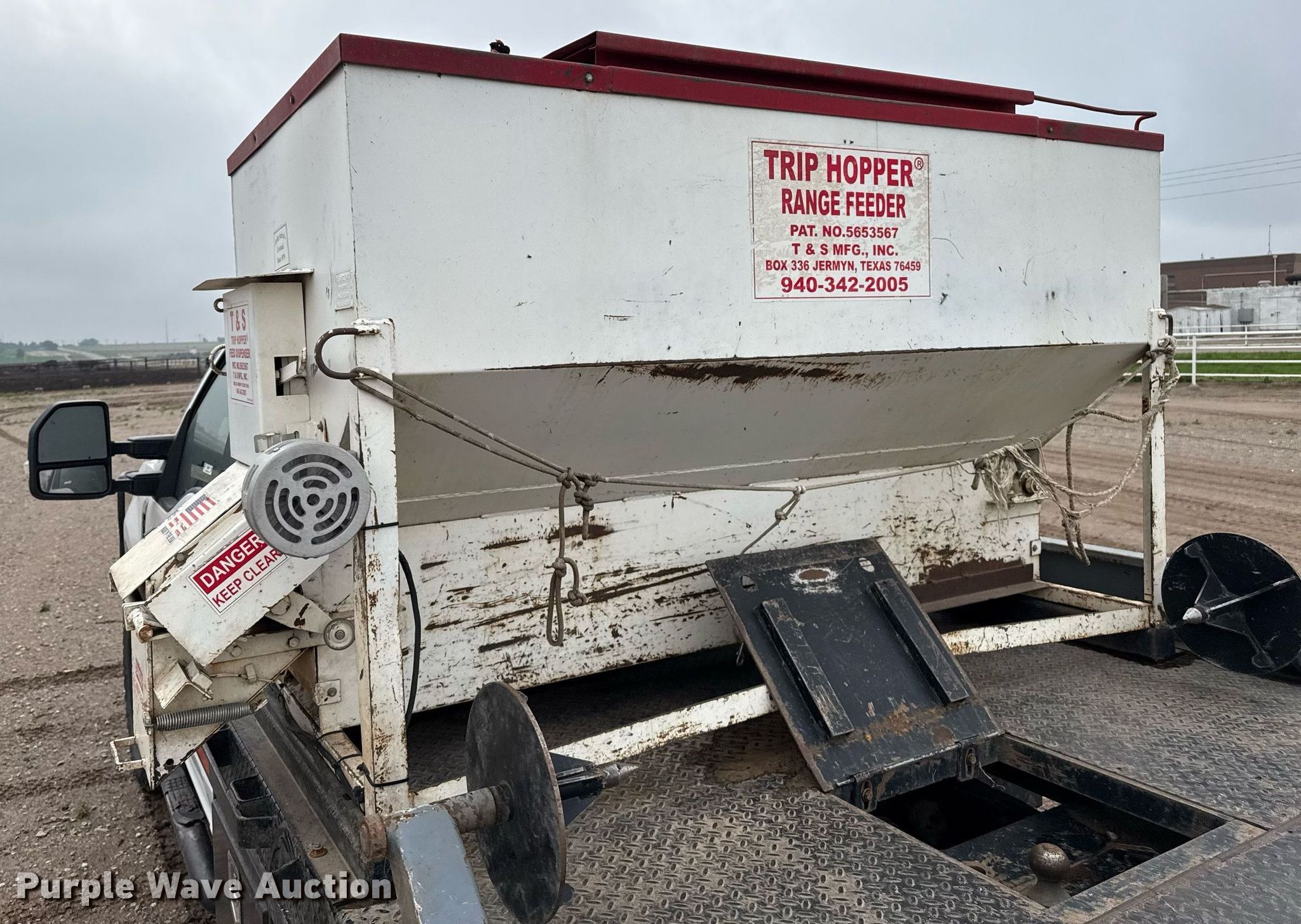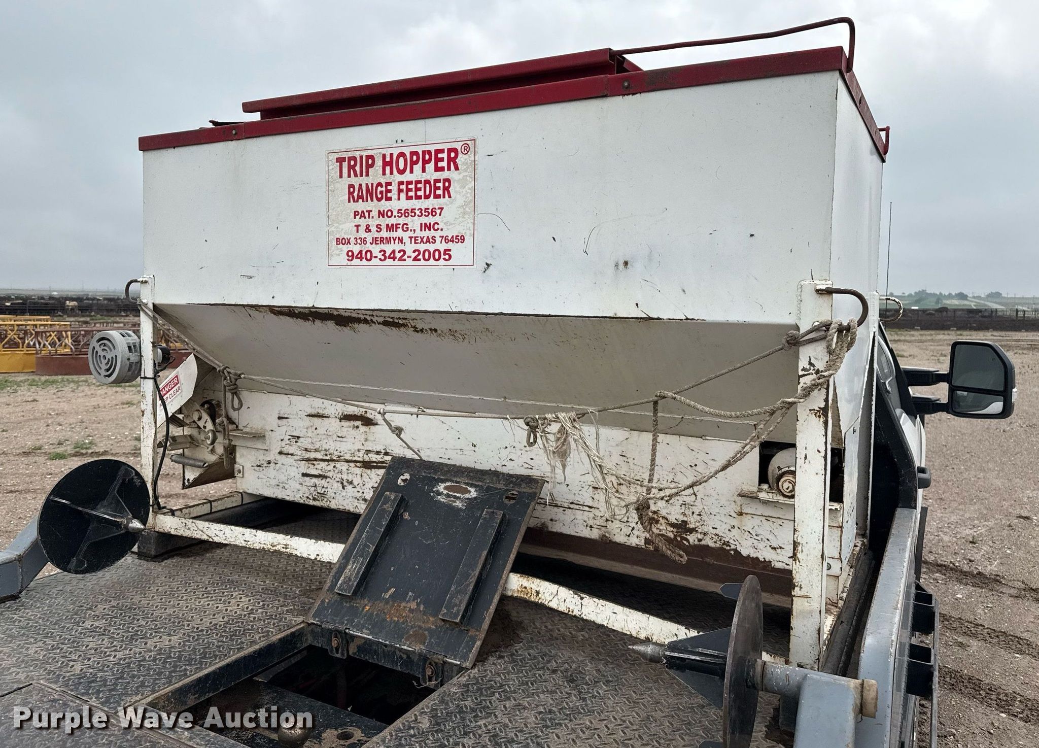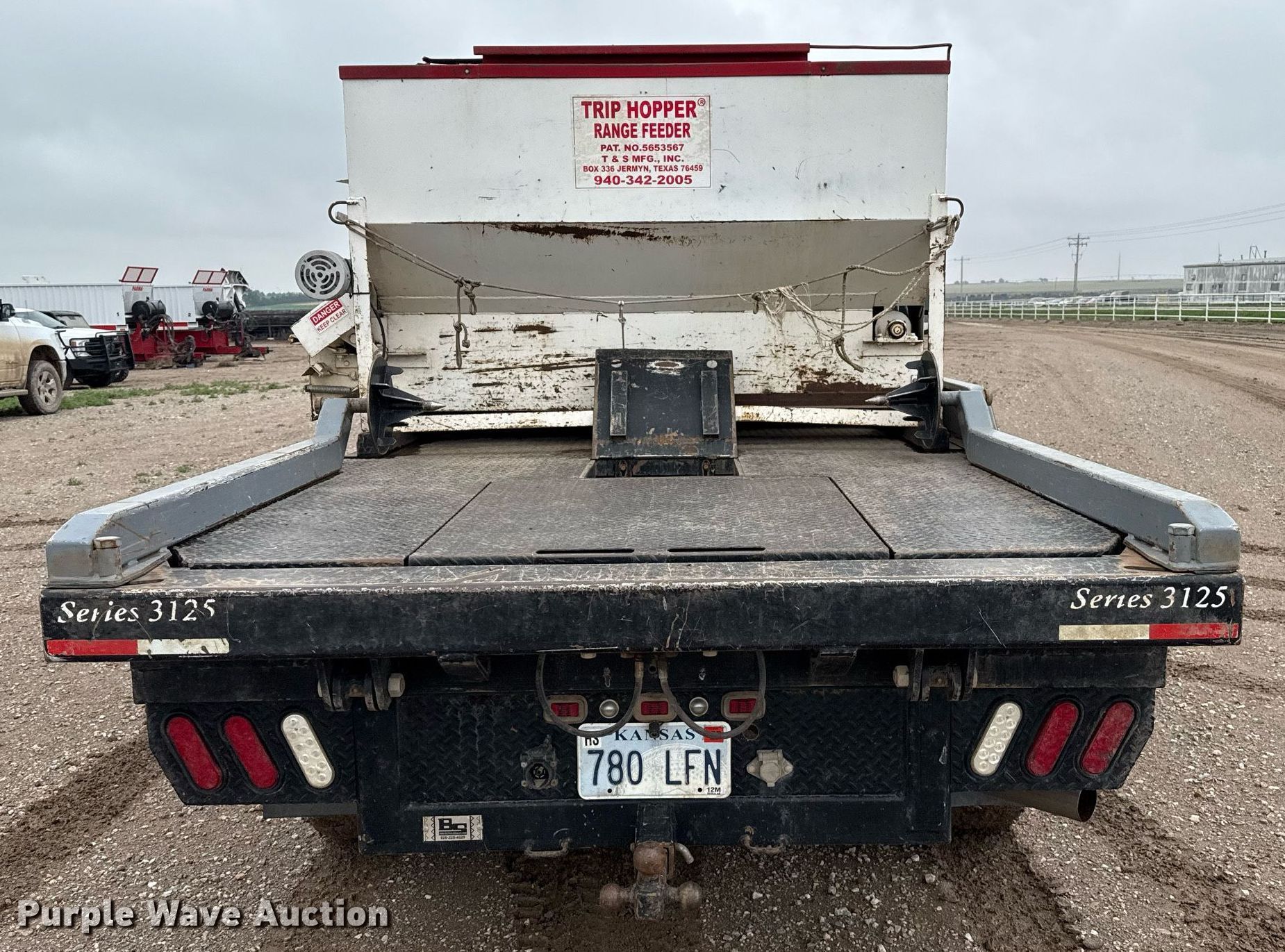 2018 Ford F350 Super Duty XL bale bed pickup truck. Miles: 76,742 on odometer, VIN: 1FTRF3B68JEC46145. Engine Displacement: 6.2L V8 OHV, Cylinders: 8, Fuel type: Gas. Transmission Automatic, Four wheel drive. Interior AC, Heat, Heated mirrors, Power windows, Power locks, Cruise control, Brake controller. Features Hydraulic bale bed Besler 3125, 9' 4" L x 80" W, Bale arm, Hitch: Gooseneck, Cake feeder. Tires Size: LT275/70R18. Notes Dash warning indicator: Check engine, TPMS, Fuel light, Windshield chipped or cracked. Kansas title. Deseret Cattle Feeders. Satanta, KS 67870