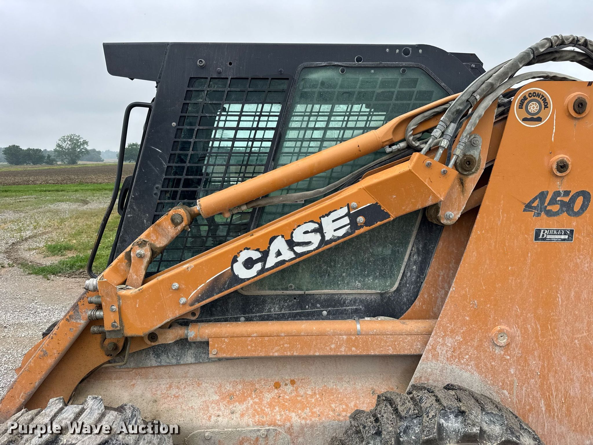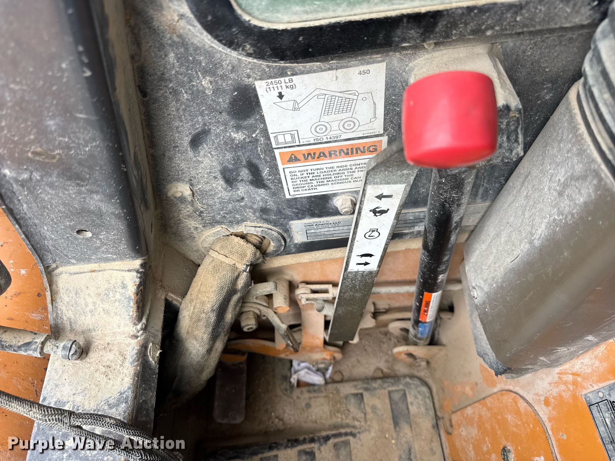 2007 Case 450 skid steer loader. Serial: N7M458260. Engine Cylinders: 4, Fuel type: Diesel. Transmission Hydrostatic, Two speed travel. Operators station Enclosed cab, AC, Heat, Bucket control: Hand. Features Auxiliary hydraulics, Auxiliary electrical outlet, Quick coupler: Hydraulic. Tires Size: 12-16.5. Notes Lap bar shocks need replaced bar will not stay up. Christensen Farms. Kansas , IL 61933