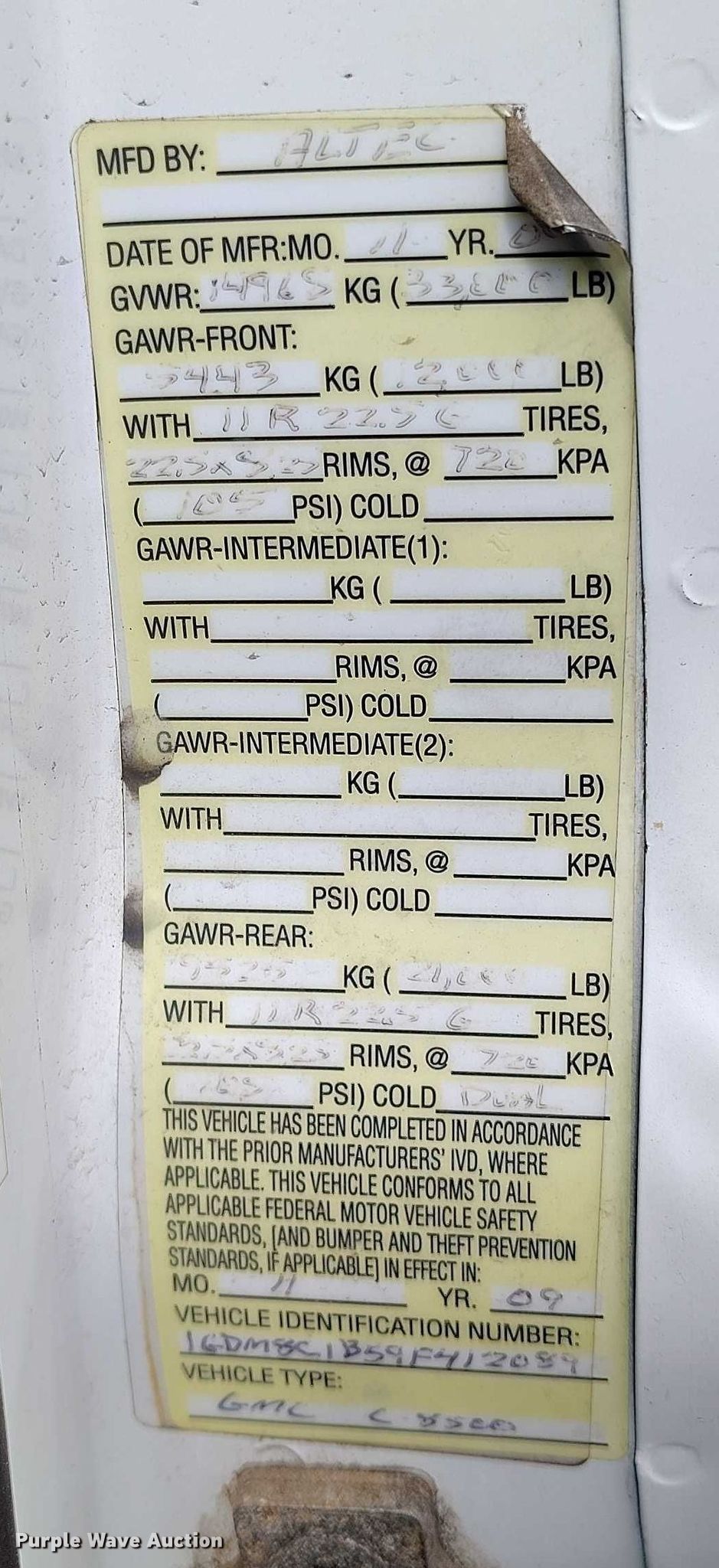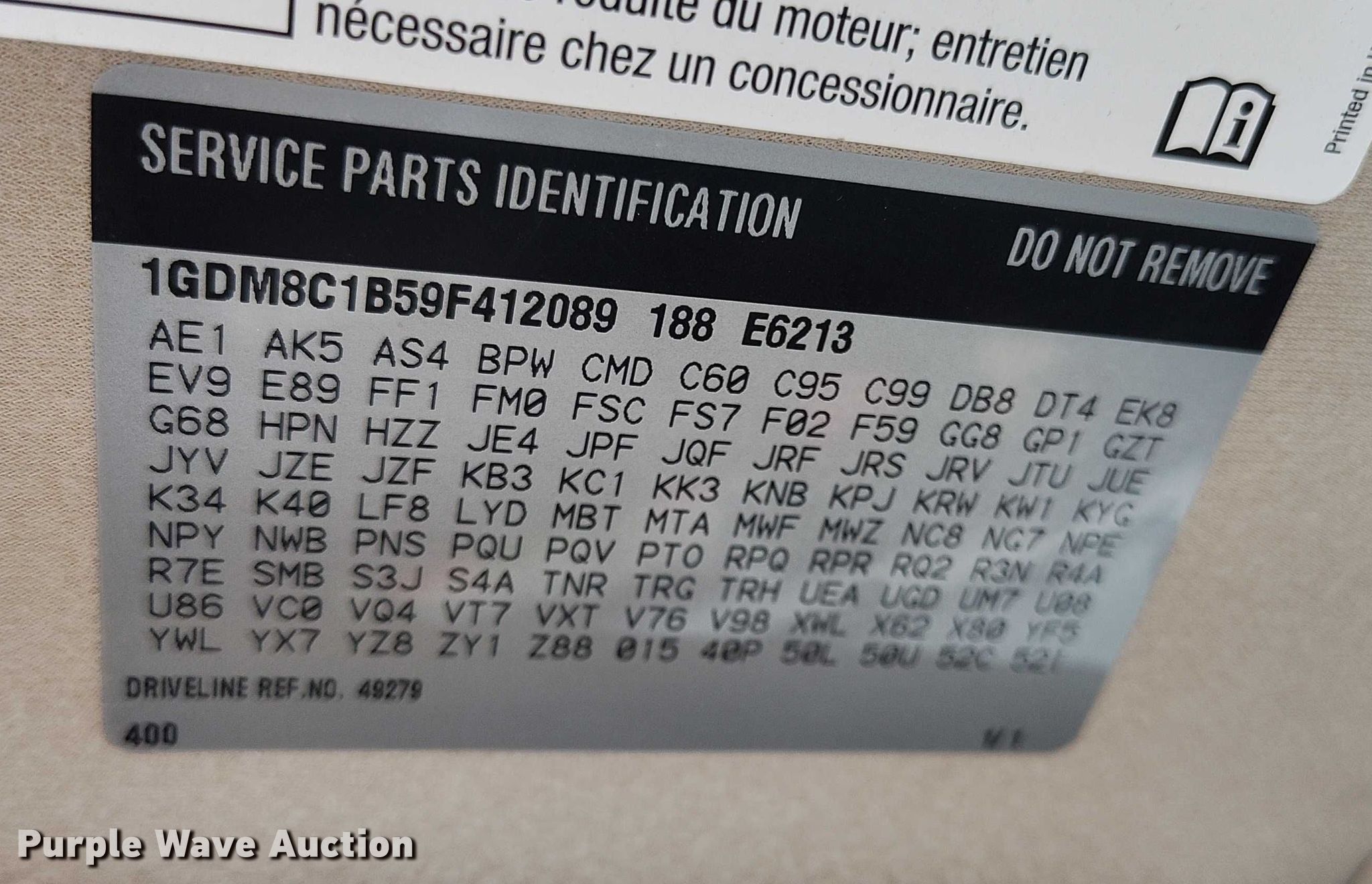 - VIN: 1GDM8C1B59F412089