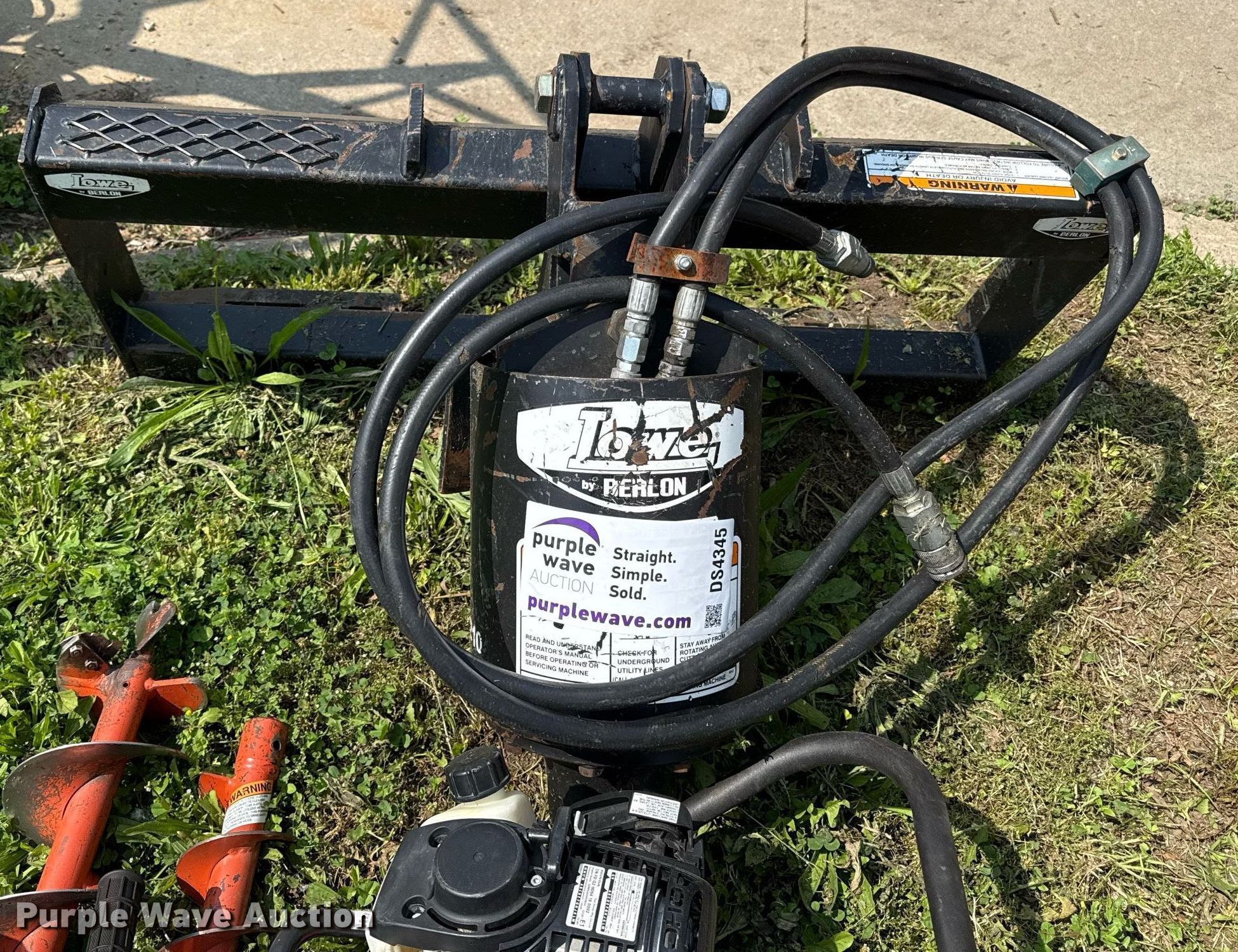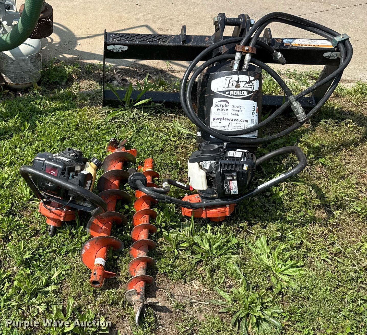 Purple Wave is selling a used Skid Steer Attach. in Kansas. This item is a Lowe Auger skid steer auger with the following: Bits, (2) Honda GX95 augers