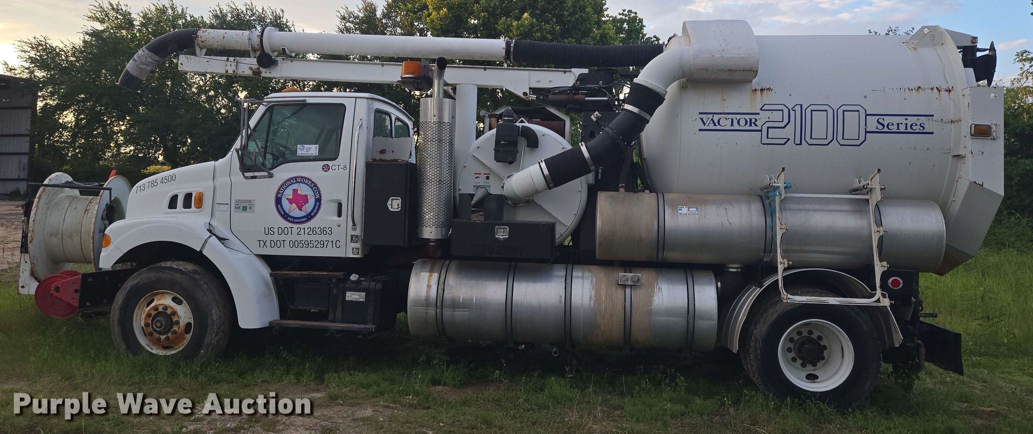 2002 Sterling L-Line sewer jetter truck. Miles: 183,376 on odometer, Hours: 12,685 on meter, VIN: 2FZAATAK52AK04869. Engine Displacement: 7.2L, Cylinders: 6, Fuel type: Diesel. Transmission Automatic. Chassis Axles: Single, Suspension: Air, Brakes: Air, GVWR: 41,000 lbs, Wheelbase: 223". Interior AC, Heat, Cruise control. Features Tank bed Vactor 2110-J4, Serial: 01-07V-7819, Capacity: 1,000 gallons, Rear outlet: 6", Engine Cylinders: 4, Fuel type: Diesel, Hose reel Front, Hydraulic, Telescopic boom Diameter: 8".. Tires Front: 315/80R22.5, Rear: 11R22.5. Notes Windshield chipped or cracked, Dead battery, Unknown operating condition of vacuum system, Non-operational pony motor, Unknown operating condition. Texas title. Title distribution may be delayed up to 30 days from verification of funds. National Works. Pasadena, TX 77505