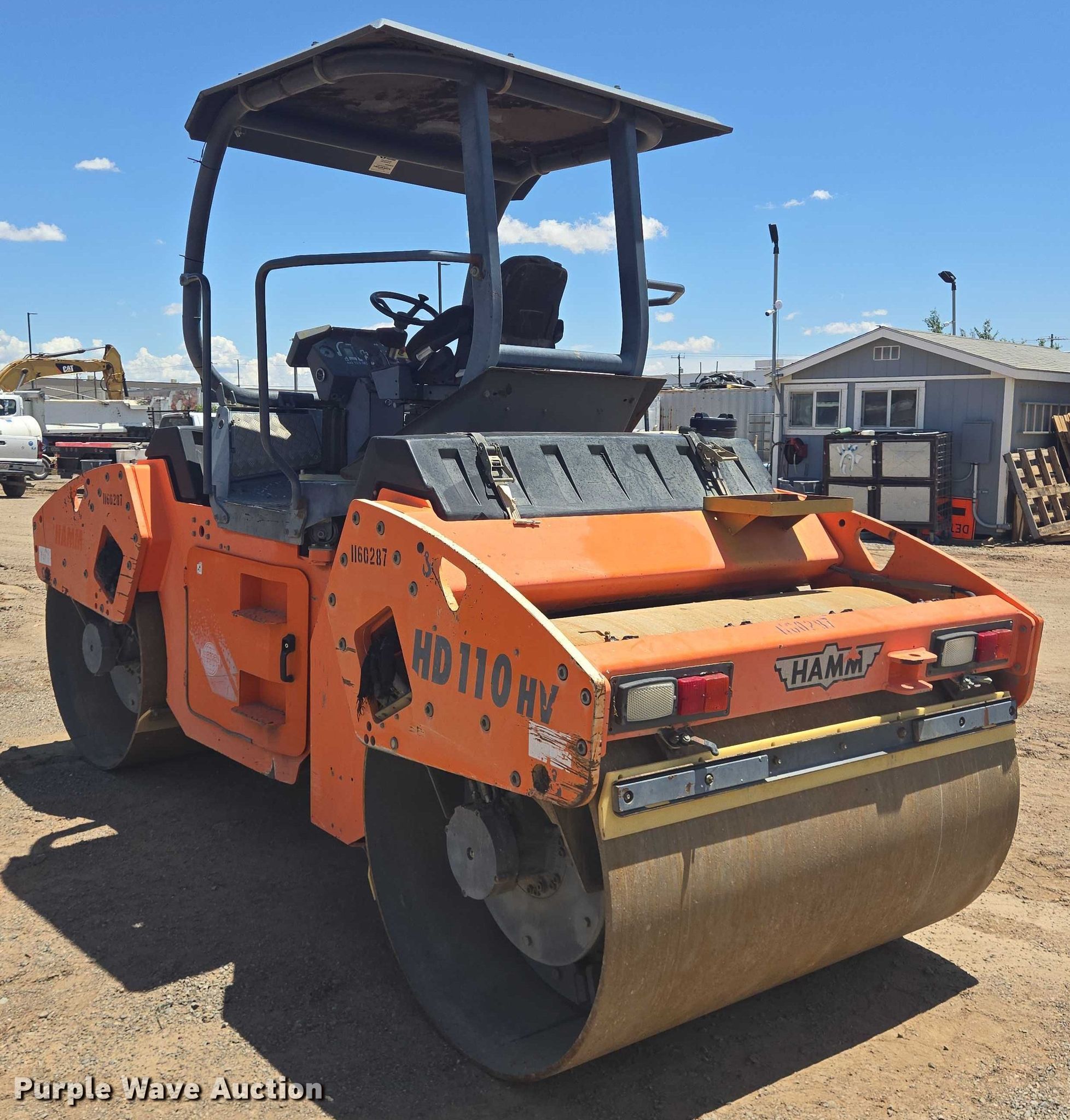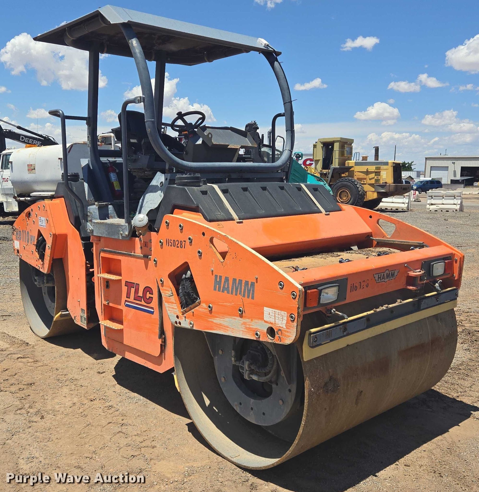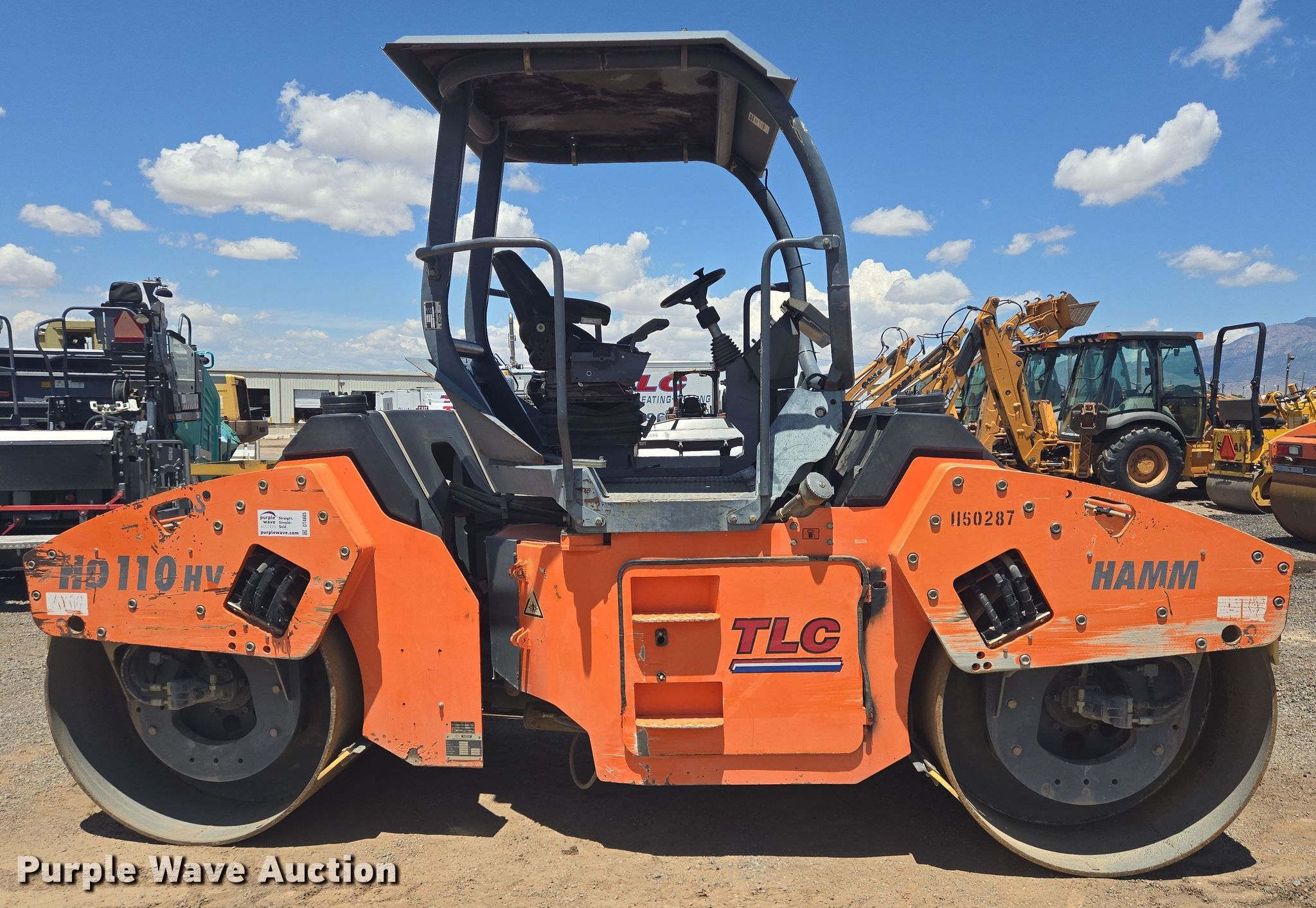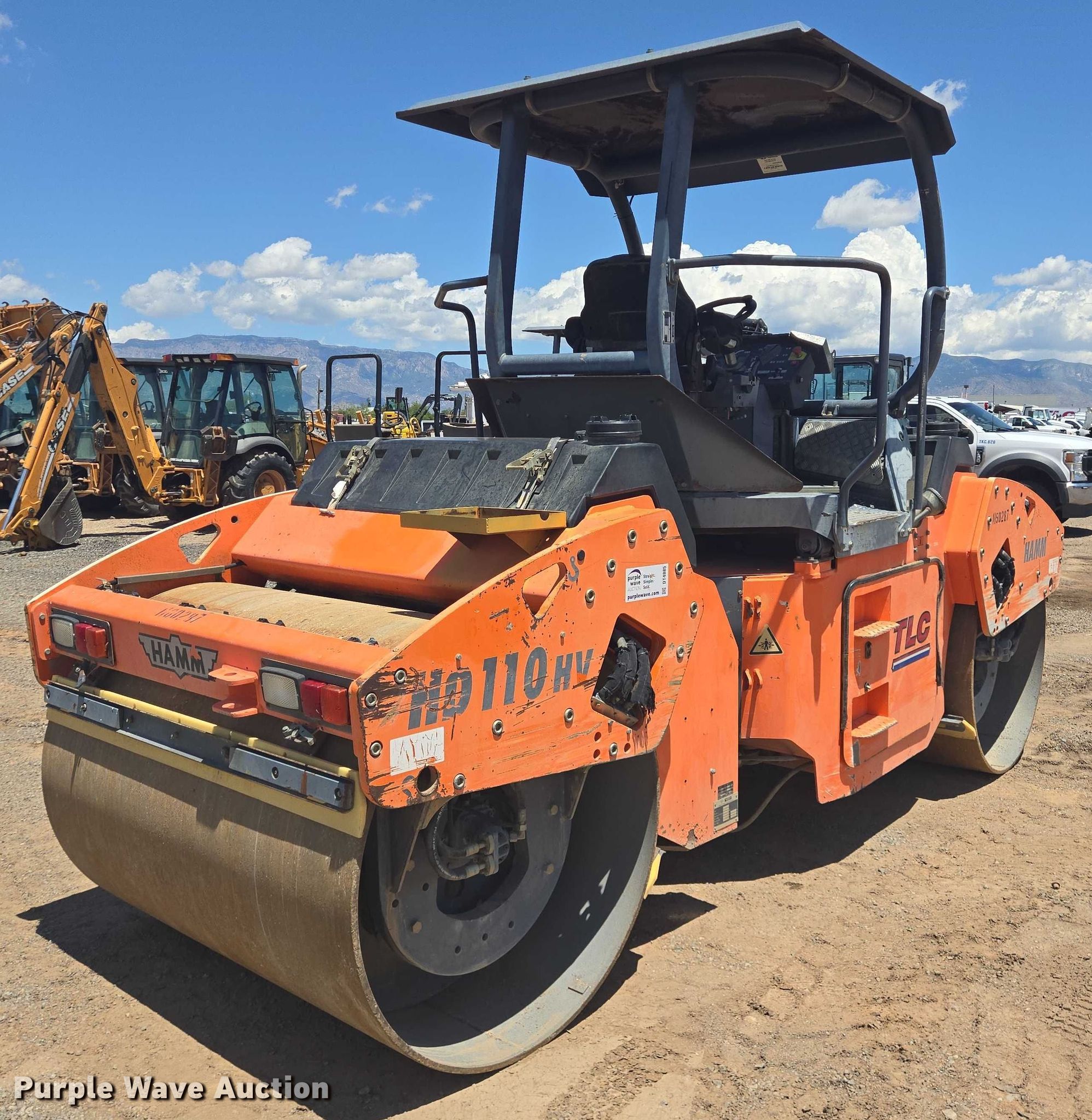Purple Wave is selling a used Double Drum Roller Compactor in New Mexico. This item is a 2009 Hamm HD 110 HV double drum vibratory roller with the following: Hours: 808 on meter, Serial: H1810475