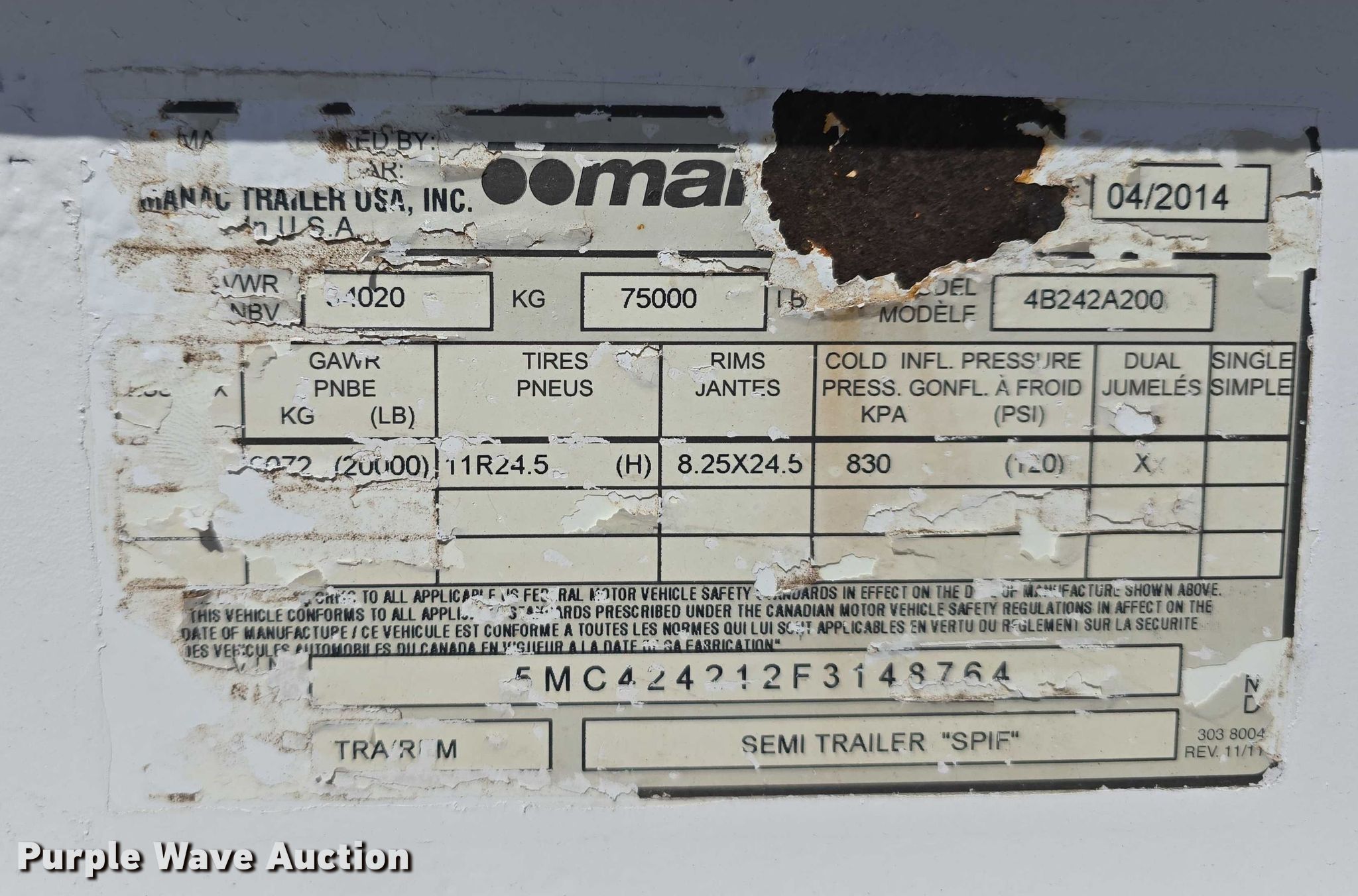Purple Wave is selling a used Bottom Dump Trailer in Nebraska. This item is a 2015 Manac bottom dump trailer with the following: VIN: 5MC424212F3148764