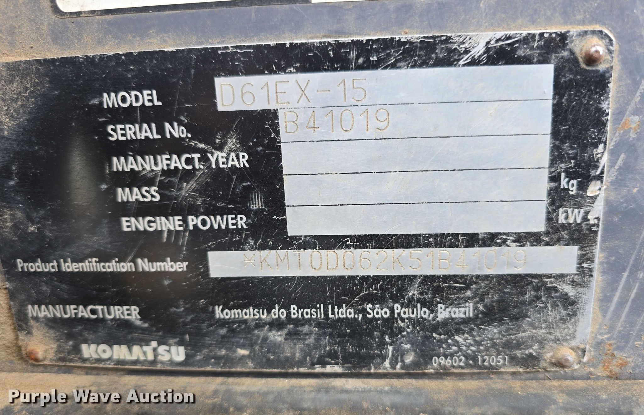 Purple Wave is selling a used Crawler Dozer in Nebraska. This item is a 2006 Komatsu D61EX-15 dozer with the following: Hours: 6,770 on meter, Miles or hours may vary, unit still in use, Serial: KMT0D062K51B41019