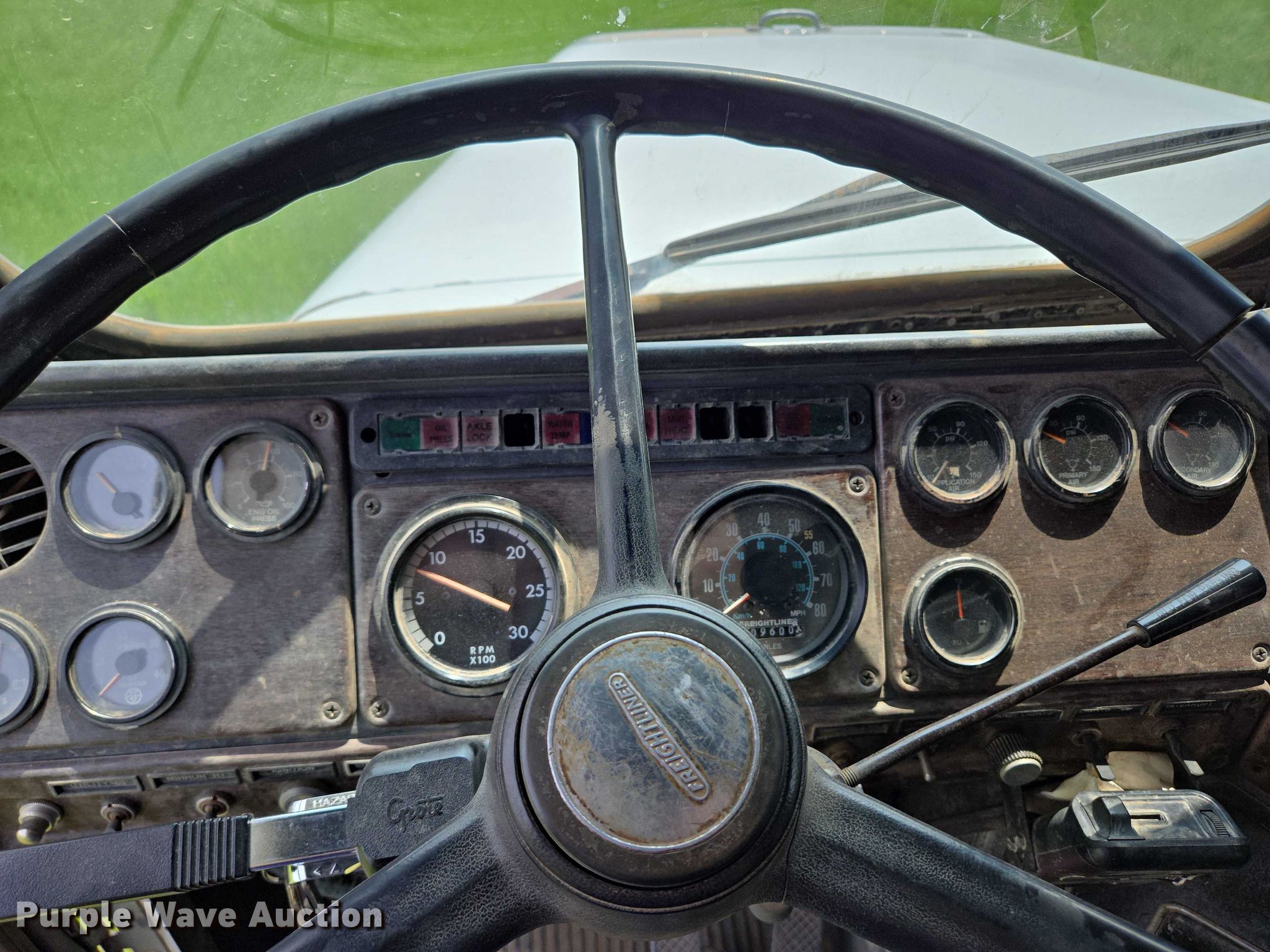 1987 Freightliner Conventional dump truck. Miles: 709,600 on odometer, VIN: 2FUYYRYB2HV307709. Engine Caterpillar, Cylinders: 6, Fuel type: Diesel, Engine brake. Transmission Eaton Fuller, Manual, Speed: 10. Chassis Double frame, Axles: Tandem, Differential lock: Inter-axle, Suspension: Air, Brakes: Air, PTO. Interior AC, Heat, Heated mirrors, Brake controller. Features Dump bed 16' L x 95" W, Side height: 46", Bed type: Steel, Roll tarp, Ram: Single, End gate: Air operated. Tires Size: 285/75R24.5. Notes Passenger mirror cracked. South Dakota title. Title distribution may be delayed up to 14 days from verification of funds. Hunter Homes LLC. Piedmont, SD 57769