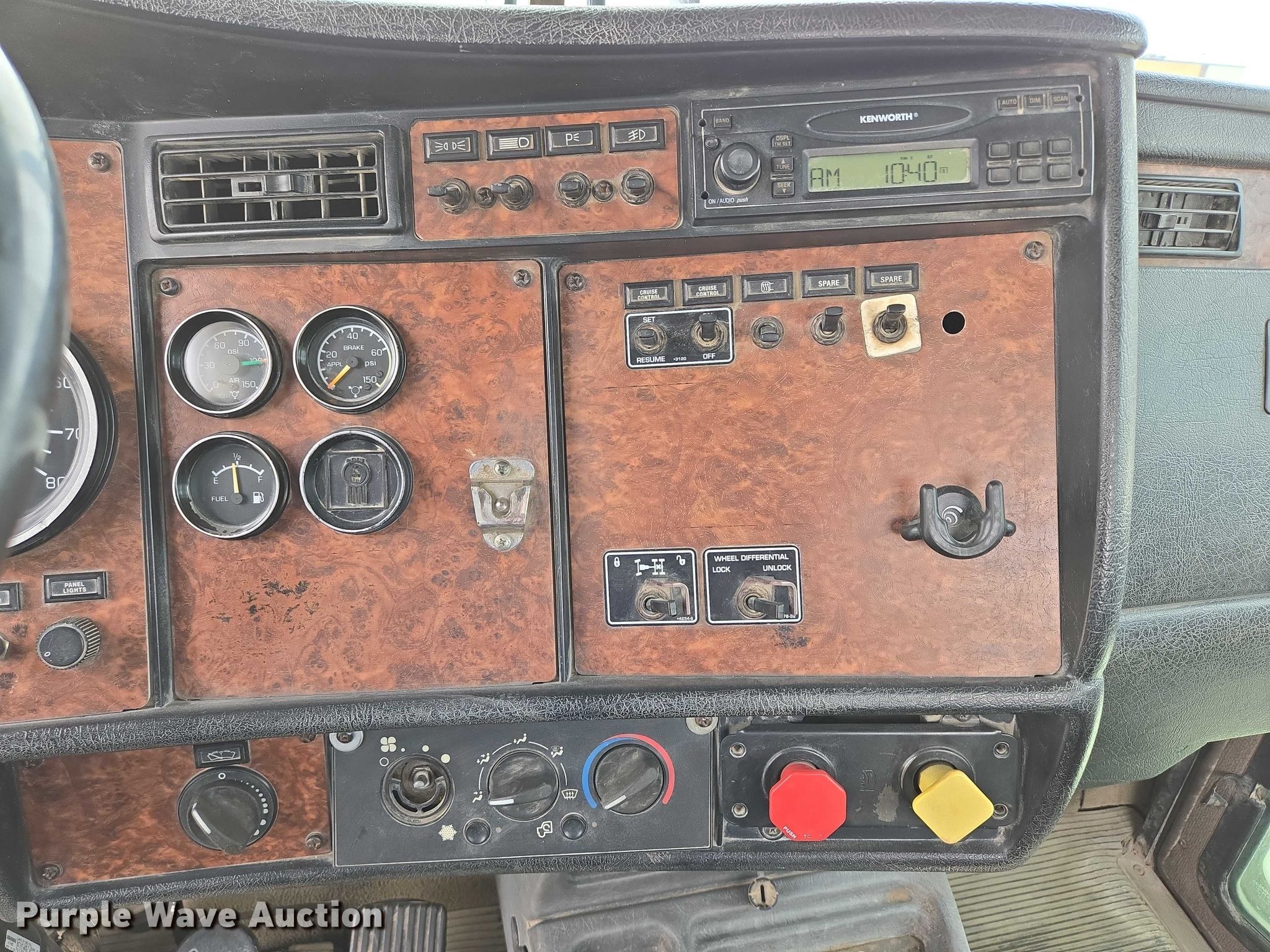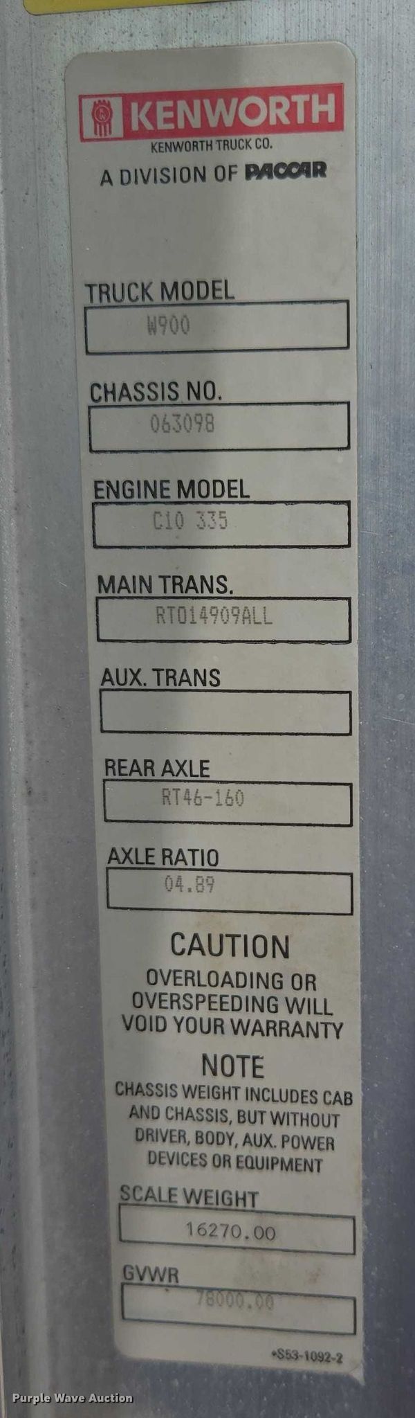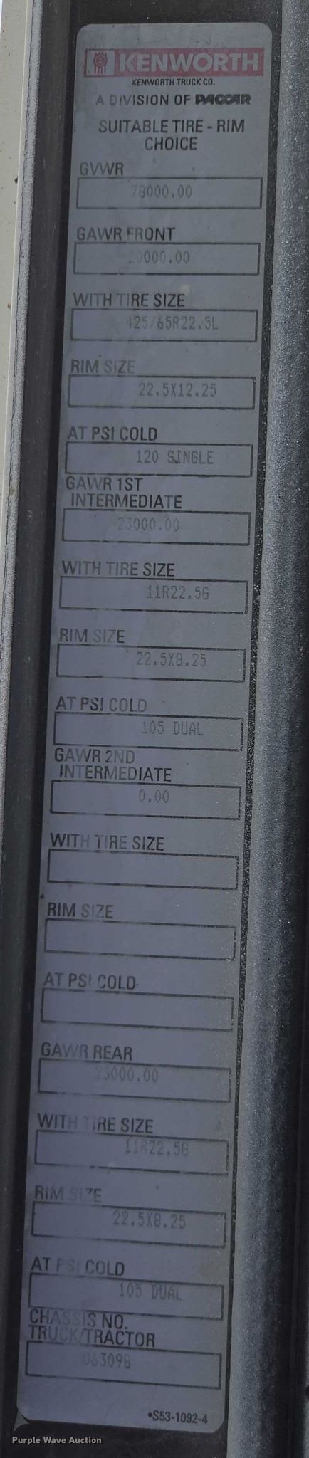 2004 Kenworth W900 ready mix truck. Miles: 267,078 on odometer, Hours: 7,007 on meter, VIN: 1NKWLTEX54J063098, Unit #: 2. Engine Caterpillar C10, Displacement: 10.3L, Cylinders: 6, Fuel type: Diesel. Transmission Eaton Fuller RTO14909ALL, Manual, Speed: 11. Chassis Axles: 4, Pusher axle Steerable, Tag axle Steerable, Differential lock: Inter-axle, Suspension: Spring over walking beam, Brakes: Air, PTO, GVWR: 78,000 lbs FAWR: 20,000 lbs, IAWR: 23,000 lbs, RAWR: 23,000 lbs. Interior AC, Heat, Heated mirrors, Cruise control. Features Mixer Discharge: Rear, In-cab controls, Rear drum controls, Chute Extensions: 3, Chute type: Steel.. Tires Front: 425/65R22.5, Rear: 11R22.5, Lift axle 255/70R22.5, 11R22.5. Notes Dash warning indicator: ABS, Windshield chipped or cracked. South Dakota title. Title distribution may be delayed up to 14 days from verification of funds. Buffalo Ridge Concrete. Watertown, SD 57201