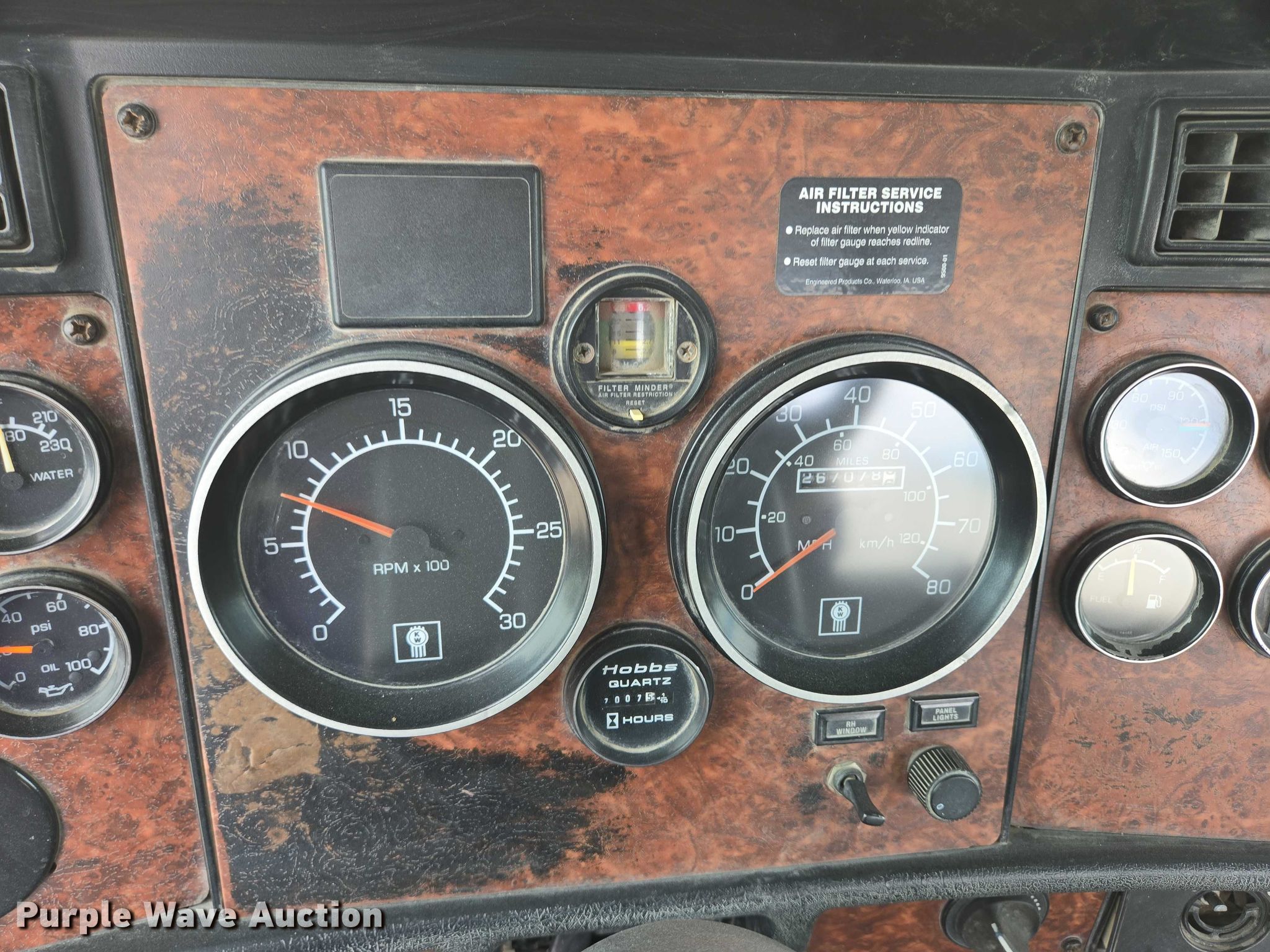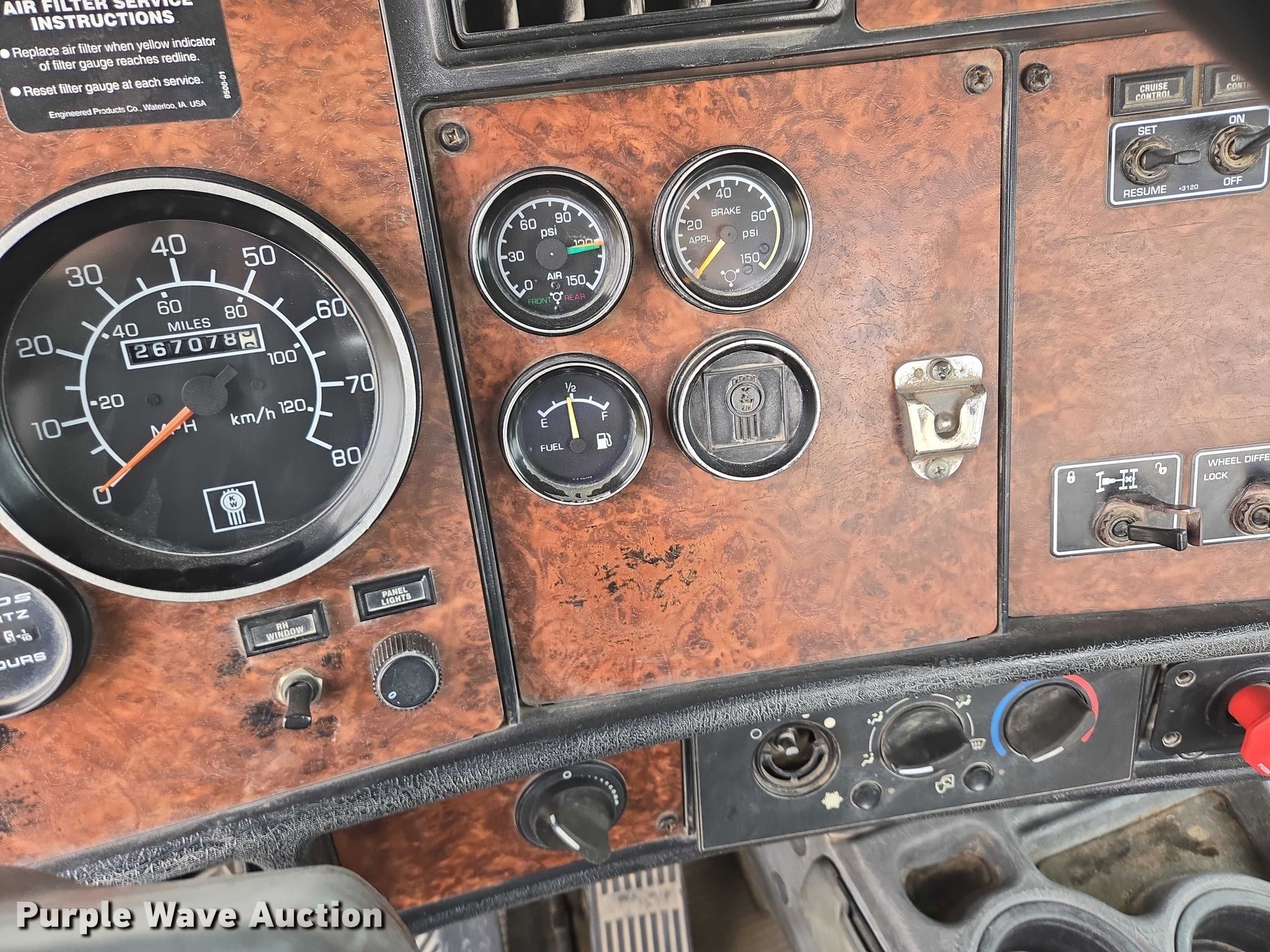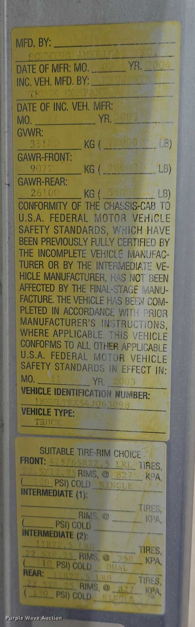 2004 Kenworth W900 ready mix truck. Miles: 267,078 on odometer, Hours: 7,007 on meter, VIN: 1NKWLTEX54J063098, Unit #: 2. Engine Caterpillar C10, Displacement: 10.3L, Cylinders: 6, Fuel type: Diesel. Transmission Eaton Fuller RTO14909ALL, Manual, Speed: 11. Chassis Axles: 4, Pusher axle Steerable, Tag axle Steerable, Differential lock: Inter-axle, Suspension: Spring over walking beam, Brakes: Air, PTO, GVWR: 78,000 lbs FAWR: 20,000 lbs, IAWR: 23,000 lbs, RAWR: 23,000 lbs. Interior AC, Heat, Heated mirrors, Cruise control. Features Mixer Discharge: Rear, In-cab controls, Rear drum controls, Chute Extensions: 3, Chute type: Steel.. Tires Front: 425/65R22.5, Rear: 11R22.5, Lift axle 255/70R22.5, 11R22.5. Notes Dash warning indicator: ABS, Windshield chipped or cracked. South Dakota title. Title distribution may be delayed up to 14 days from verification of funds. Buffalo Ridge Concrete. Watertown, SD 57201