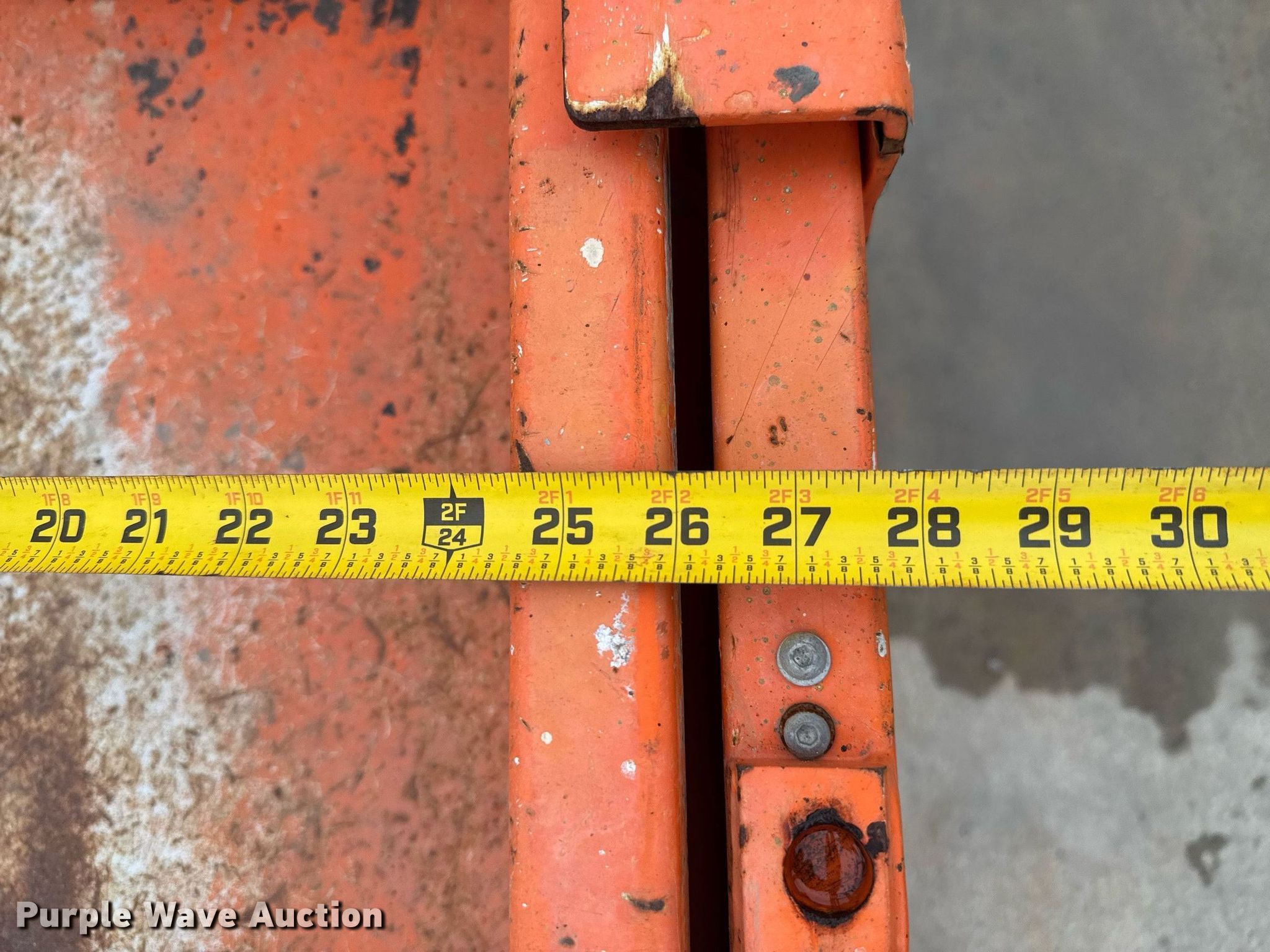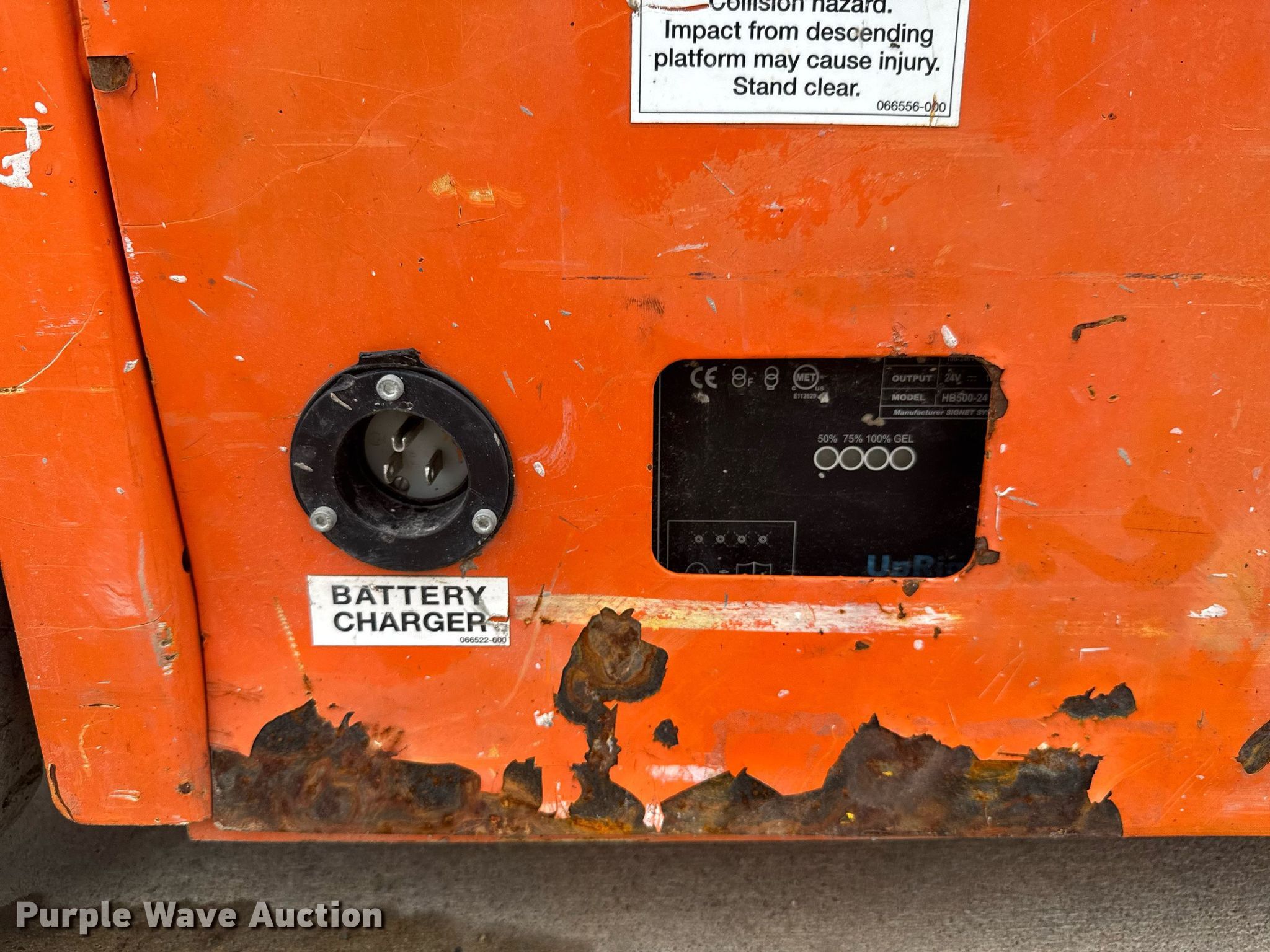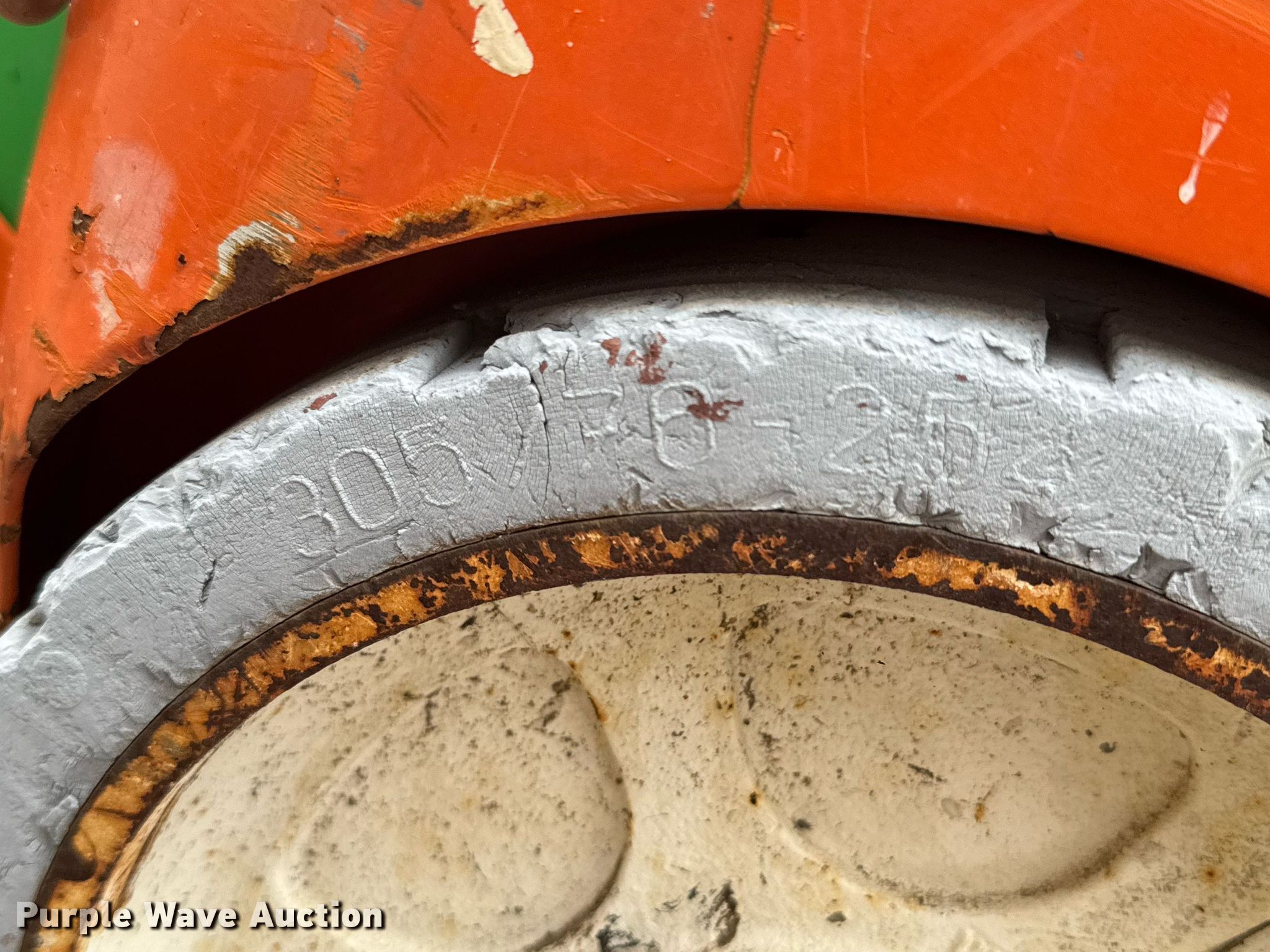 2015 Snorkel TM12 vertical lift. Serial: TM12-01-060808. Electric Motor Volts: 48. Features Maximum lift capacity: 500 lbs, Maximum lift height: 12', Platform: 52" L x 26" W, Controls: Platform, Ground, Platform extensions: Manual. Tires Tire size: 305/70-25, Solid. Chouteau, OK 74337