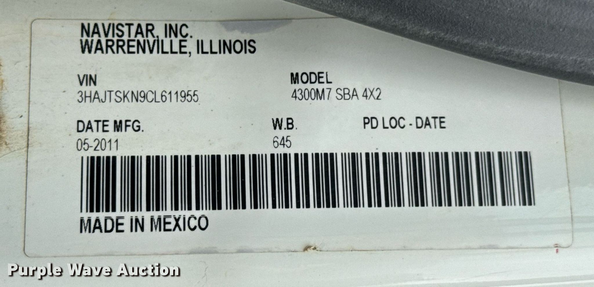 2012 International 4300 water truck. Miles: 30,306 on odometer, Hours: 3,942 on meter, VIN: 3HAJTSKN9CL611955. Engine International Maxxforce 7, Displacement: 6.4L, Cylinders: 8, Fuel type: Diesel. Transmission Automatic. Chassis Axles: Single, Suspension: Spring, Brakes: Air, PTO, GVWR: 33,000 lbs, Wheelbase: 645". Interior AC, Heat, Heated mirrors, Power windows, Power locks, Cruise control. Features Bed / tank Capacity: 2,000 gallons, 11' L x 96" W, Spray bar: Front, Rear, Side discharge, Hose reel, Top fill. Tires Size: 11R22.5. Notes Windshield chipped or cracked. Arkansas title. Title distribution may be delayed up to 14 days from verification of funds. MJ Excavating. Fort Smith, AR 72908