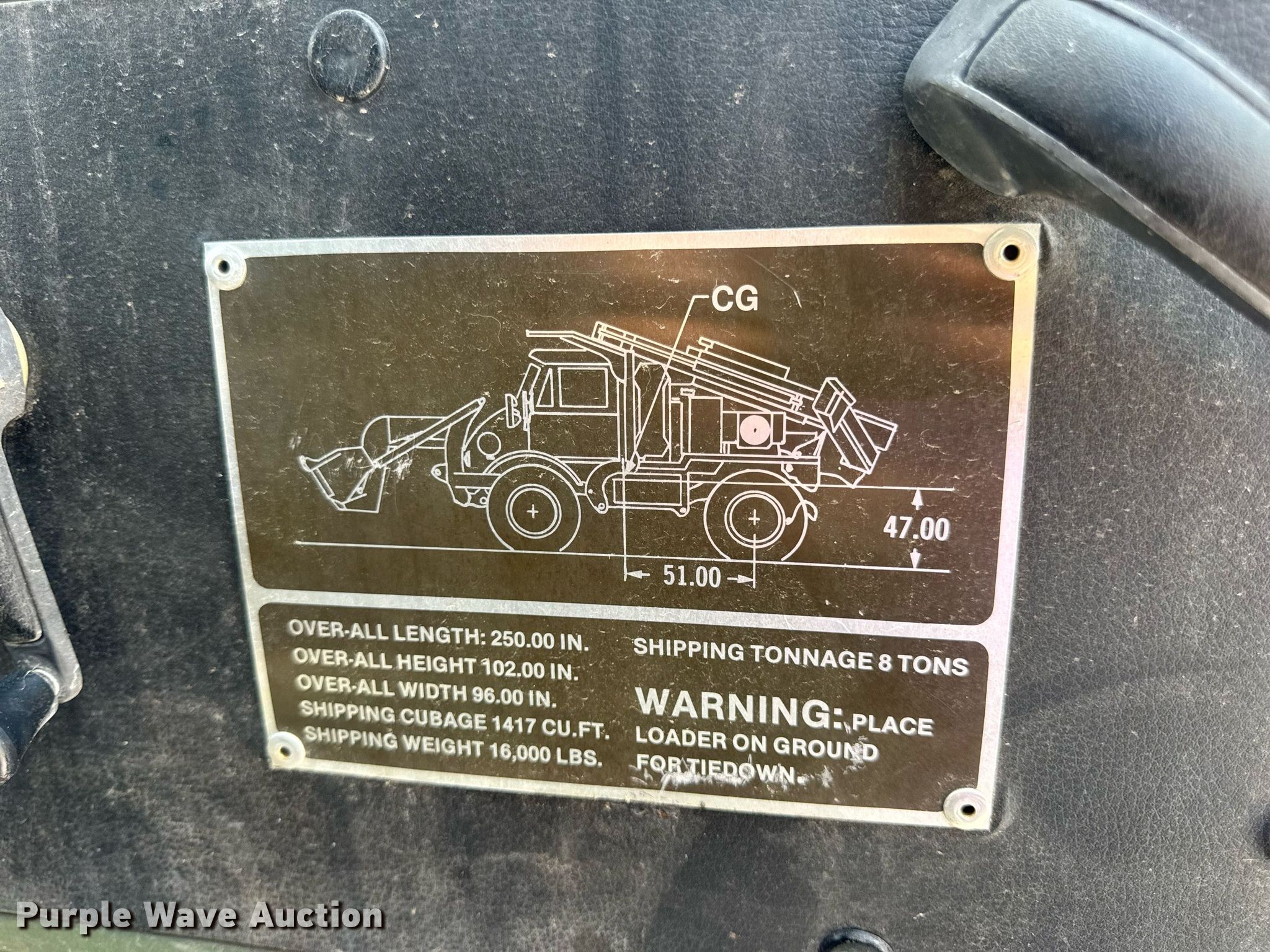1987 Freightliner UC03JL Unimog emplacement excavator. Miles: 307 on odometer, Serial: 1FG999991HM450095. Engine Mercedes-Benz, Cylinders: 6, Fuel type: Diesel. Transmission Manual, 8F - 4R. Operators station Heat. Tires Size: 12.5R20. Features Schmidt front end loader Model FL-4, Serial: 38837-63, Bucket Width: 81", Teeth: 6, Case backhoe Model: M35C, Serial: 1741641, Bucket Width: 24", Teeth: 5, Three- Stick Stick length: 6'. Notes Transmission issues Non-operational high range, grinds, Hydraulic Leak, Weather cracking. Transfer of ownership documentation will be a bill of sale. 320 W Front Street. La Monte, MO 65337