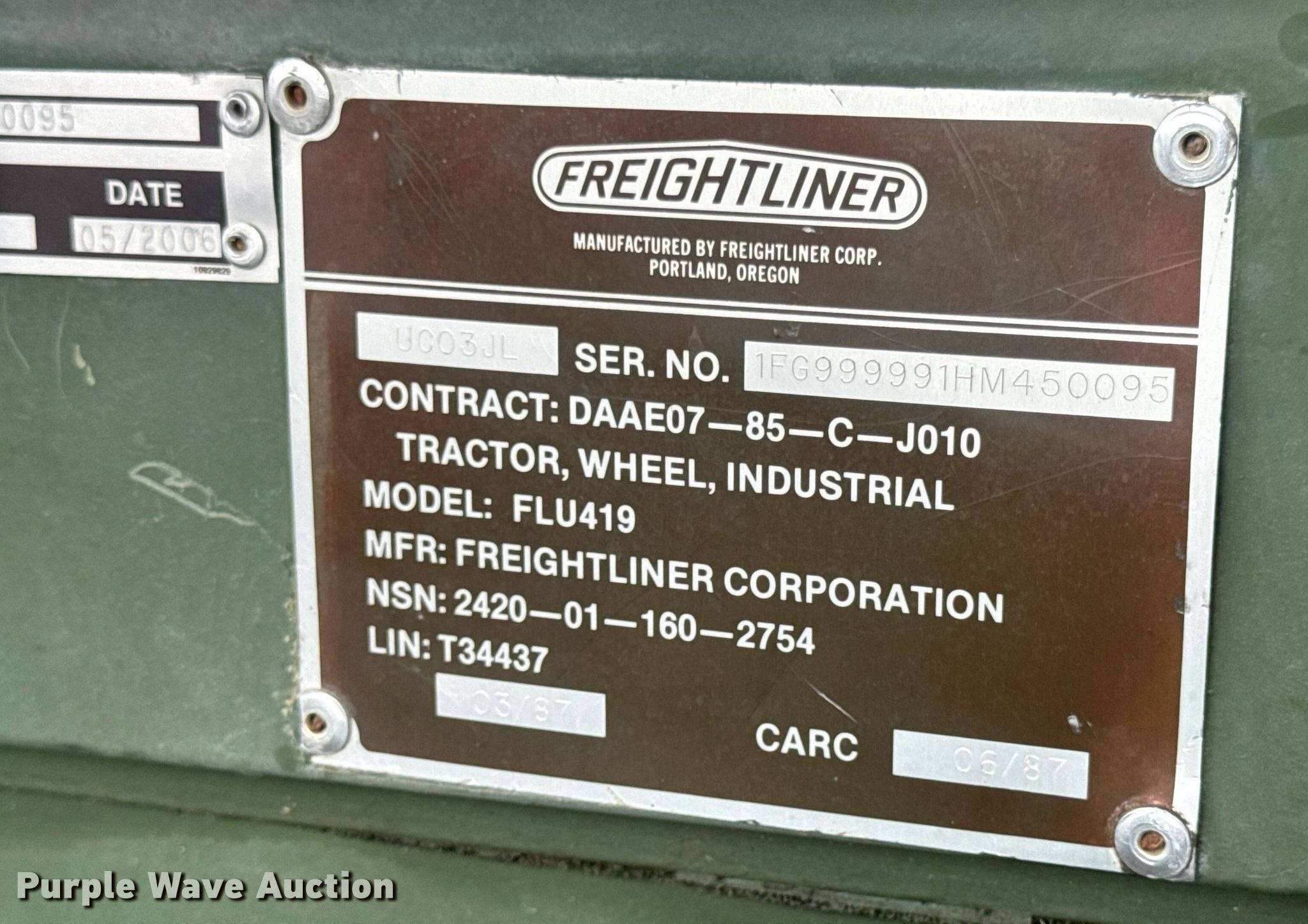 Purple Wave is selling a used Wheeled Excavator in Missouri. This item is a 1987 Freightliner UC03JL Unimog emplacement excavator with the following: Miles: 307 on odometer, Serial: 1FG999991HM450095