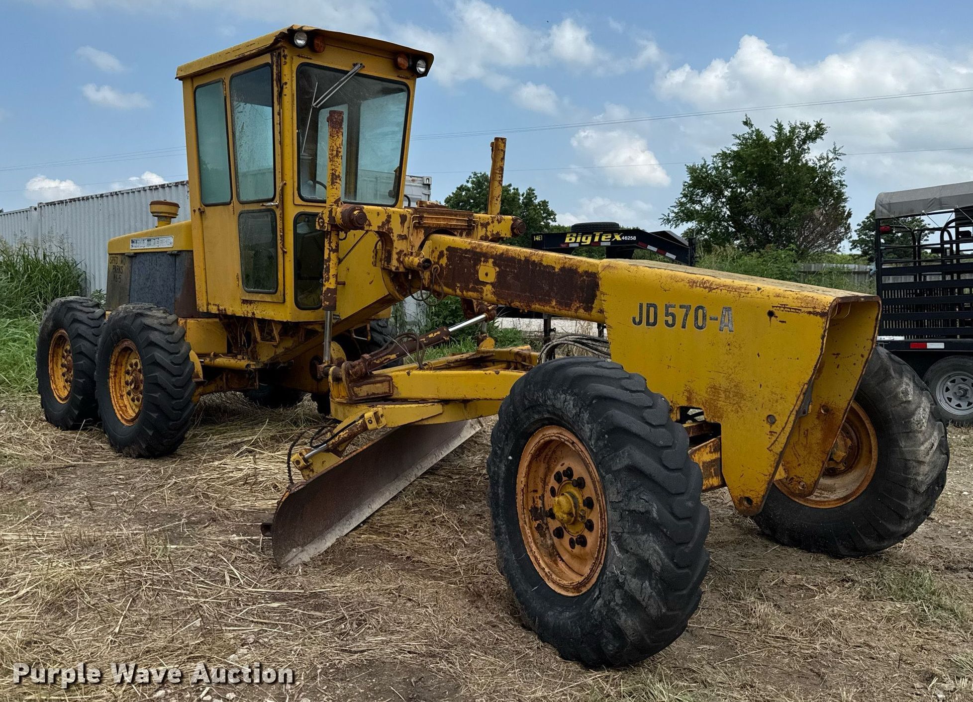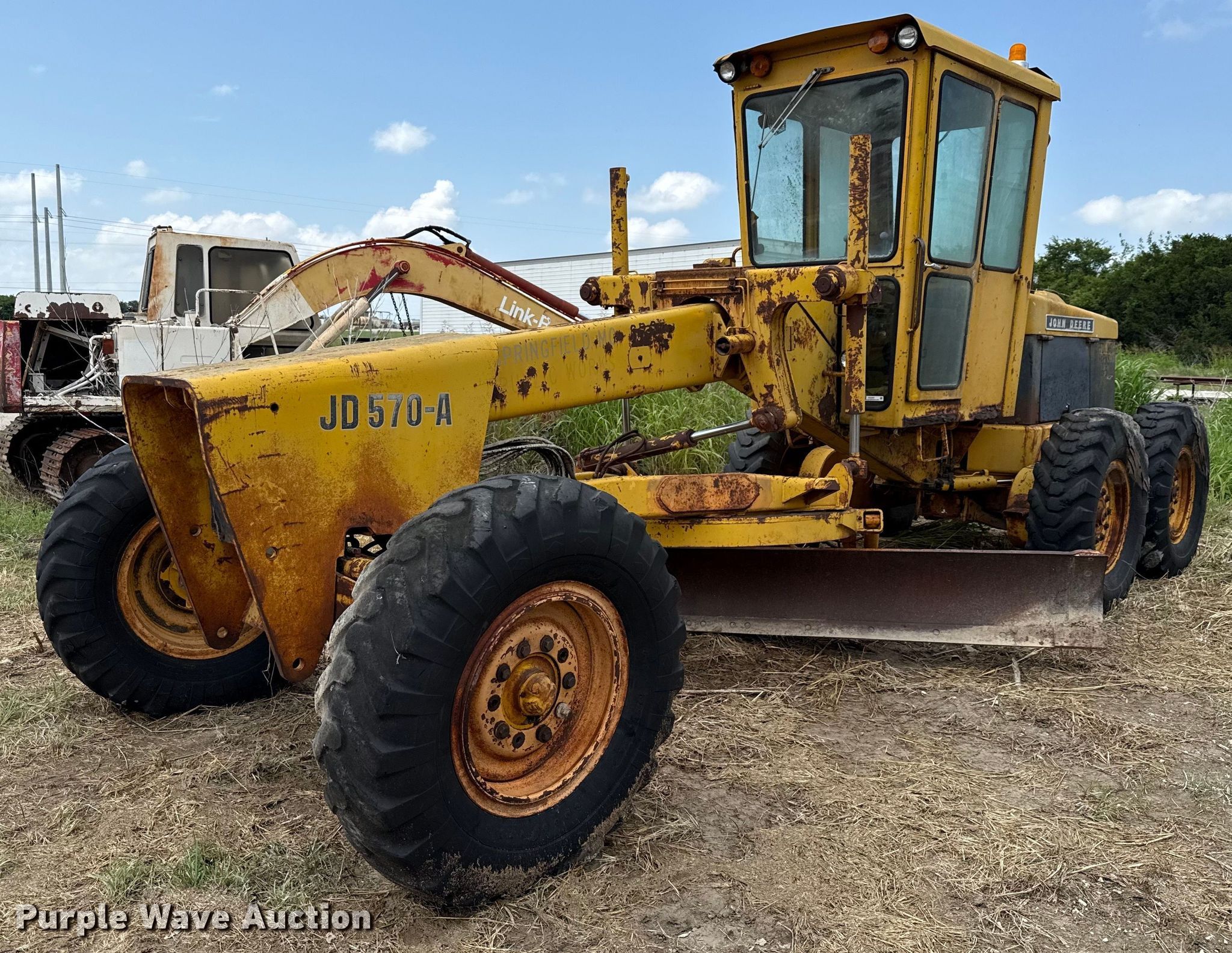 Purple Wave is selling a used Motor Grader in Texas. This item is a 1975 John Deere 570A motor grader with the following: Hours: 204 on meter, Actual hours unknown, Serial: 003240T