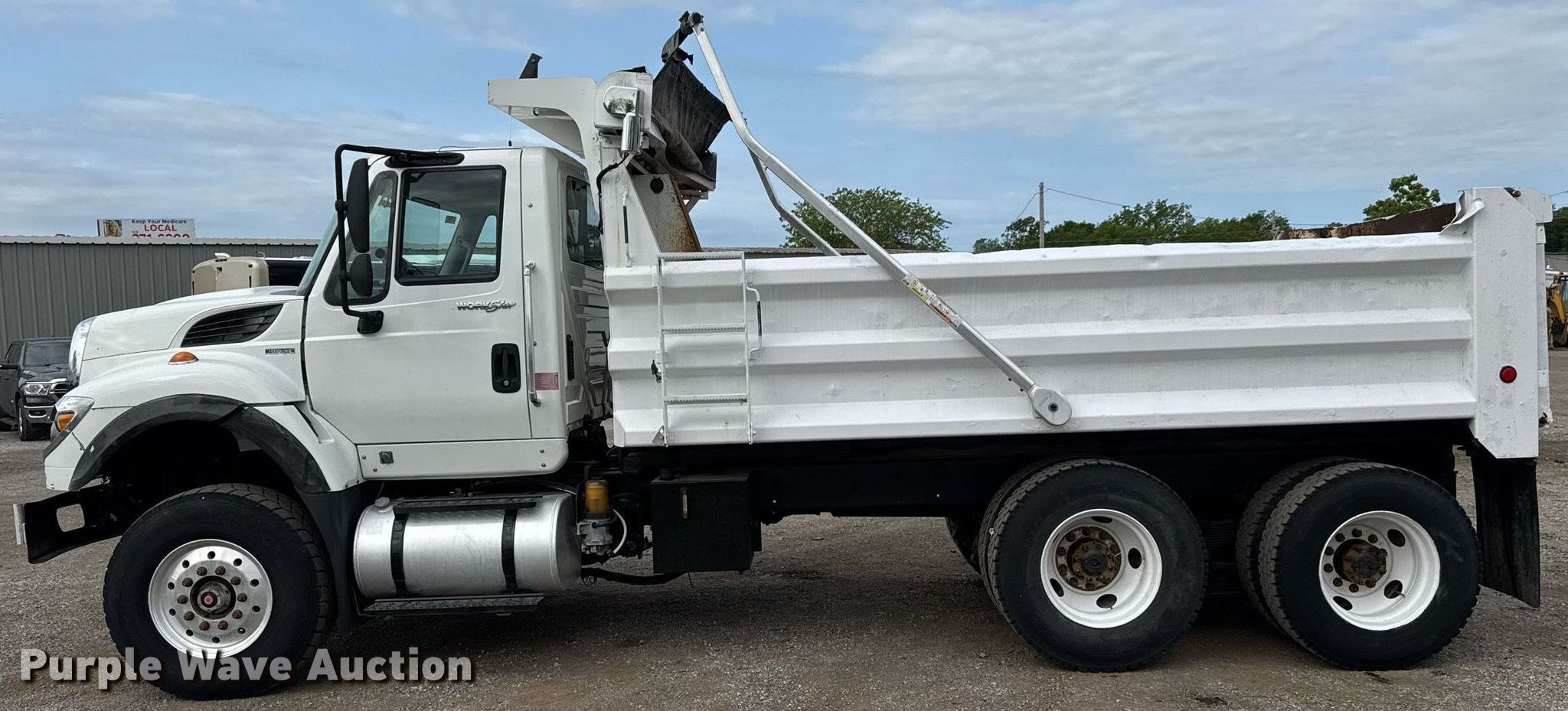 Purple Wave is selling a used Construction Dump Truck in Oklahoma. This item is a 2011 International 7600 dump truck with the following: Miles: 166,498 on odometer, Hours: 8,394 on meter, VIN: 1HTWYSHT8BJ370674