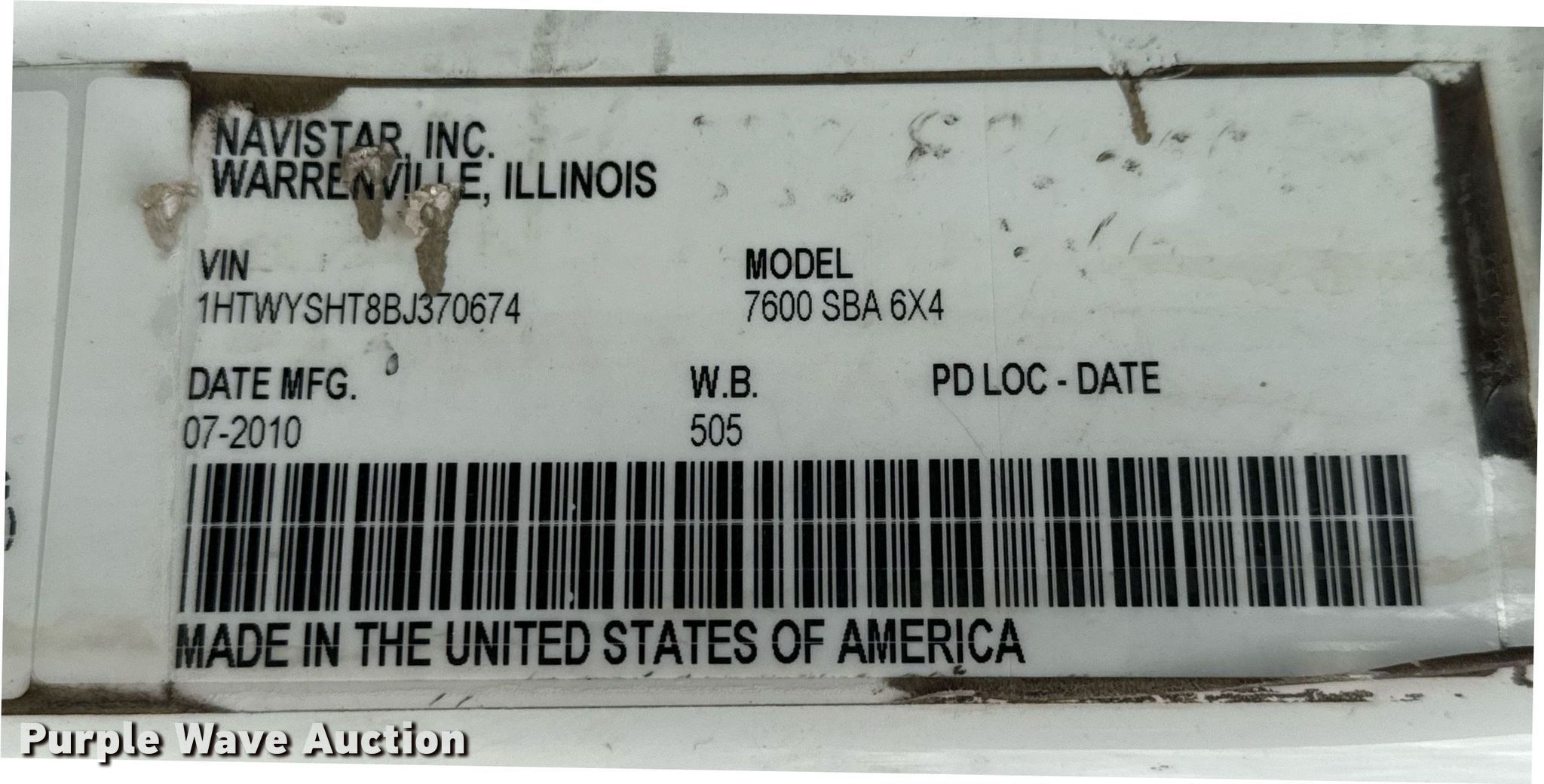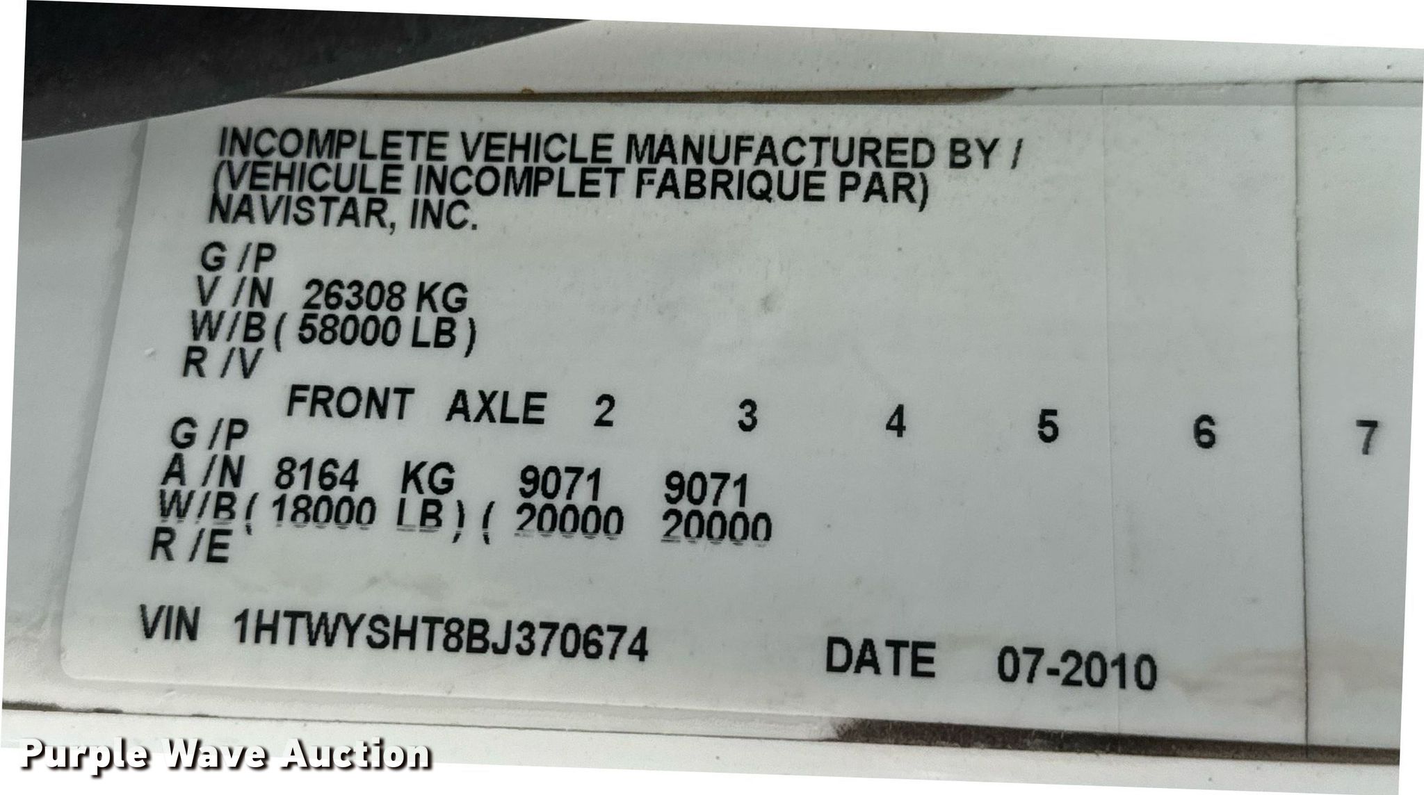 - VIN: 1HTWYSHT8BJ370674
