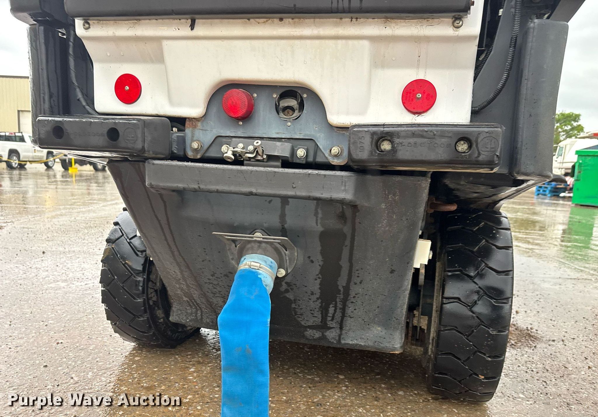 Madvac LS100 street sweeper. Hours: 286 on meter, Hours: 132 on second meter Actual hours unknown, Serial: 31036. Engine Kubota, Cylinders: 3, Fuel type: Diesel. Transmission Powershift. Chassis Brakes: Hydraulic. Operators station Enclosed cab, AC, Backup camera. Features Water spray system, Sweeper bed Sweeper bed type: Vacuum, Left gutter broom Diameter: 25", Right gutter broom Diameter: 25, Material dump bed. Tires Size: 6.00-9. Notes Unknown operating condition of AC. Transfer of ownership documentation will be a bill of sale. Dondlinger & Sons Construction. Wichita, KS 67217