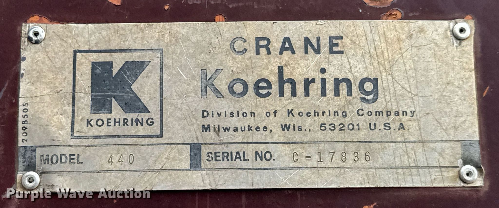 Purple Wave is selling a used Crawler Crane in Kansas. This item is a 1976 Koehring 440 crane with the following: Hours: 1,084 on meter, Serial: C-17836