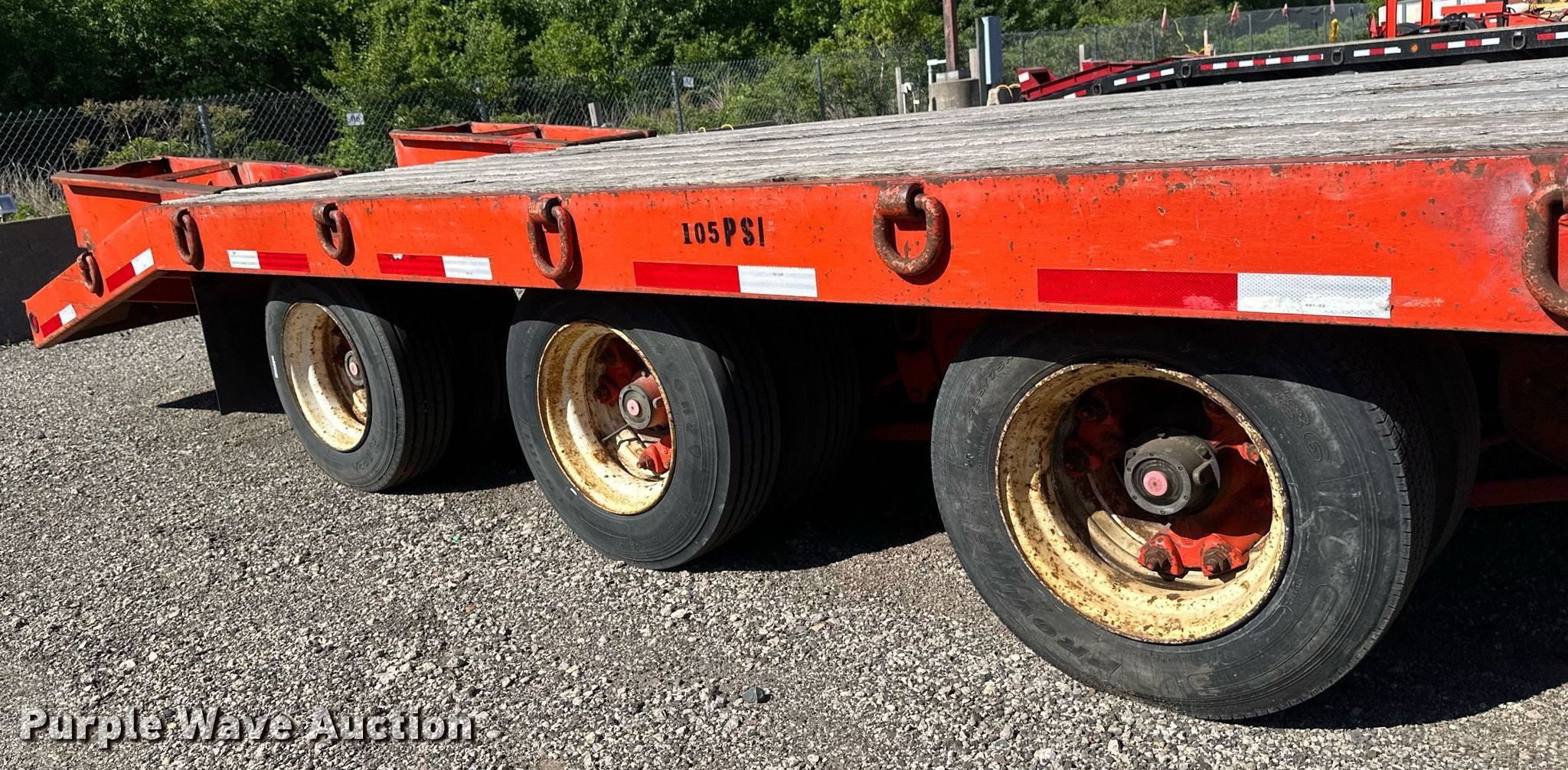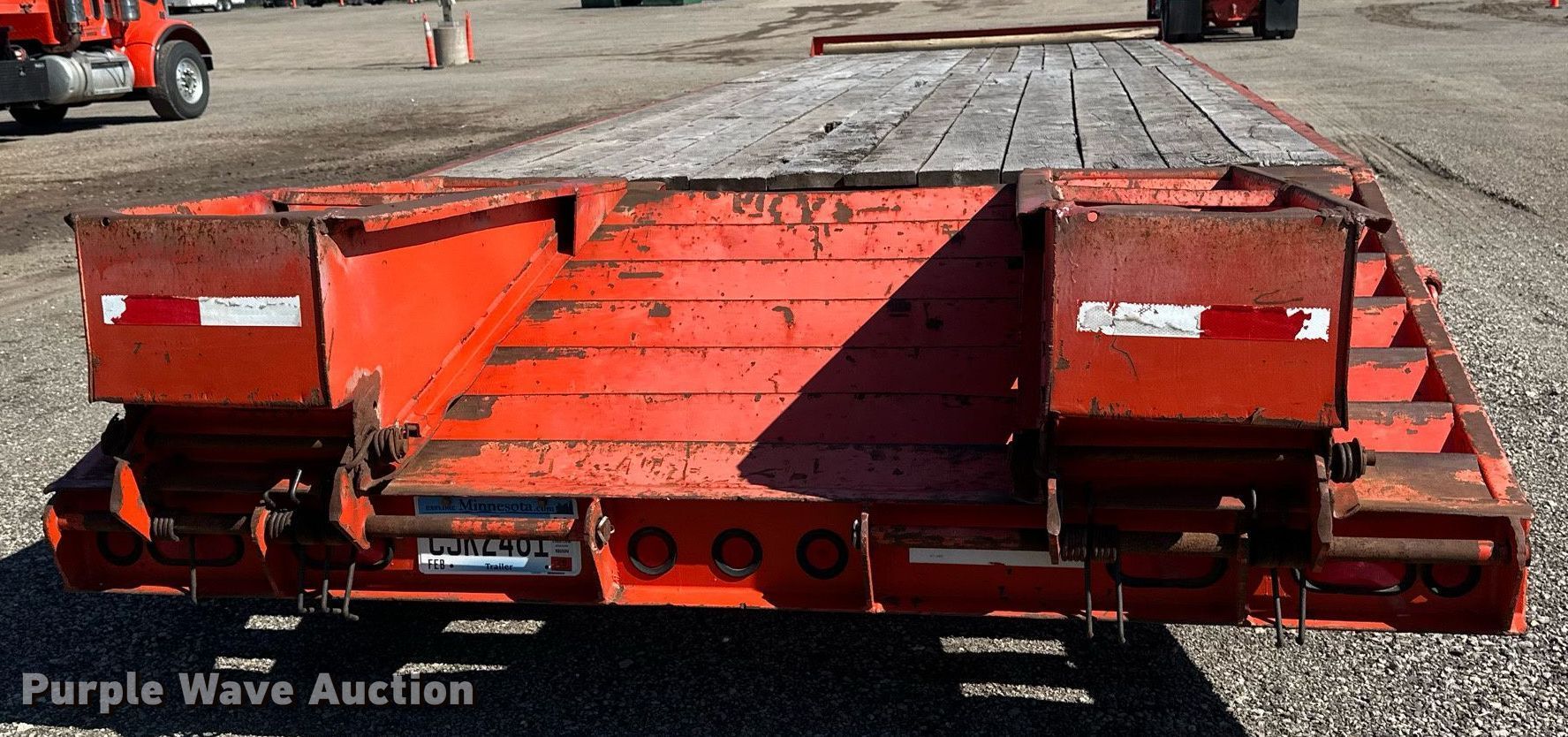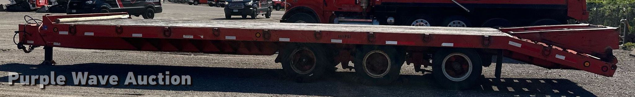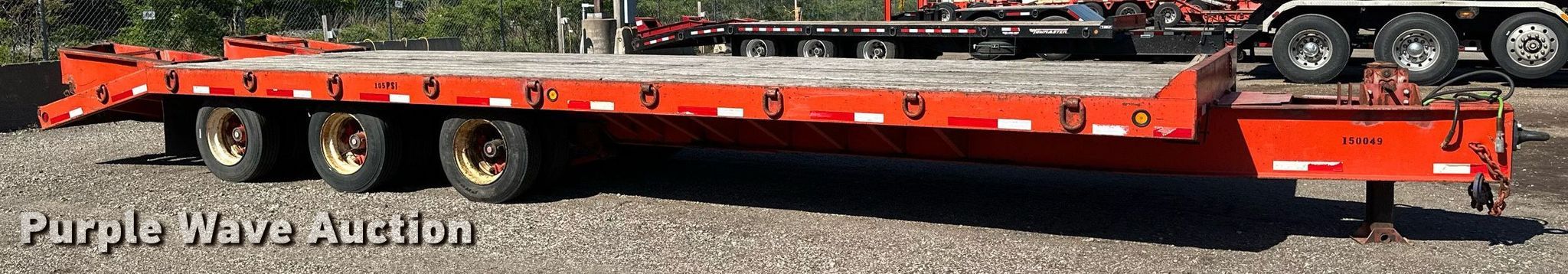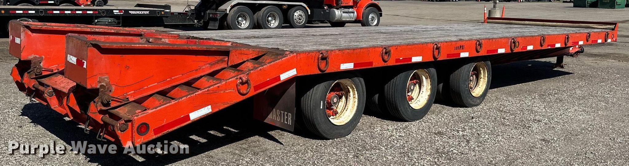 2000 Tow Master equipment trailer. VIN: 4KNFT2638YL163785. Dimensions Overall: 35' L x 102" W, Deck: 26' L x 102" W, Deck height: 3', Tail length: 5', Ramps: Manual Length: 4' 10". Features Deck type: Wood. Chassis Hitch: Pintle, Landing gear: Single, Suspension: Spring, Brakes: Air, Axles: Triple. Tires Steel wheels, Size: 215/75R17.5. Minnesota title. Title distribution may be delayed up to 14 days from verification of funds. Frattalone Companies. Little Canada, MN 55117