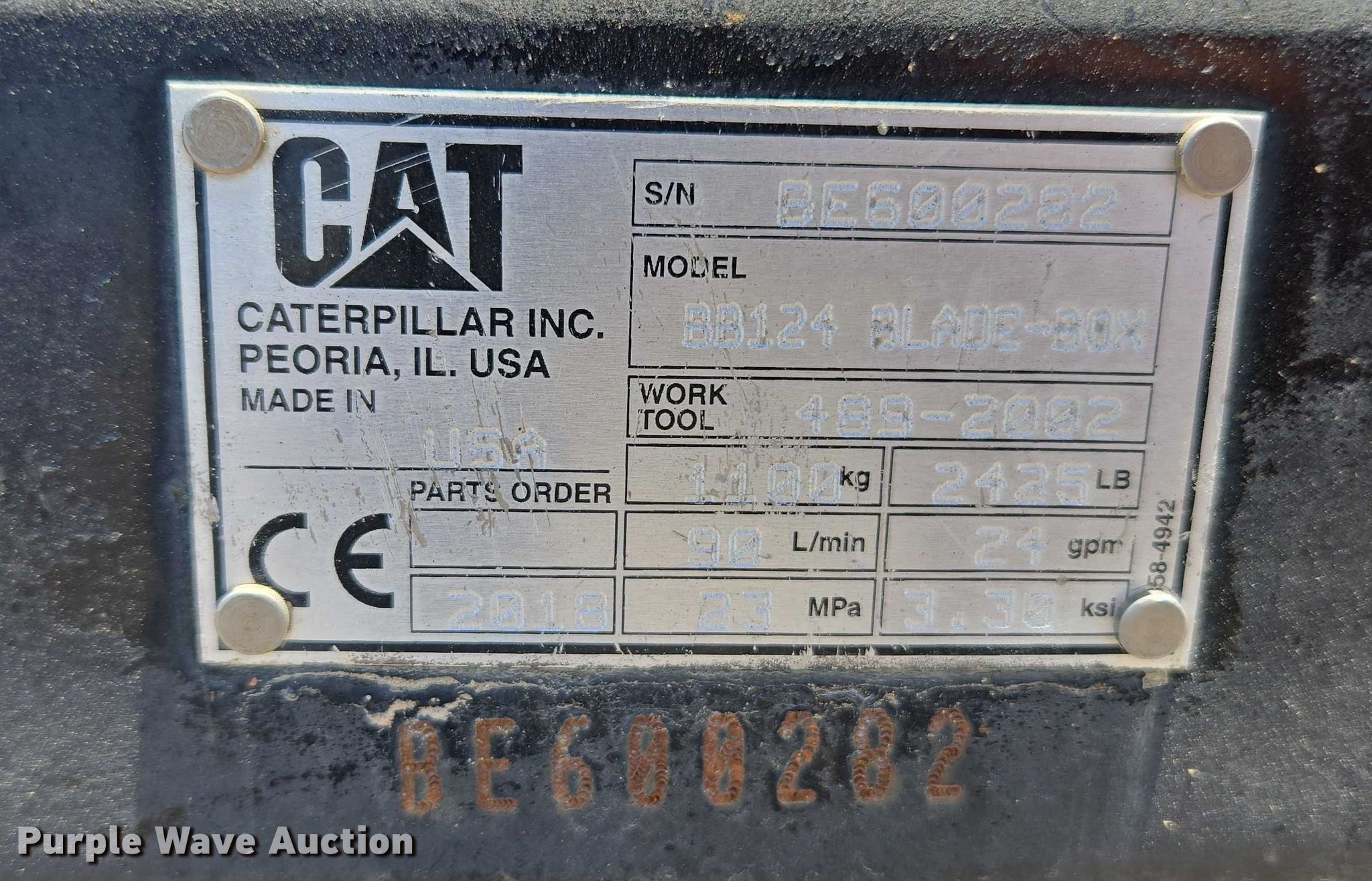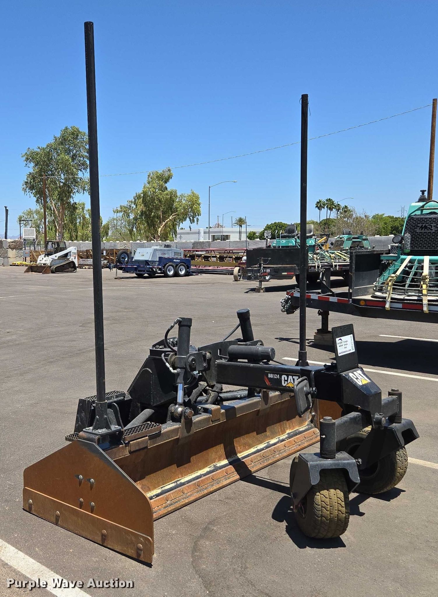 Purple Wave is selling a used Skid Steer Attach. in Arizona. This item is a 2018 Caterpillar BB124 skid steer box blade with the following: Serial: BE600282, Cutting edge: Bolt-on, Grade control