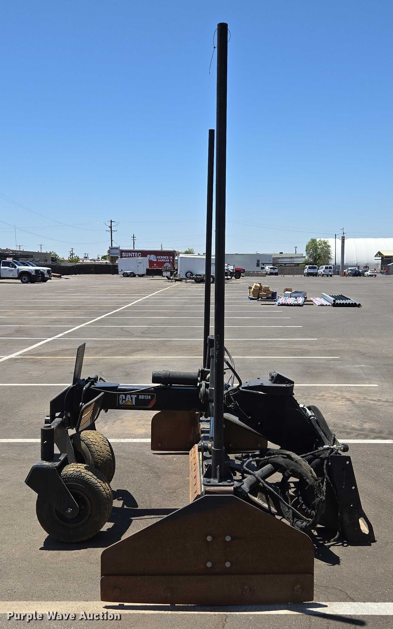 2018 Caterpillar BB124 skid steer box blade. Serial: BE600282, Cutting edge: Bolt-on, Grade control. Notes 2D lasers included. Suntec Concrete. Phoenix, AZ 85085
