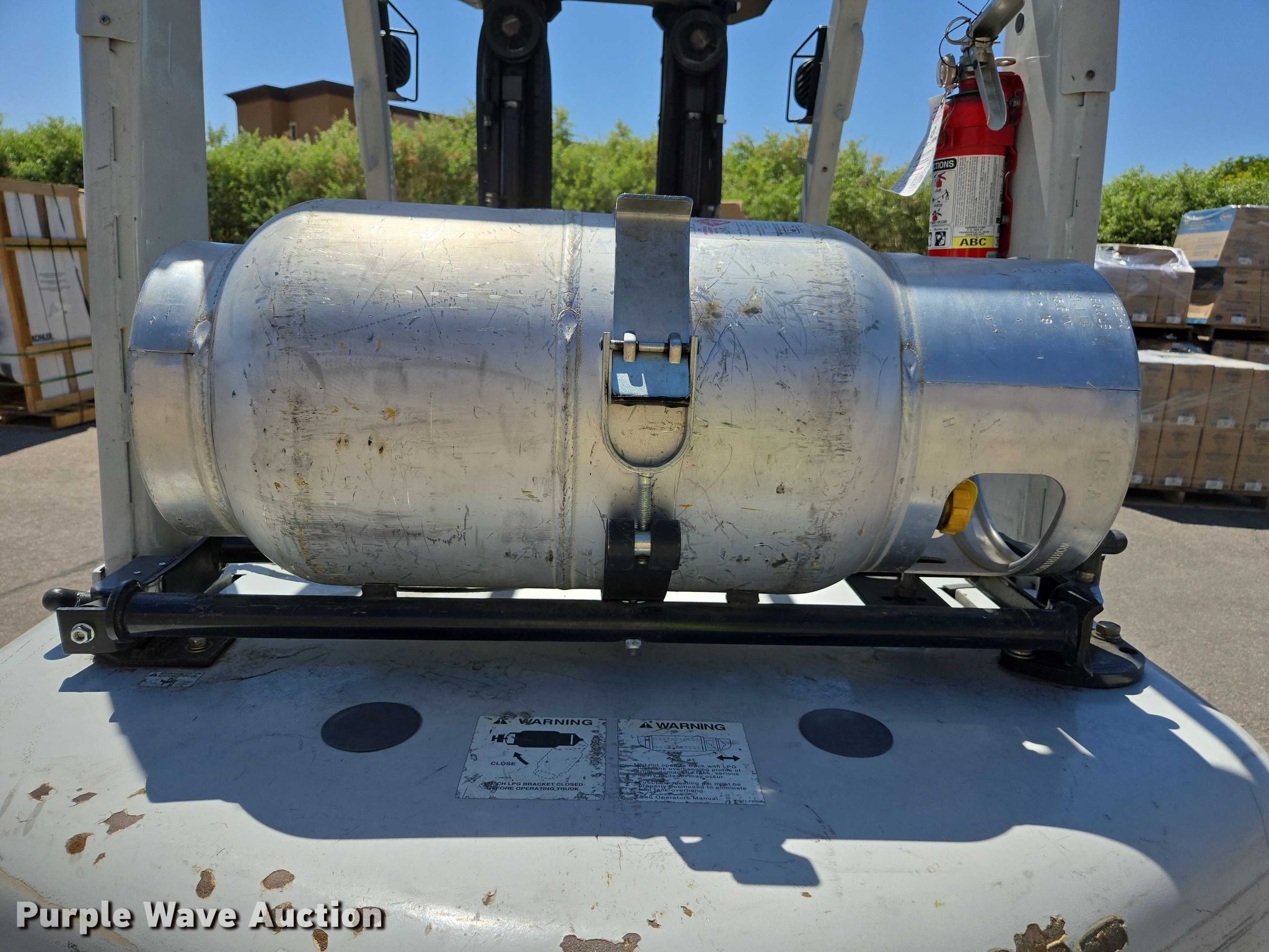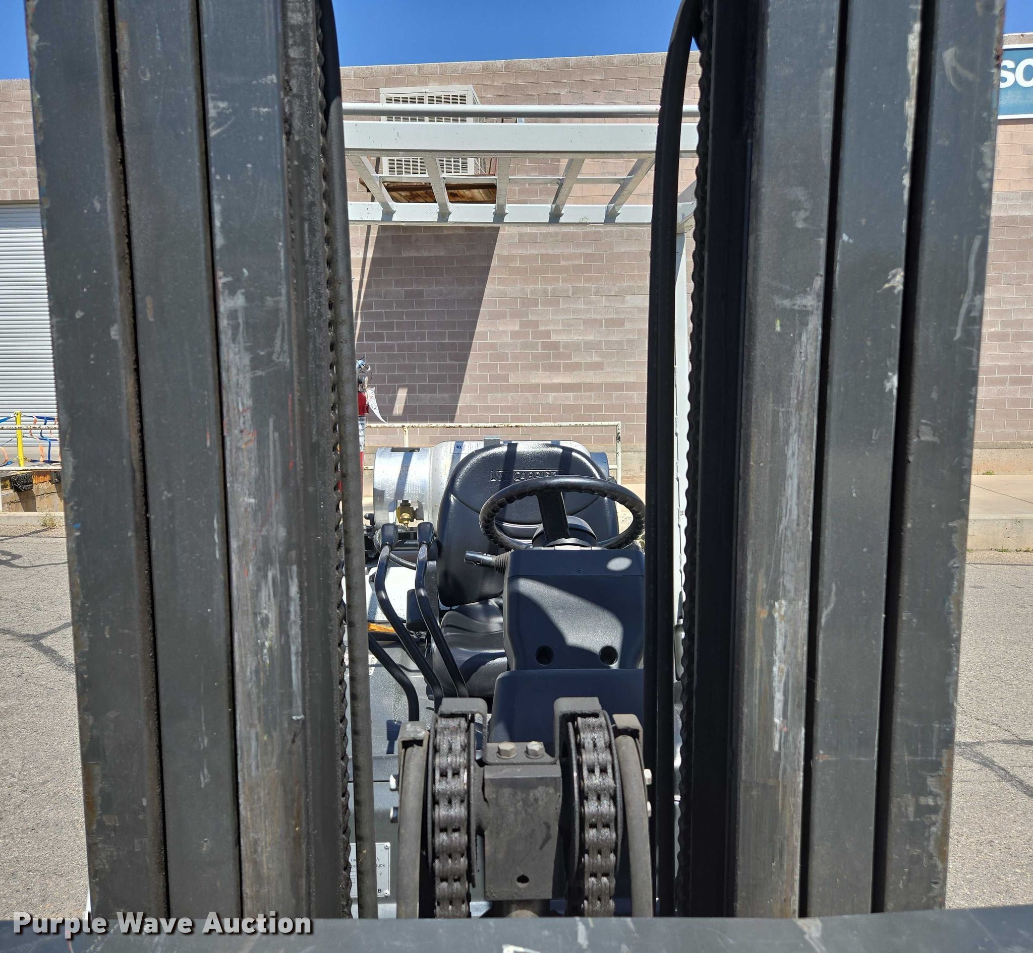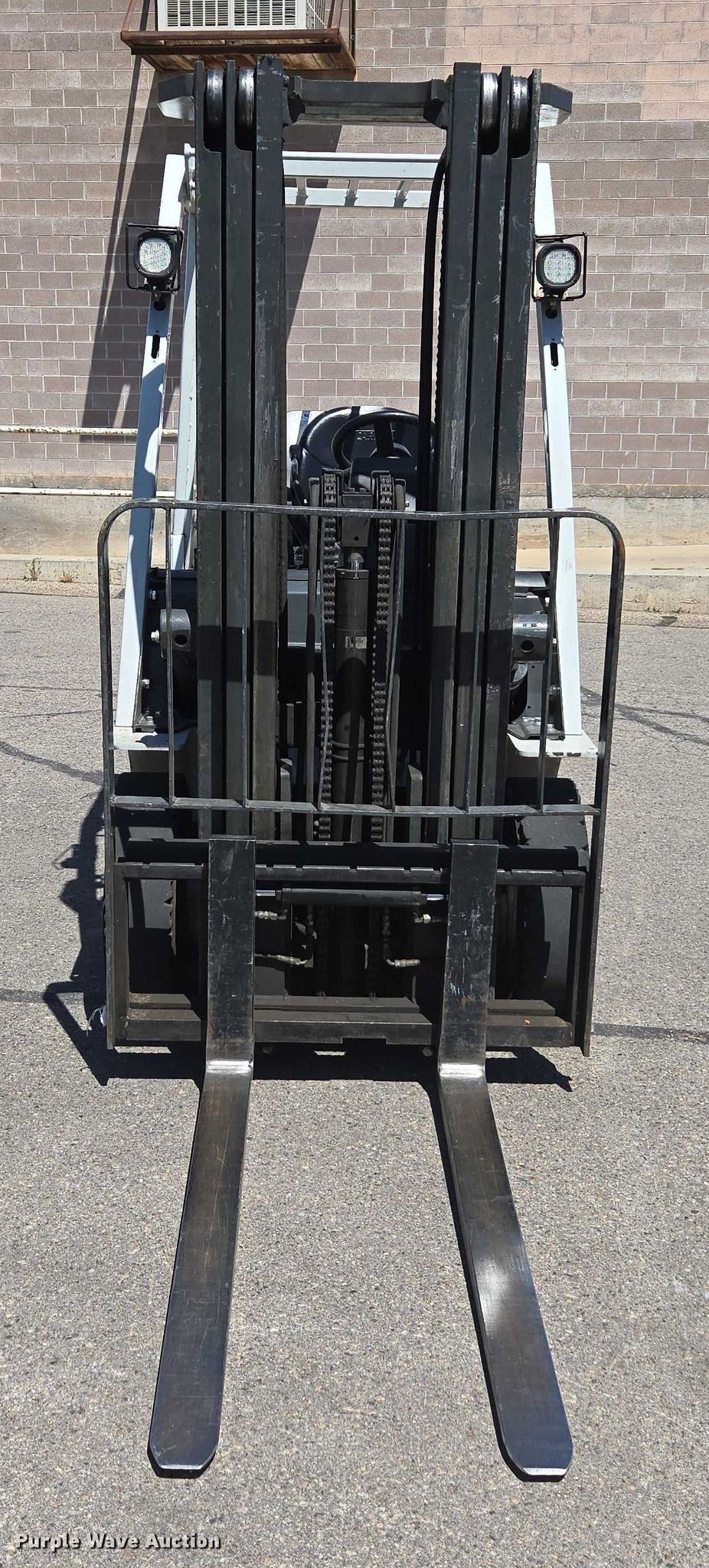 2015 Nissan PF30LP forklift. Hours: 5,226 on meter, Serial: P1F2-9H9012, Unit #: SFS2068. Engine GCT, Displacement: 2.1L, Cylinders: 4, Fuel type: LPG LP bottle: Included. Transmission Powershift. Operators station OROPS. Features Maximum lift capacity: 4,050 lbs, Maximum lift height: 187", Collapsed mast height: 83", Mast stages: 3, Side shift, Mast tilt, Fork length: 48". Tires Front: 7.00-12, Rear: 6.00-9, Solid. Ferguson. St. George, UT 84790