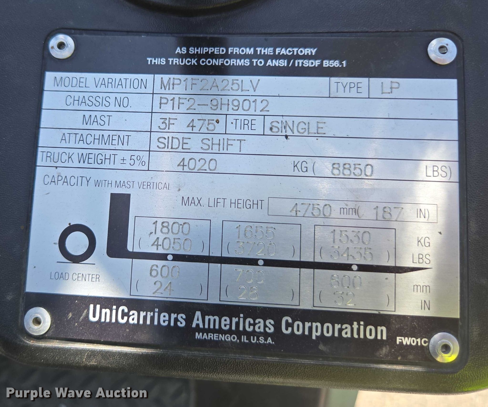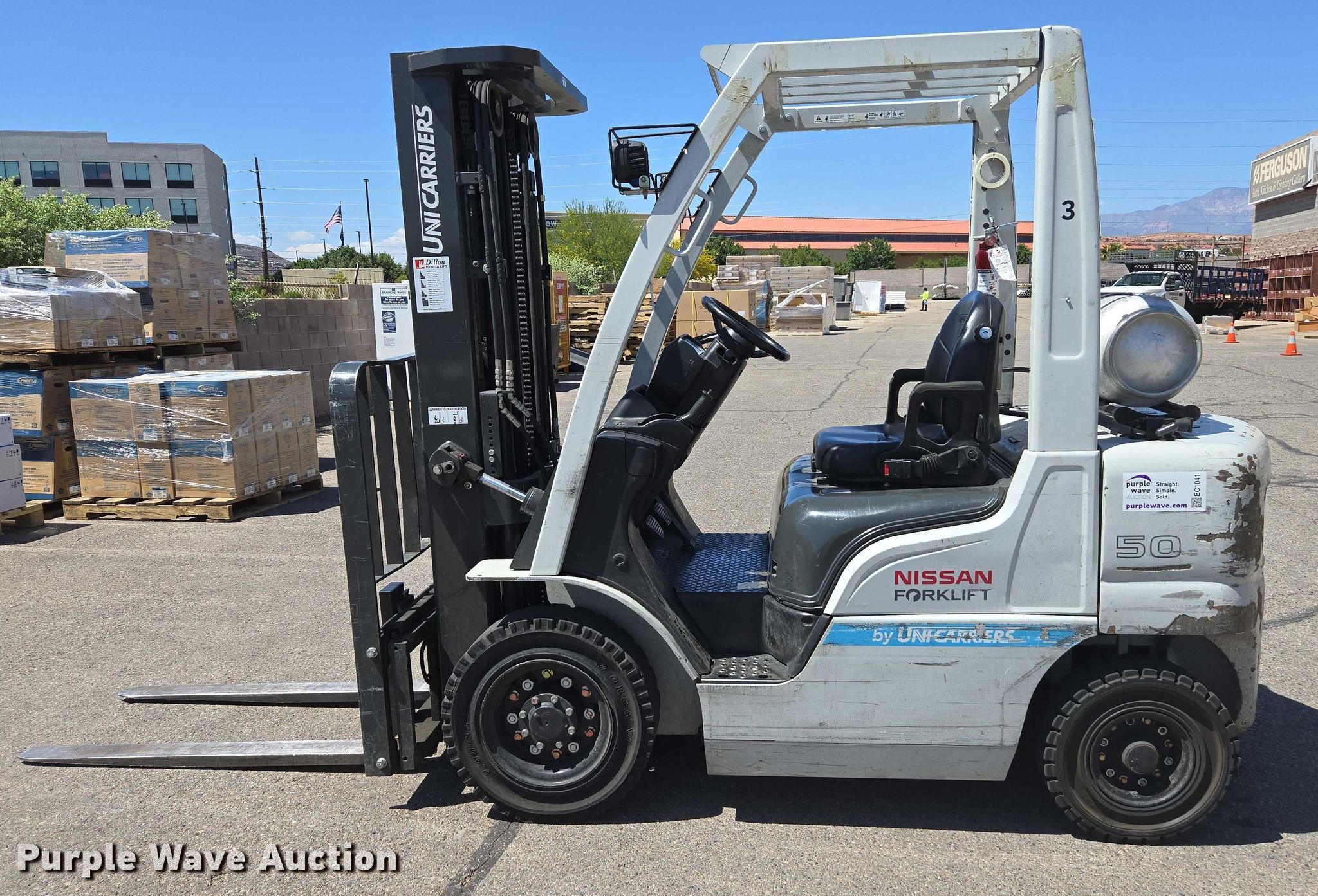 Purple Wave is selling a used Cushion Tire or Pneumatic Forklift in Utah. This item is a 2015 Nissan PF30LP forklift with the following: Hours: 5,226 on meter, Serial: P1F2-9H9012, Unit #: SFS2068