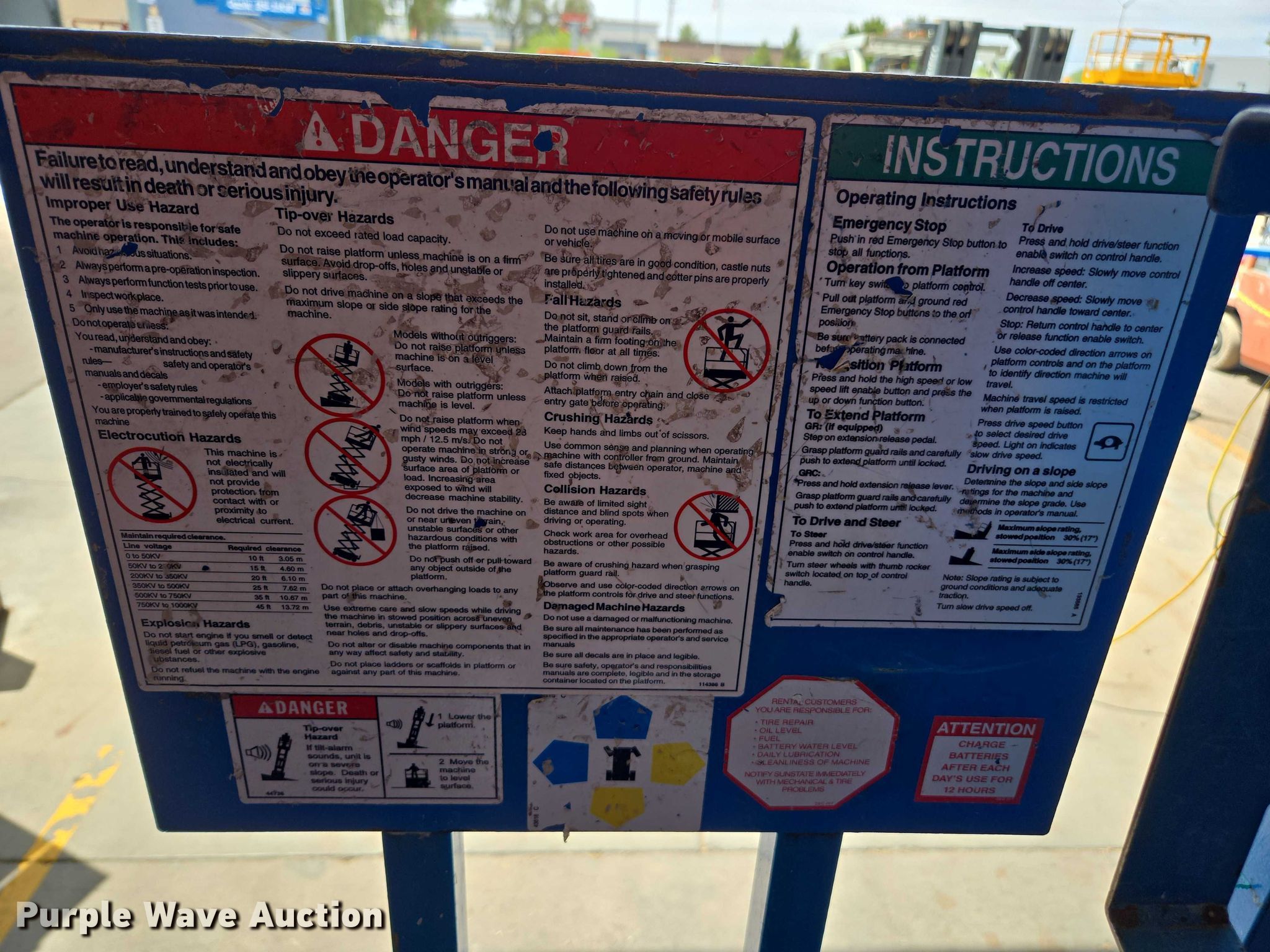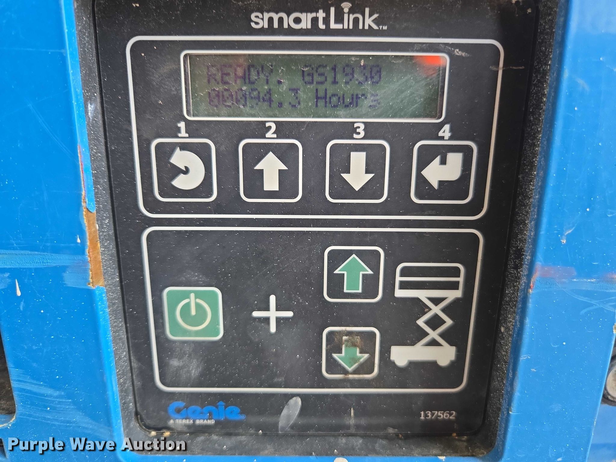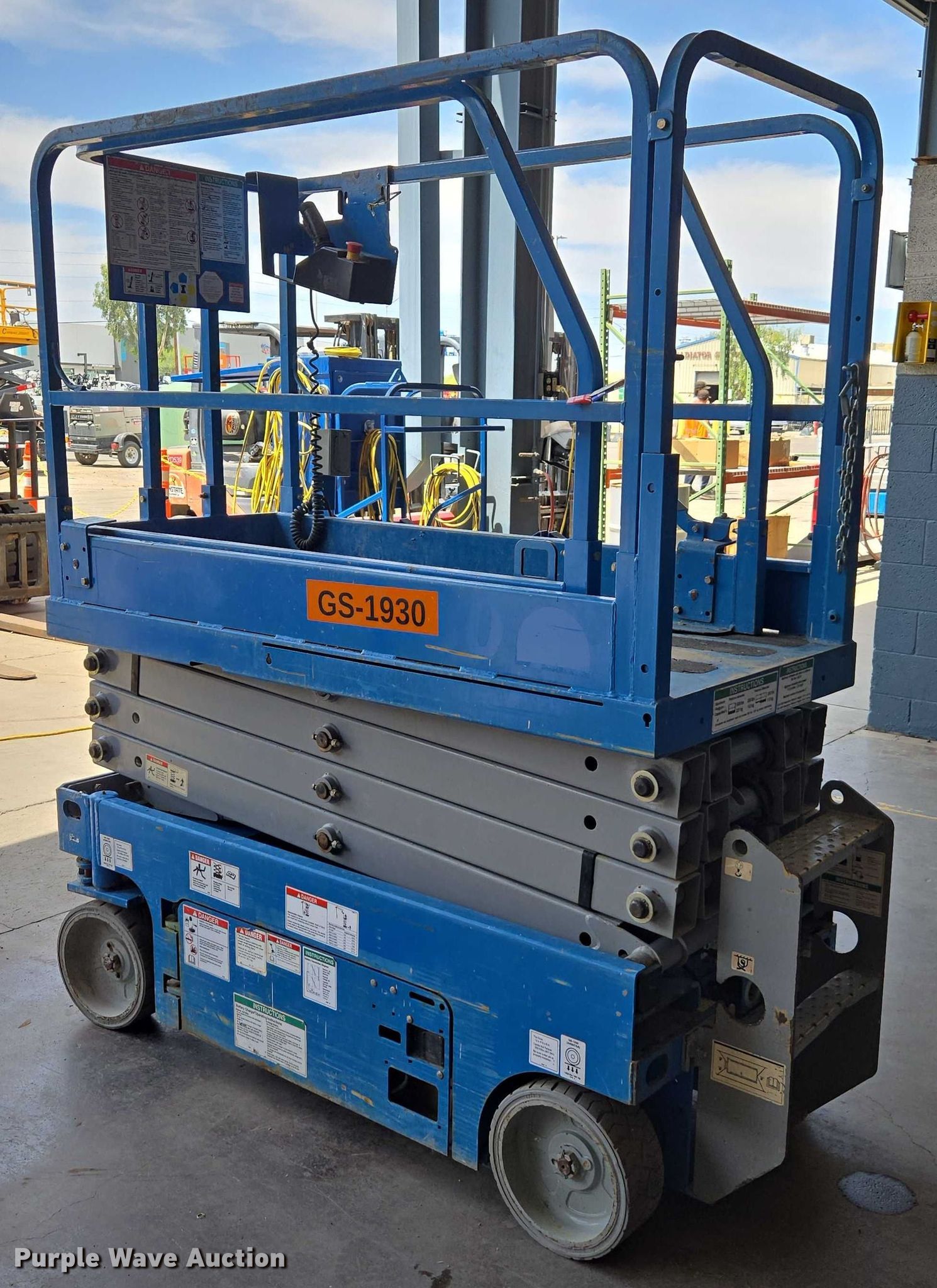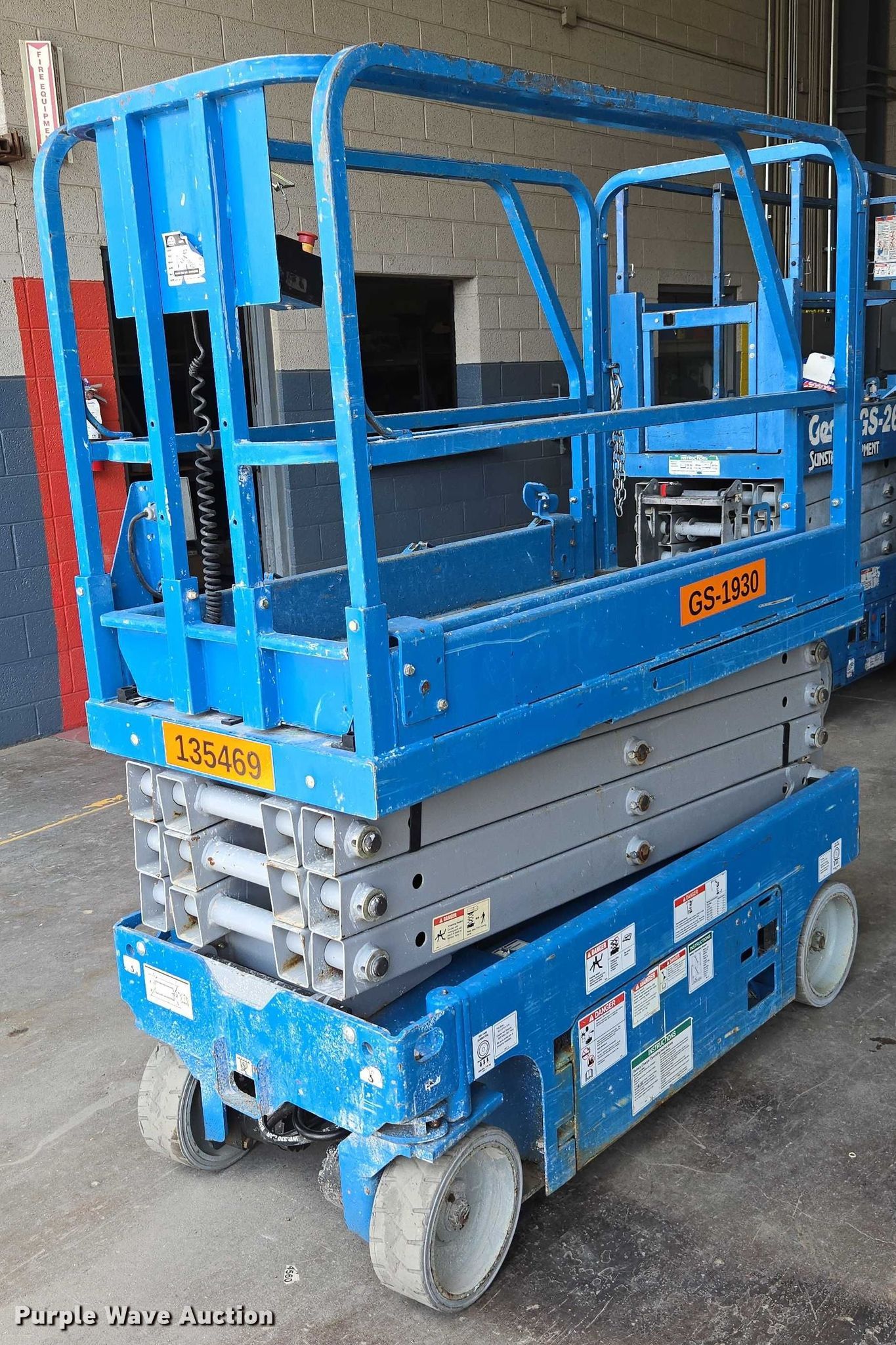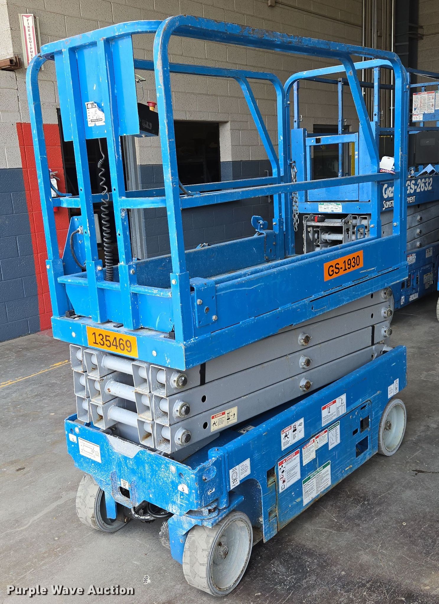 Purple Wave is selling a used Scissor or Vertical Lift in Arizona. This item is a 2014 Genie GS-1930 scissor lift with the following: Hours: 94 on meter, Serial: GS3014A-137979, Unit #: 135469