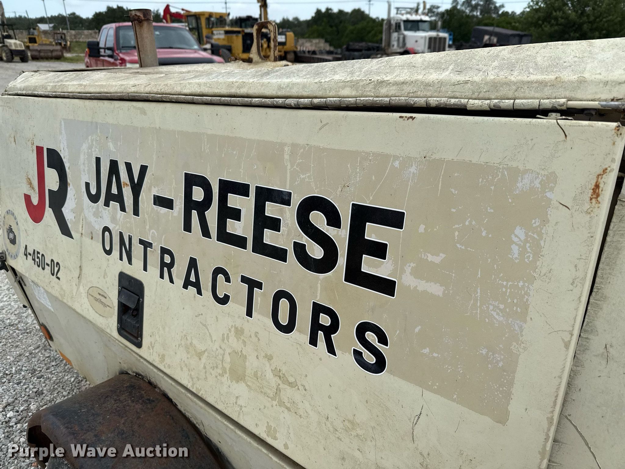 2002 Ingersoll-Rand P185 air compressor. Hours: 343 on meter Actual hours unknown, Unit #: 4-450-02. Engine Isuzu 4IRJ7N, Displacement: 186 C.I.D., Cylinders: 4, Fuel type: Diesel, HP: 63, kW: 47. Features Air compressor CFM: 20, PSI: 200. Trailer 12' L x 66" W, Ball hitch size: 2 5/16", Suspension: Torsion, Tire size: 205/75R15. Notes Non-operational second hour meter, Driver side panel issues, will not latch. This is worksite support equipment and will not come with a title. Transfer of ownership documentation will be a bill of sale. Jay Reese Contractors, Inc. Dripping Springs, TX 78620