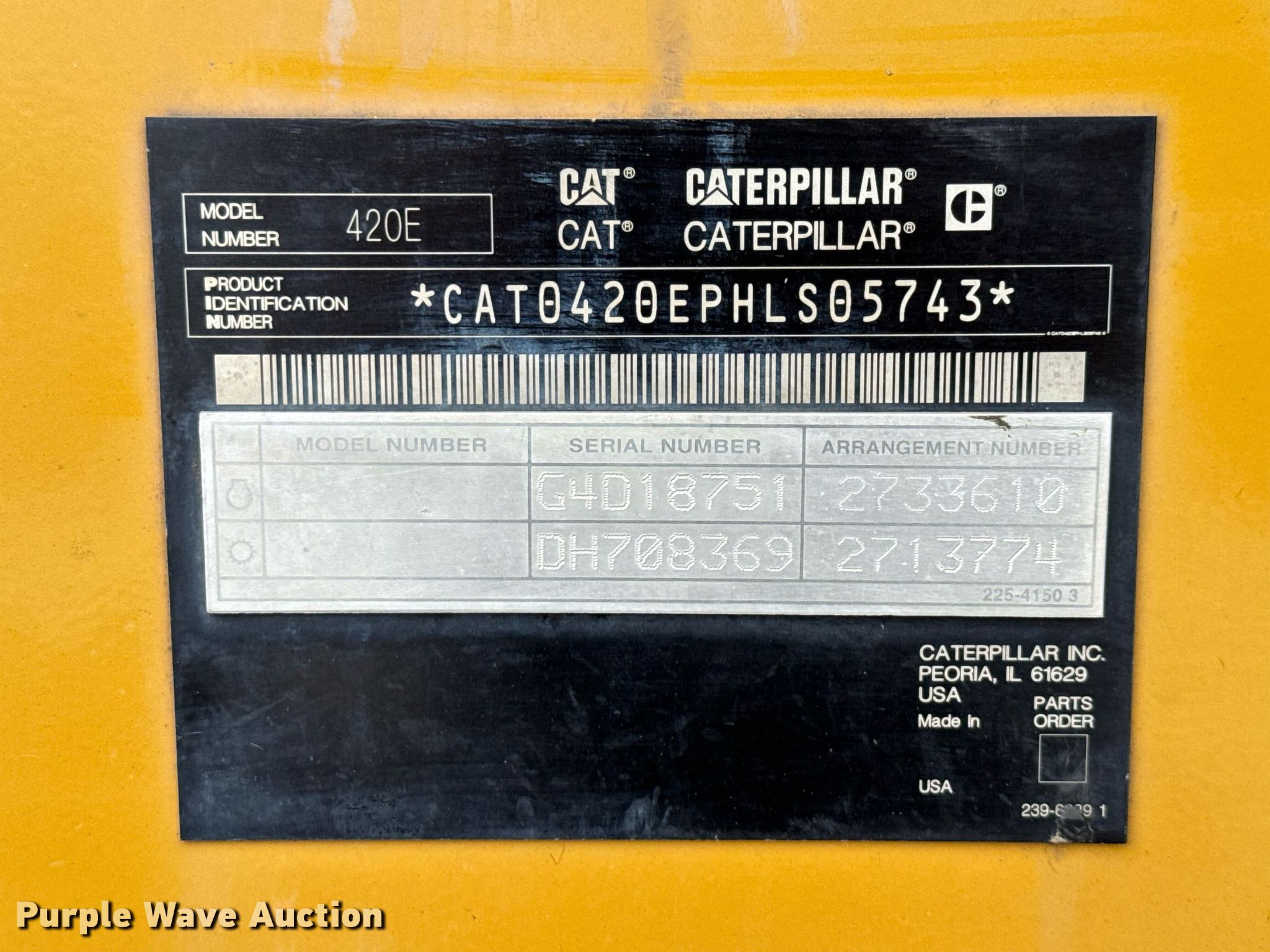 Purple Wave is selling a used Tractor Loader Backhoe in Texas. This item is a 2008 Caterpillar 420E backhoe with the following: Hours: 6,617 on meter, Serial: CAT0420EPHLS05743, Unit #: 3-965-08