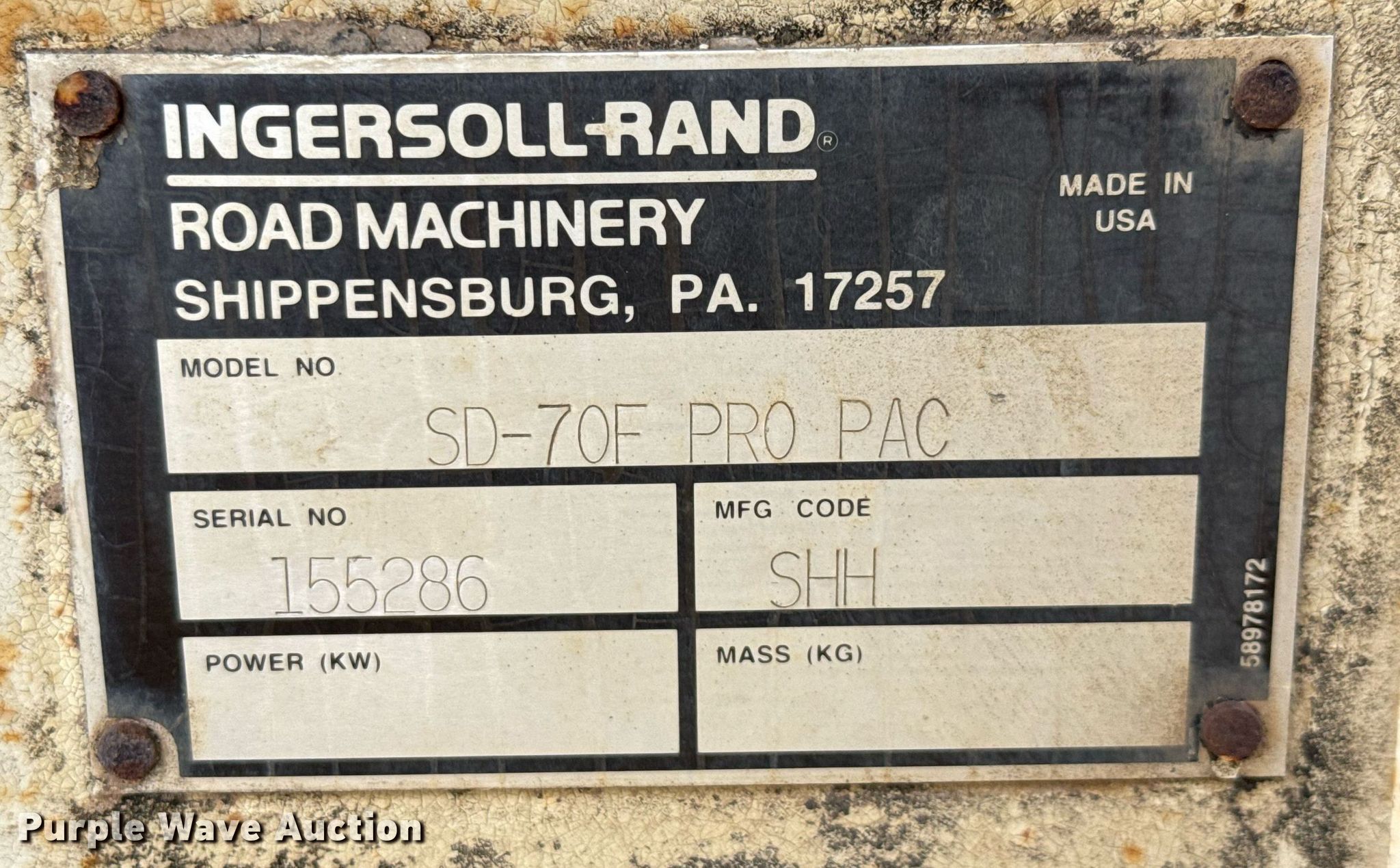 Purple Wave is selling a used Single Drum Roller Compactor in Texas. This item is a 1998 Ingersoll-Rand SD-70F Pro Pac single drum vibratory roller with the following: Hours: 2,044 on meter, Actual hours unknown, Serial: 155286, Unit #: 22-400-00