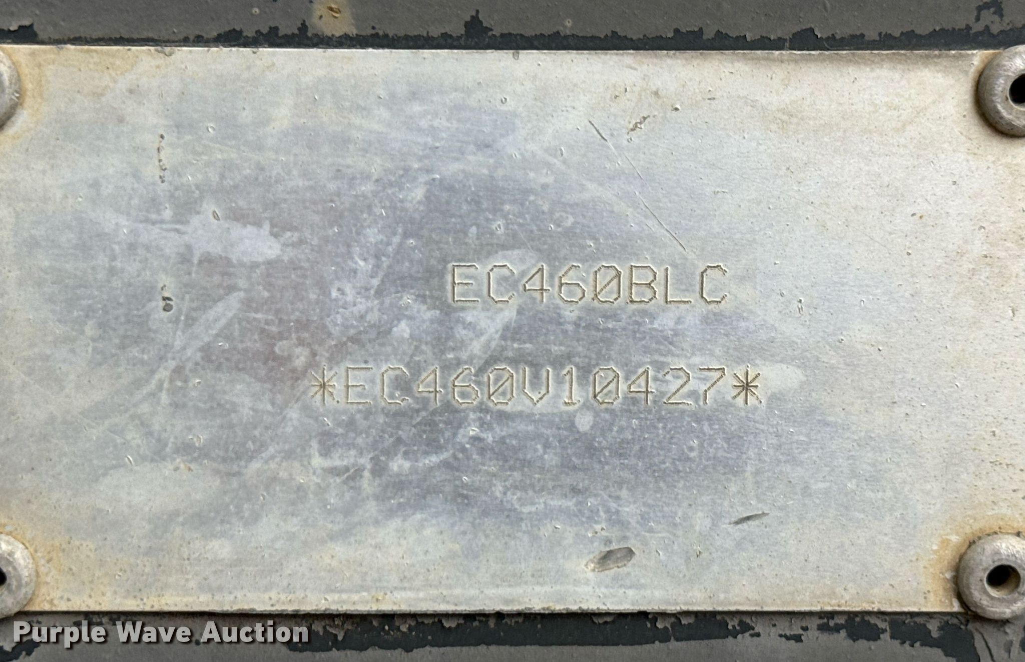 2003 Volvo EC 460 BLC excavator. Hours: 8,792 on meter, Serial: 10427, Unit #: 3-935-03. Engine Volvo D12CEAE2, Serial: 338213, Displacement: 12.1L, Cylinders: 6, Fuel type: Diesel, HP: 320, kW: 239. Transmission Hydrostatic. Operators station Enclosed cab, AC, Heat. Features Counter weights, Boom Standard, Stick Stick length: 11', Thumb: Manual, Weld-on Amulet, Bucket Hensley, Capacity: 26 cu.yd., Width: 48", Teeth: 5. Tracks Width: 35.5", Steel, Grouser pads: Triple. Notes Possible AC issues, Glass cracked. Jay Reese Contractors, Inc. Dripping Springs, TX 78620